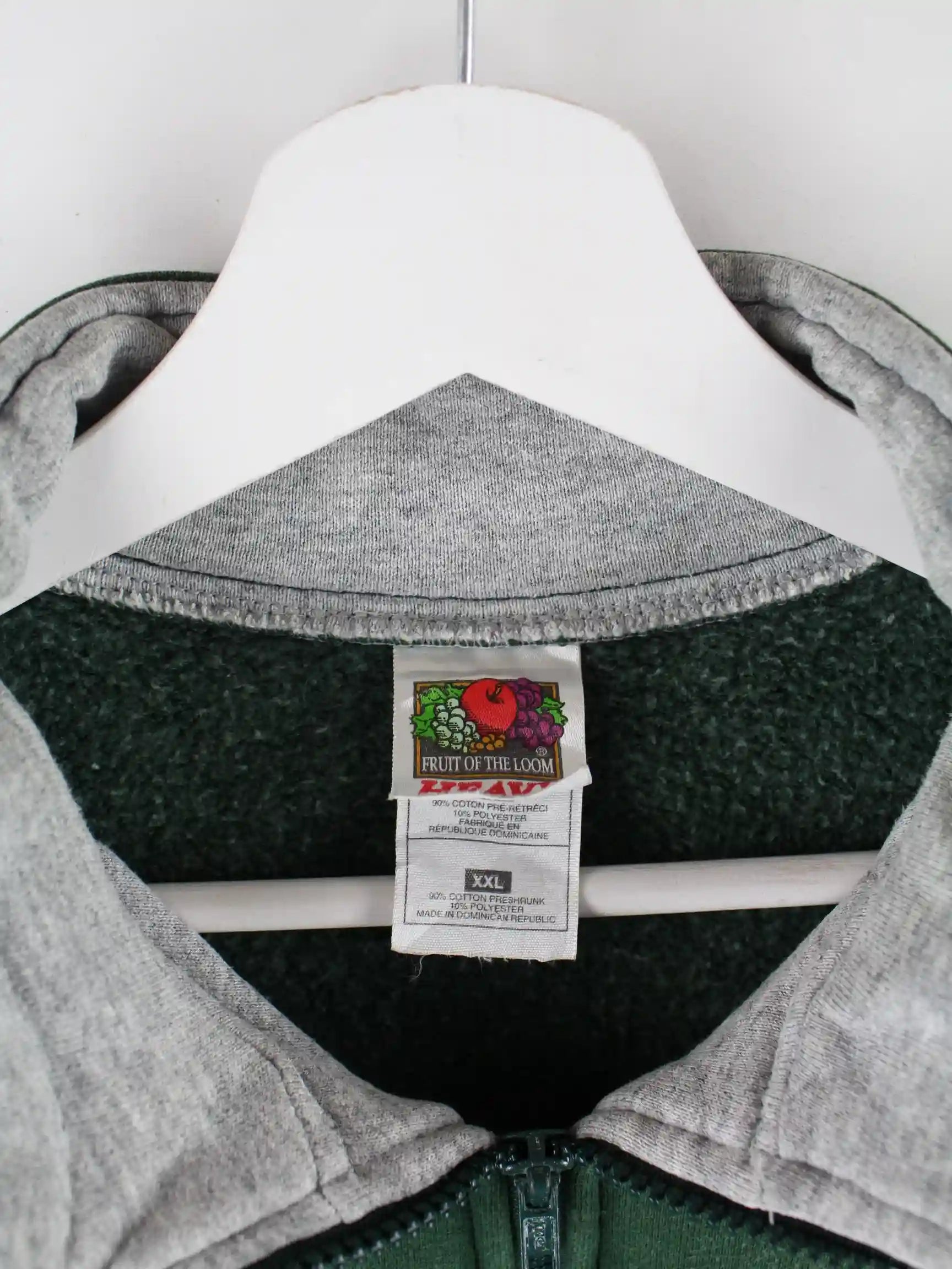 Sweater des Labels Fruit of the Loom mit Stickereien und halbem Reißverschluß in Größe XXL aus den 90'ern. Er ist aus einer Baumwollmischung gemacht und in Grün bei uns vorrätig.