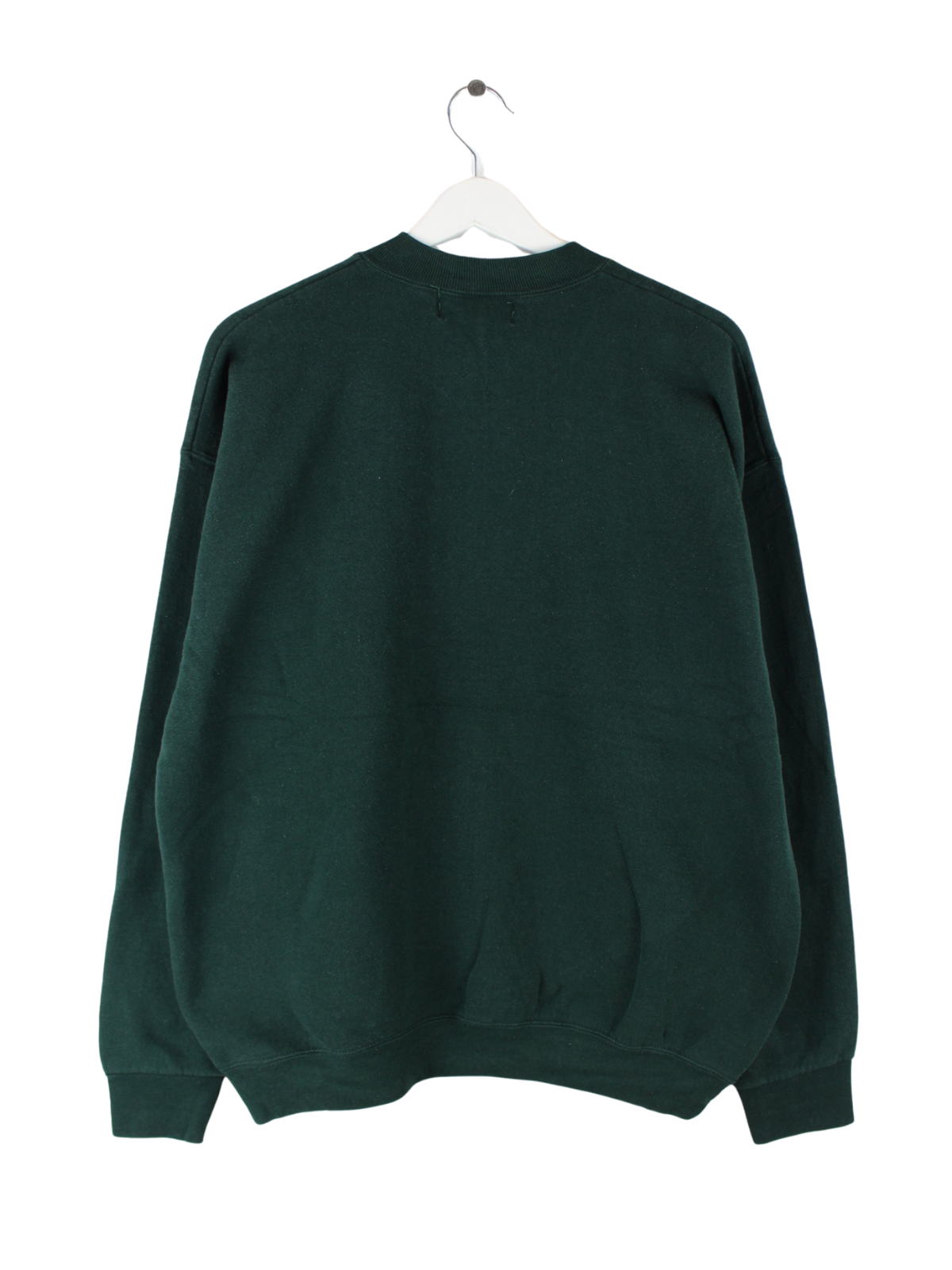 Grüner Sweater mit gesticktem Logo des Labels Fruit of the Loom aus den 90'ern in Größe XL. Er ist aus einer Baumwollmischung und in sehr gutem Zustand bei uns vorrätig.