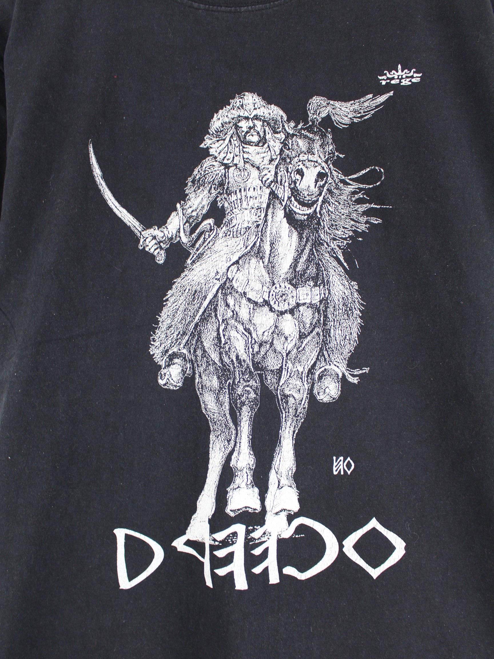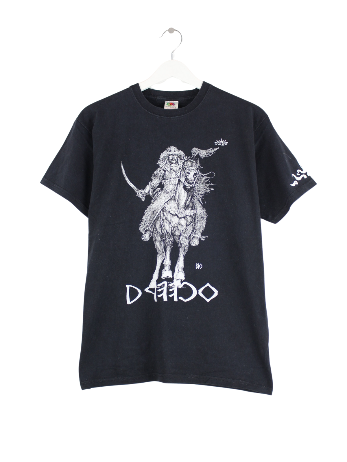 Schwarzes T-Shirt aus dem Hause Fruit of the Loom in Größe S. Es ist aus Baumwolle angefertigt und in gutem Zustand zu bekommen. Mit schönem Samurai Print.