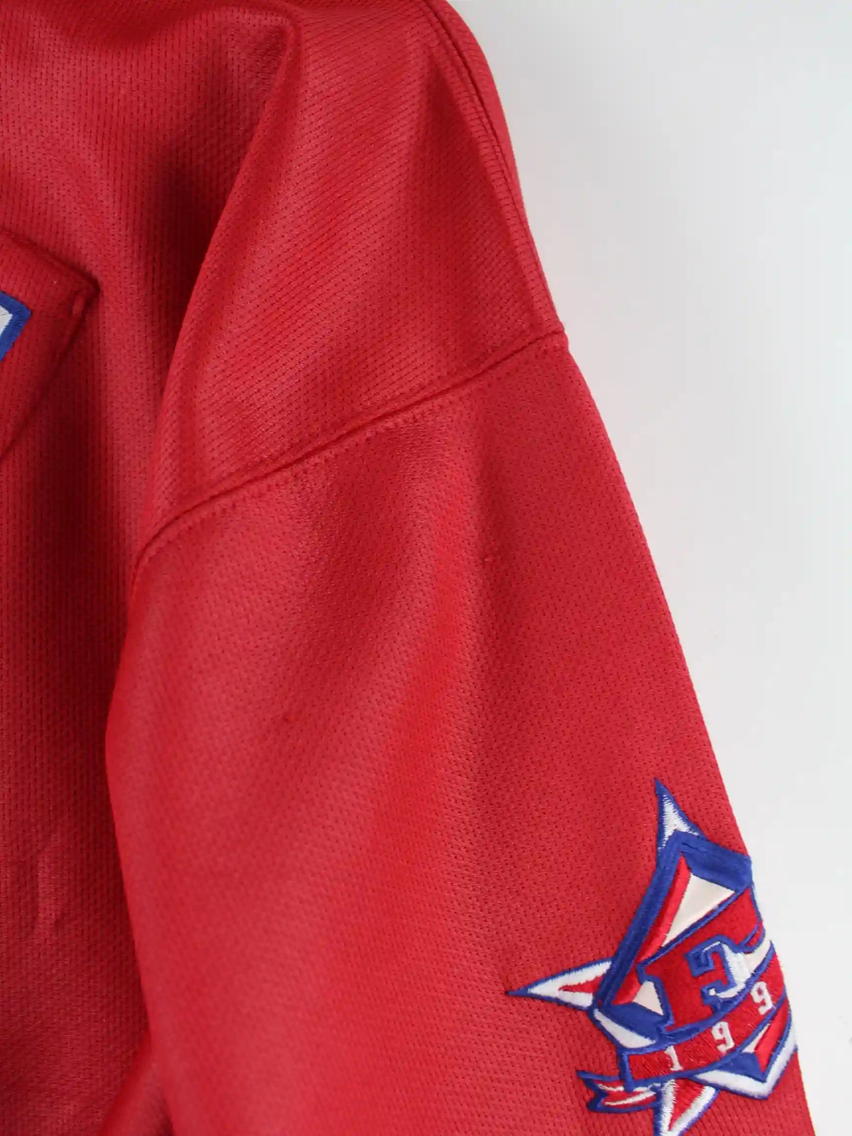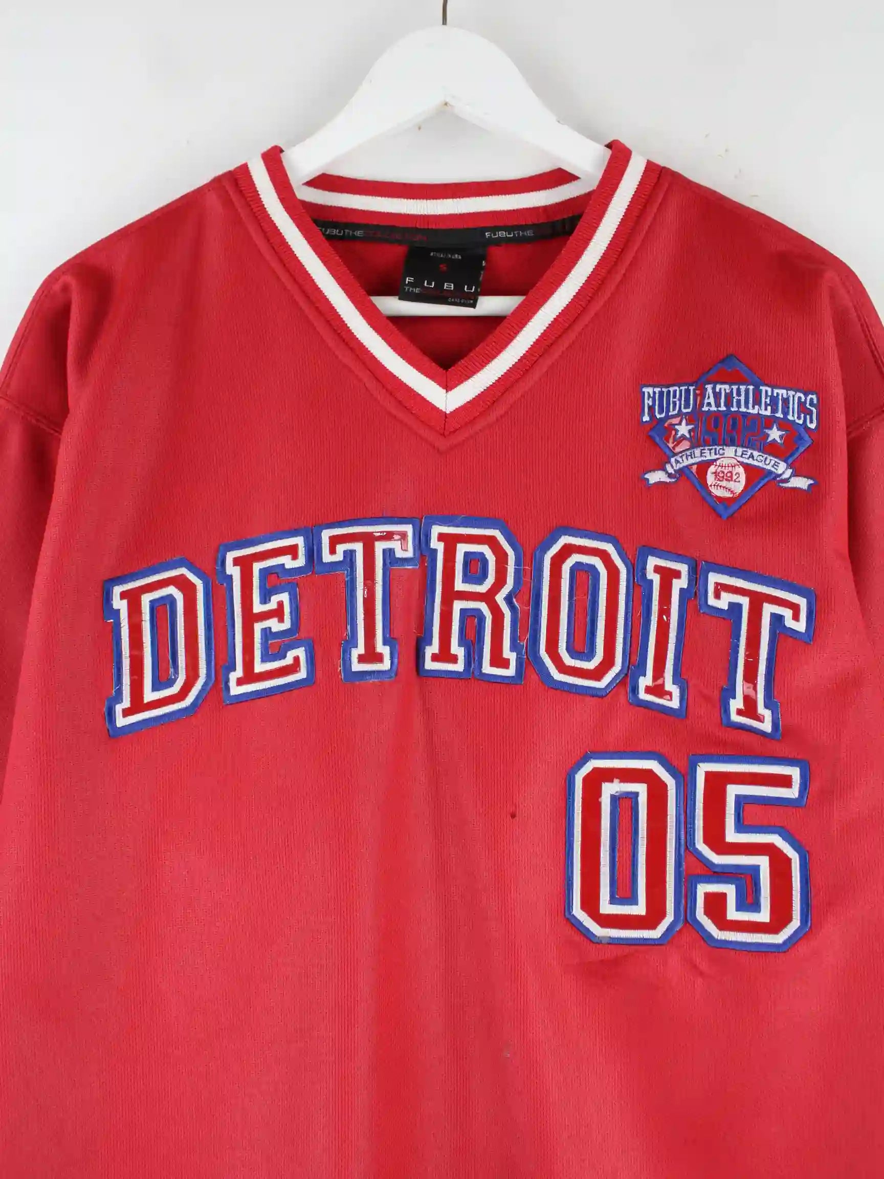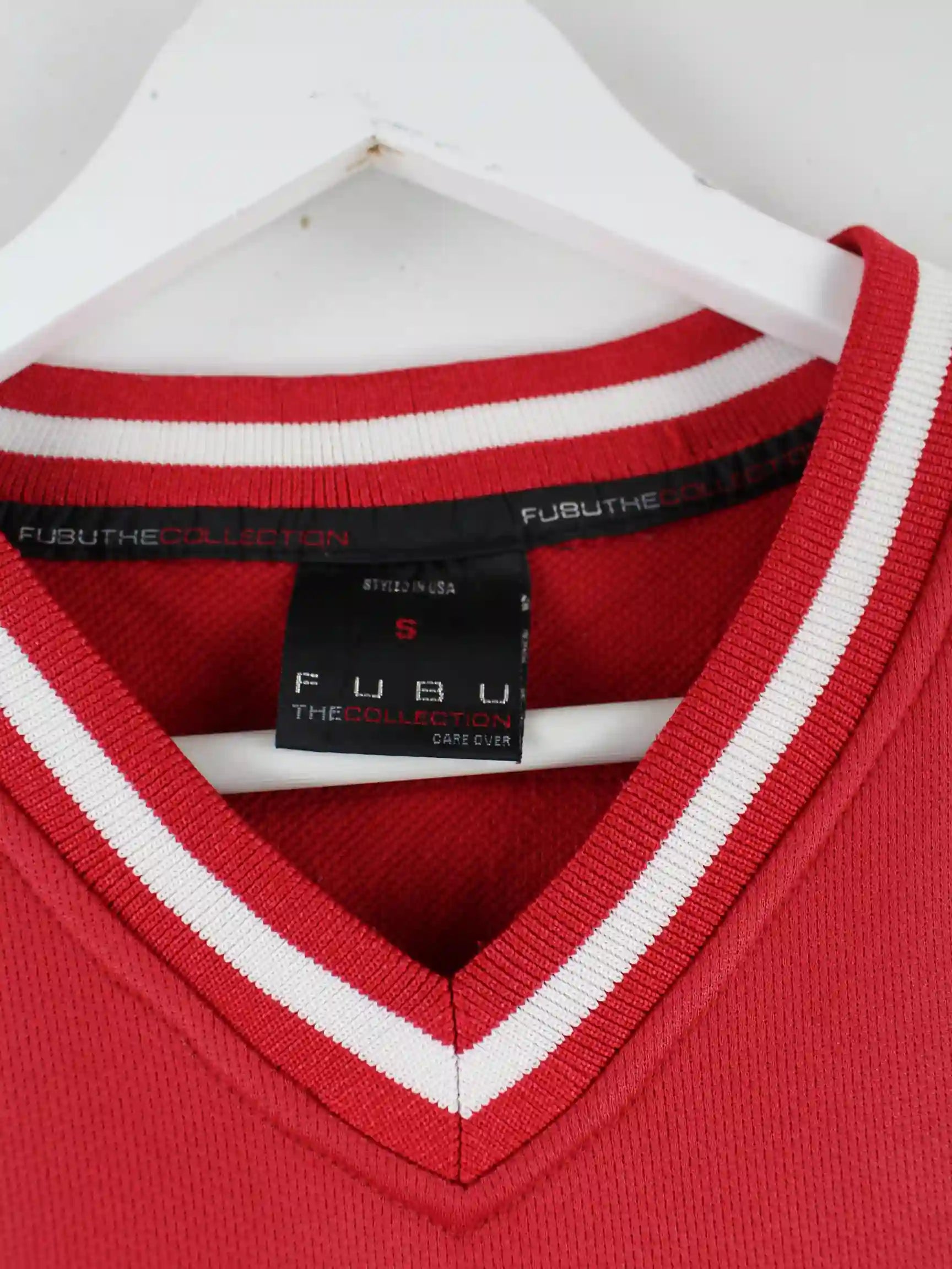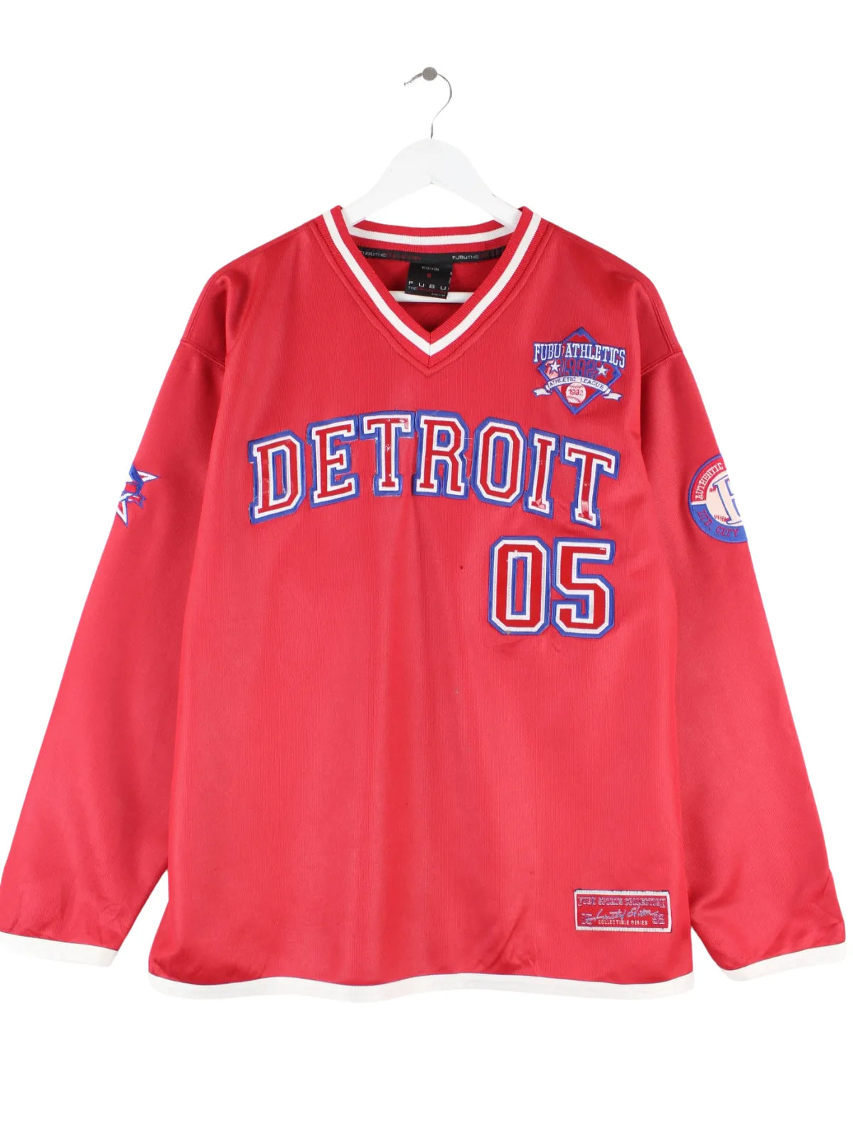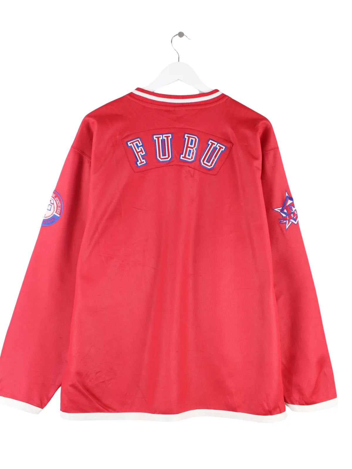Roter Jersey vom Label Fubu in Größe L. Es ist aus Synthetik gefertigt und in gutem Zustand bei uns zu bekommen.