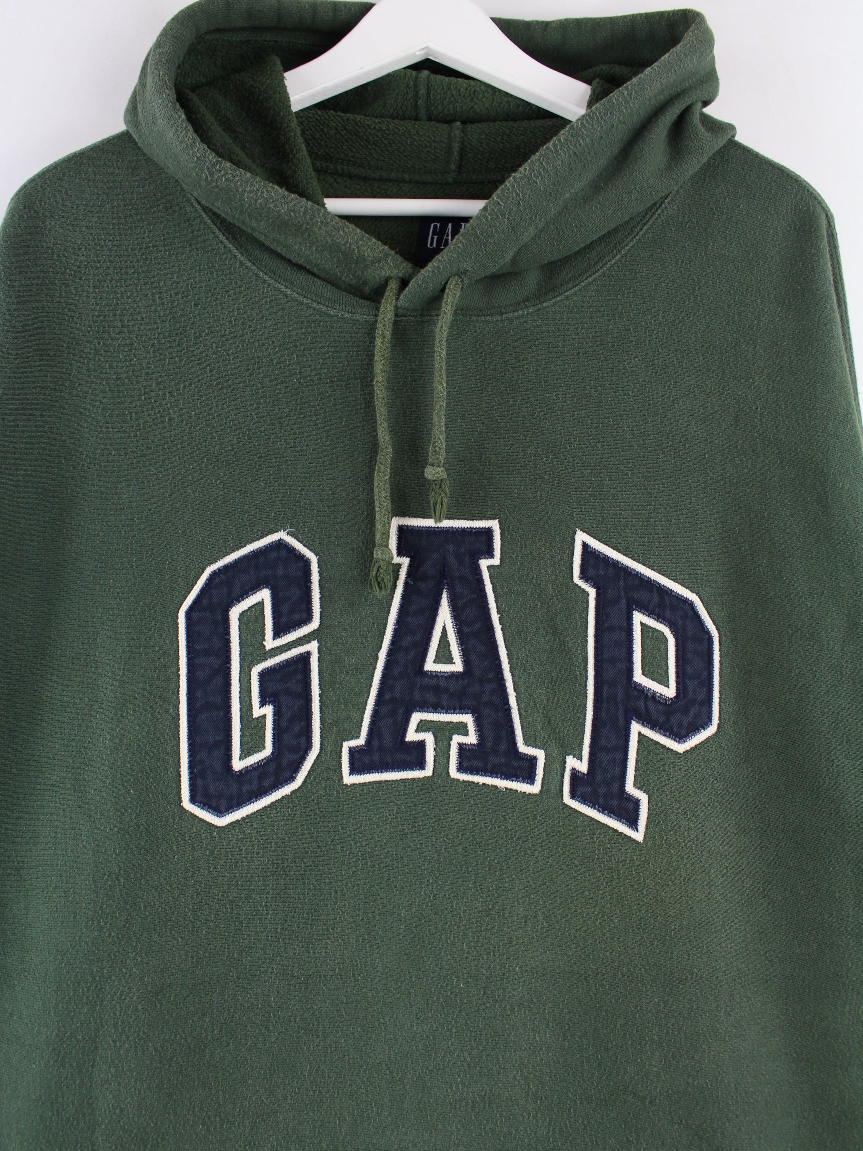 Hoodie des Labels GAP mit Stickereien in Größe XL. Er ist aus einer Baumwollmischung gefertigt und in Grün im Angebot.