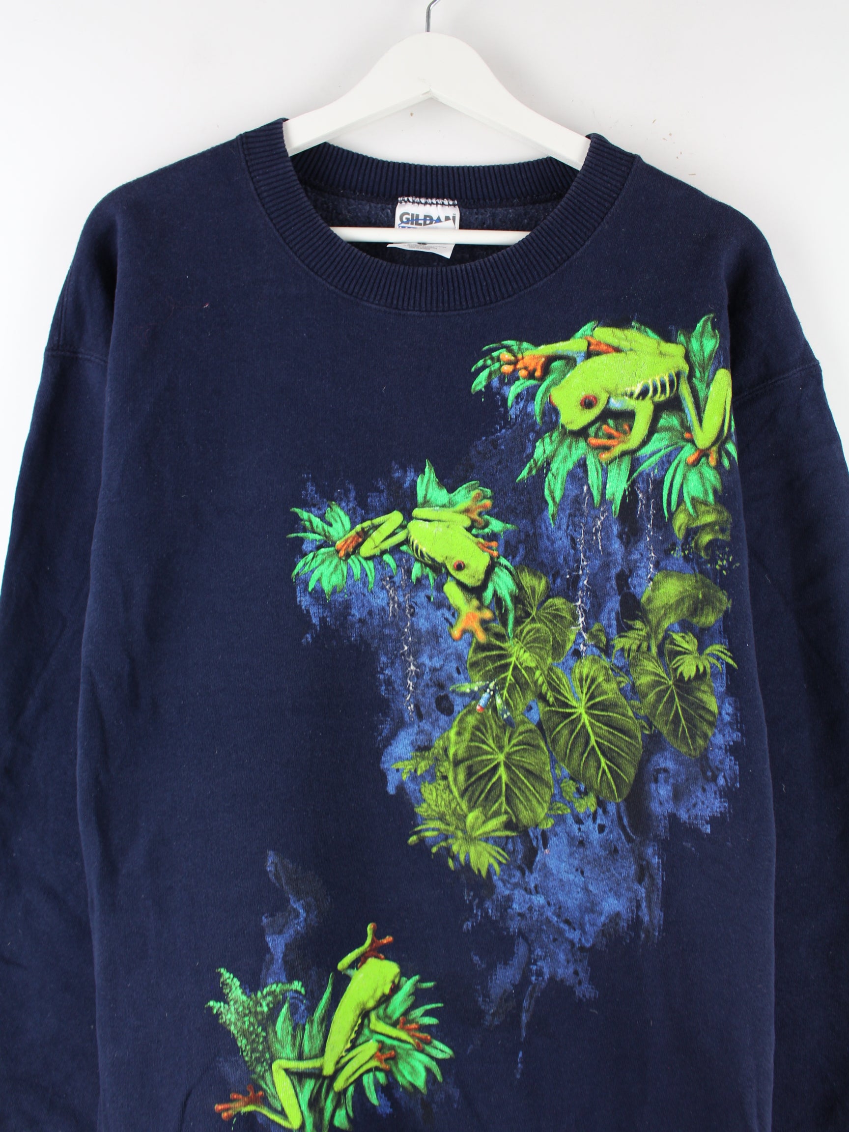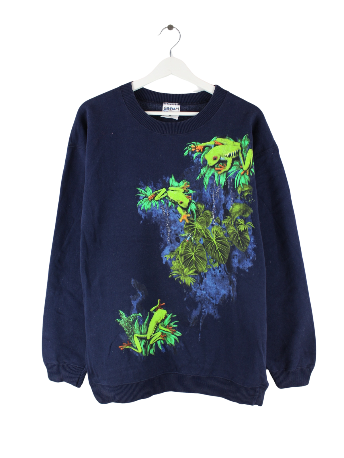 Gildan 00s Frog Print Heavy Sweater Blau L