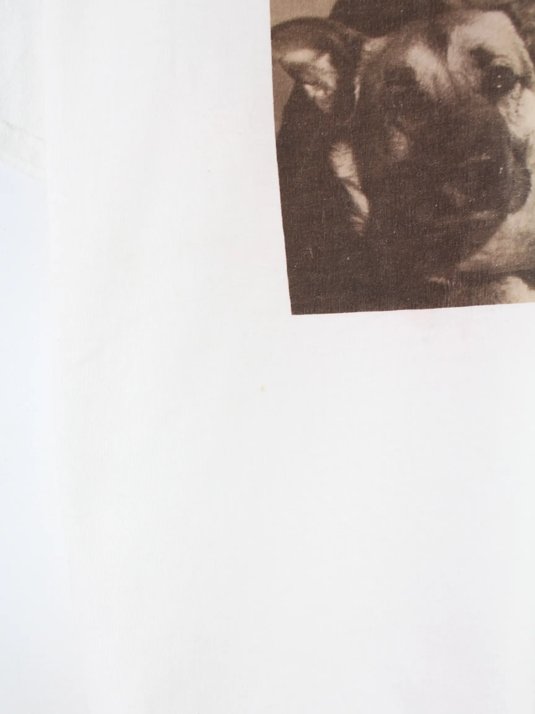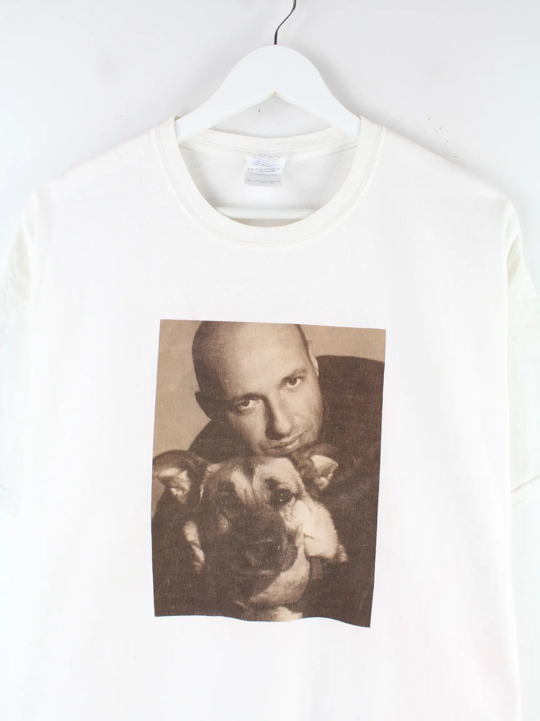 T-Shirt von Gildan in Größe XL. Es ist aus Baumwolle gemacht und in Weiß bei uns zu bekommen. Mit seltenem Dog Print.