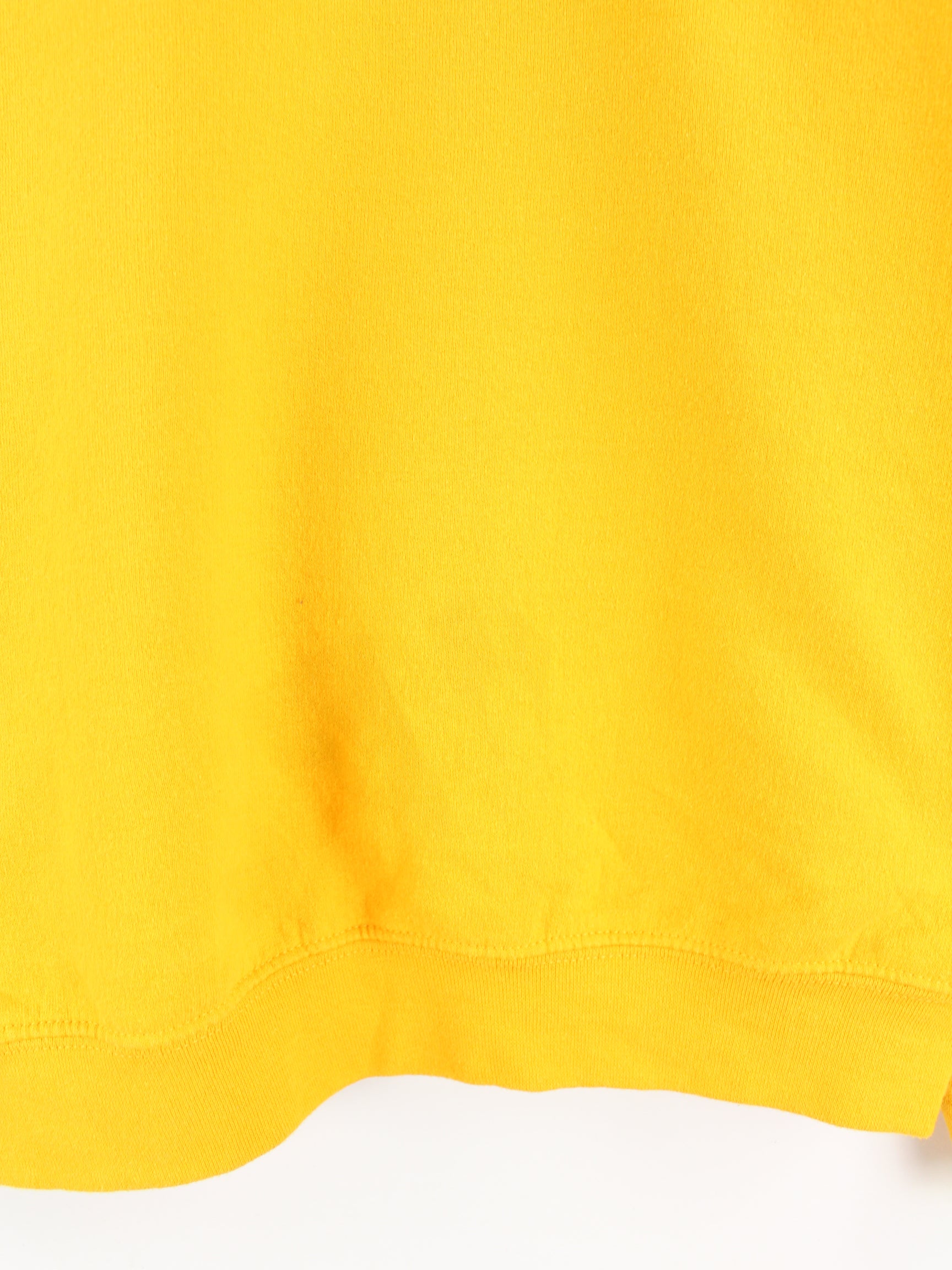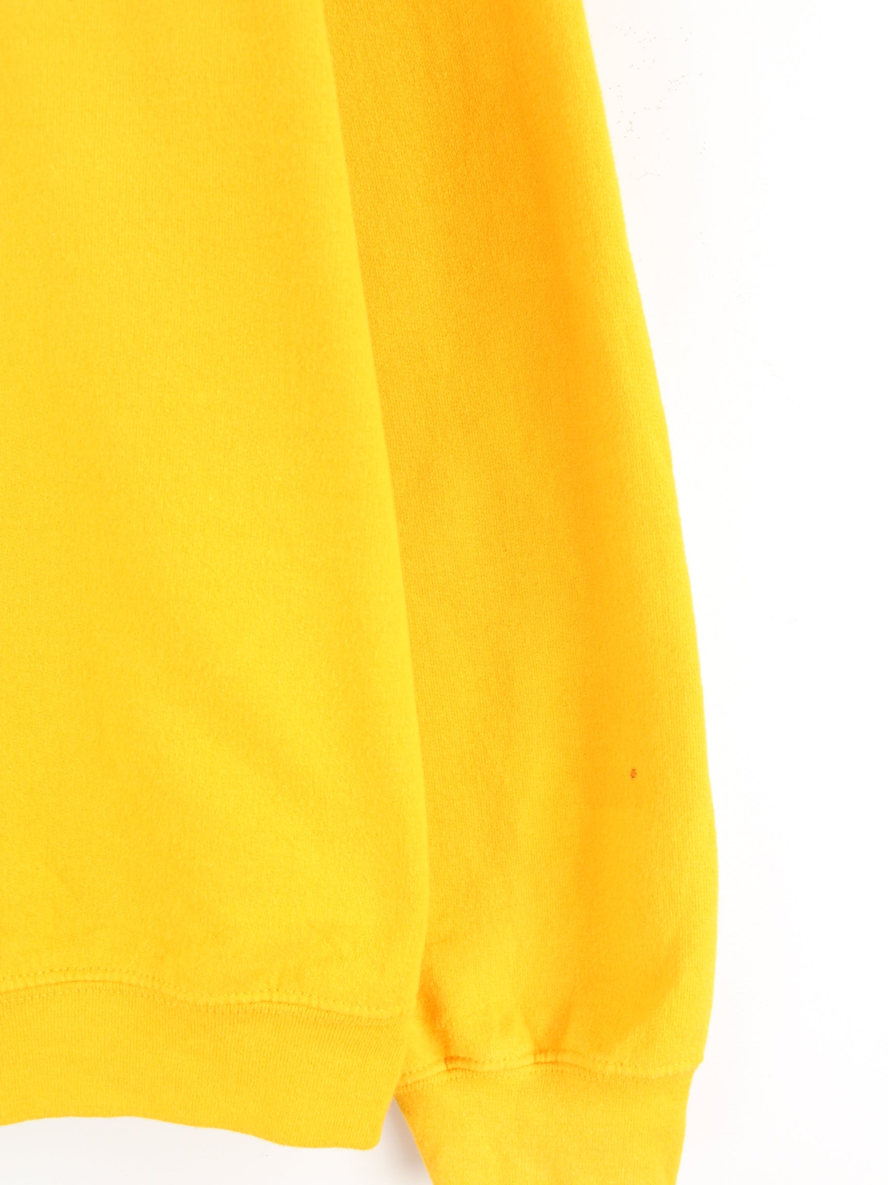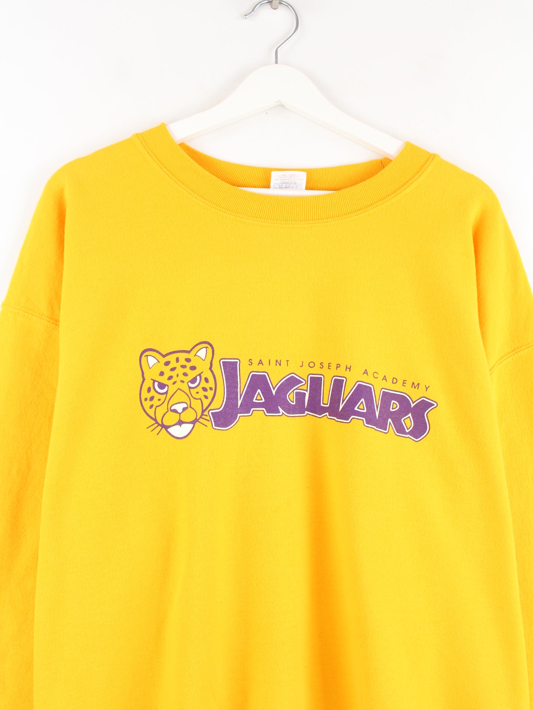 Gelber Sweater vom Label Gildan in Größe L. Er ist aus einer Baumwollmischung gemacht und in gutem Zustand zu haben. Mit schickem Jaguars Print.