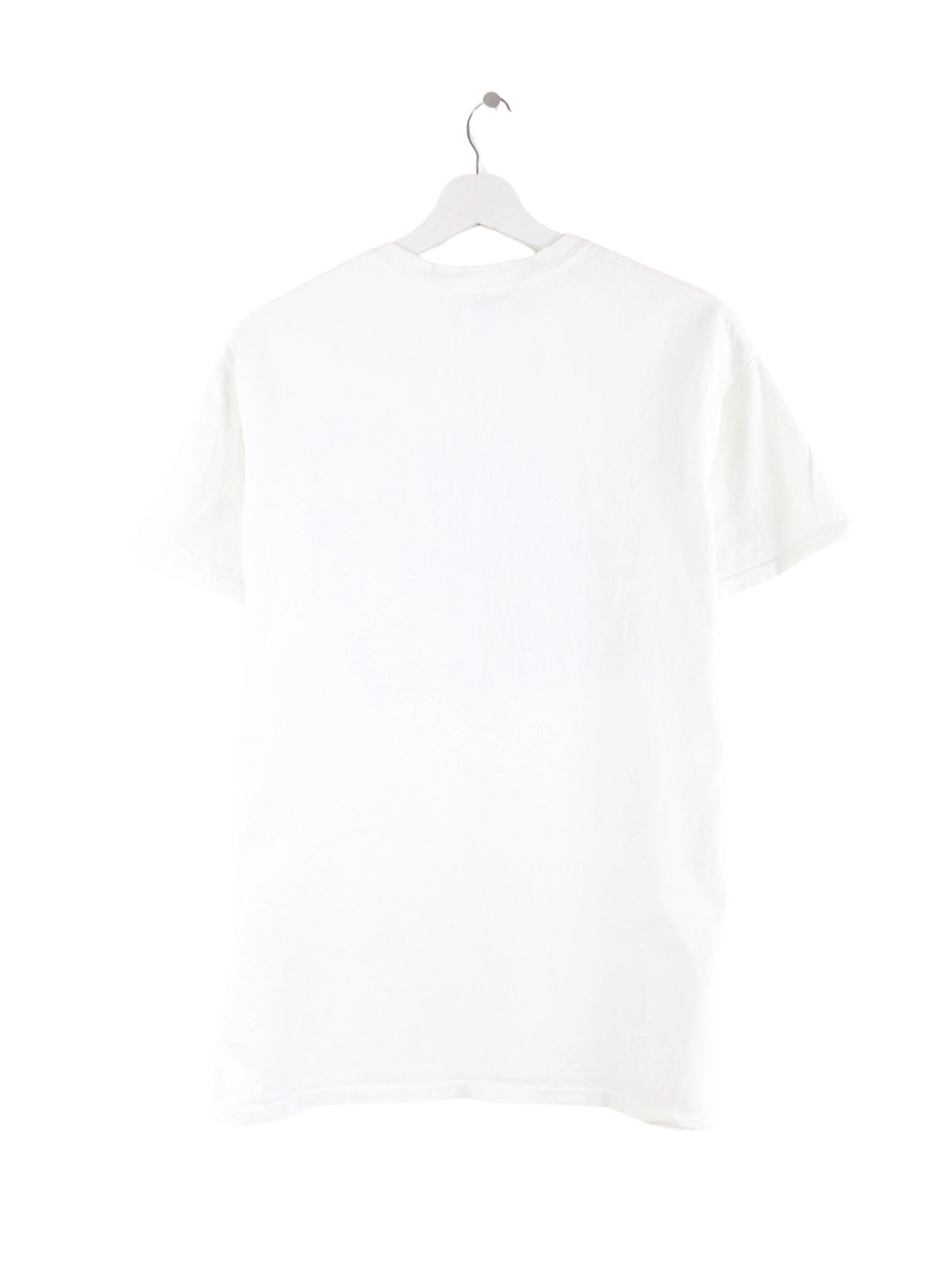 T-Shirt des Labels Gildan in Größe XL. Es ist aus Baumwolle produziert und in Weiß vorrätig. Mit chiquem Joker Print.