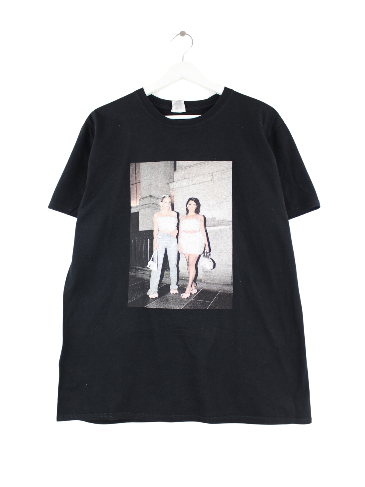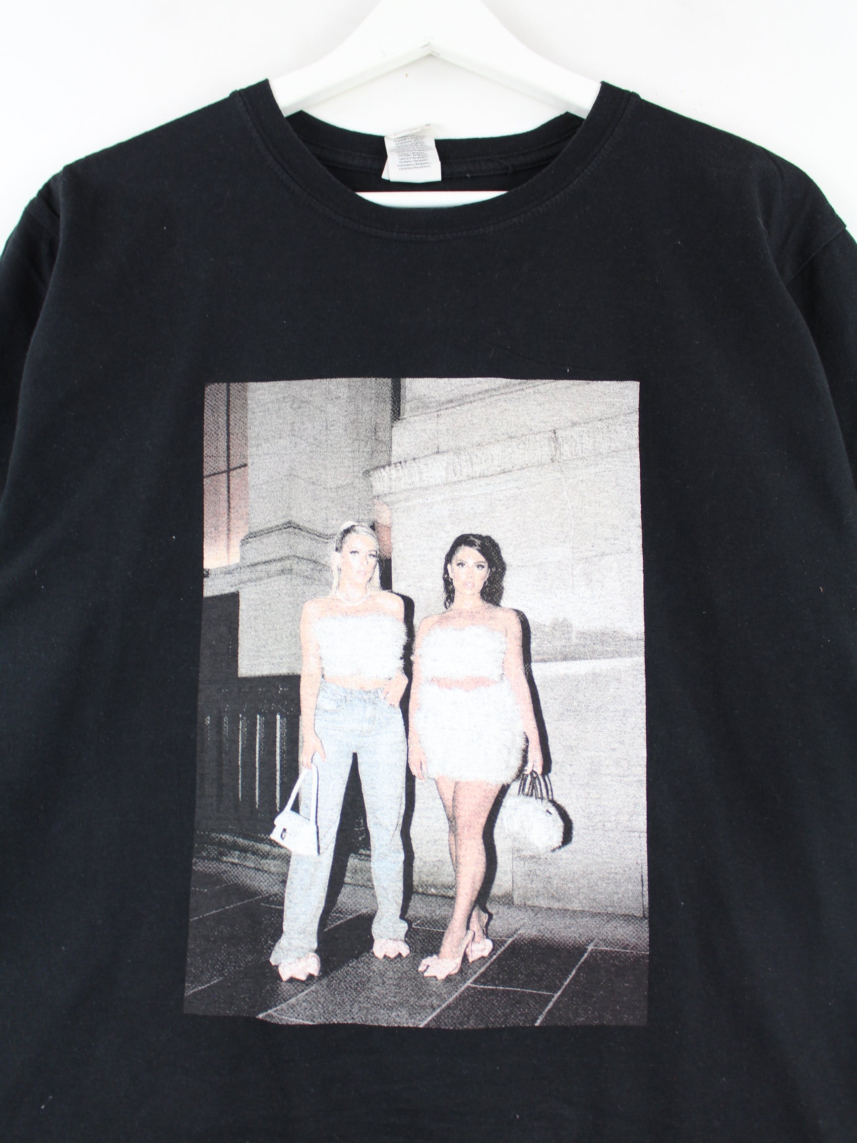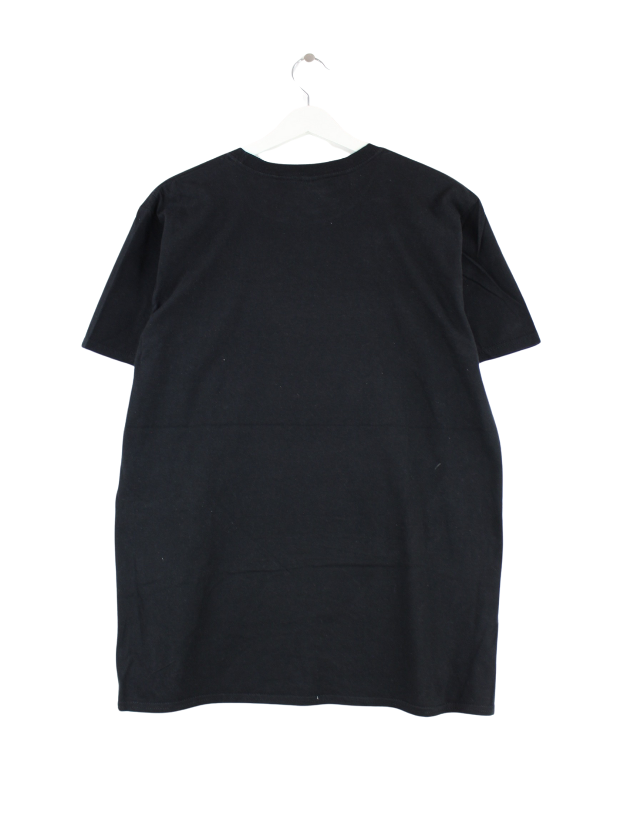 T-Shirt des Labels Gildan in Größe L. Es ist aus Baumwolle und in Schwarz vorrätig. Mit schönem Model Print.