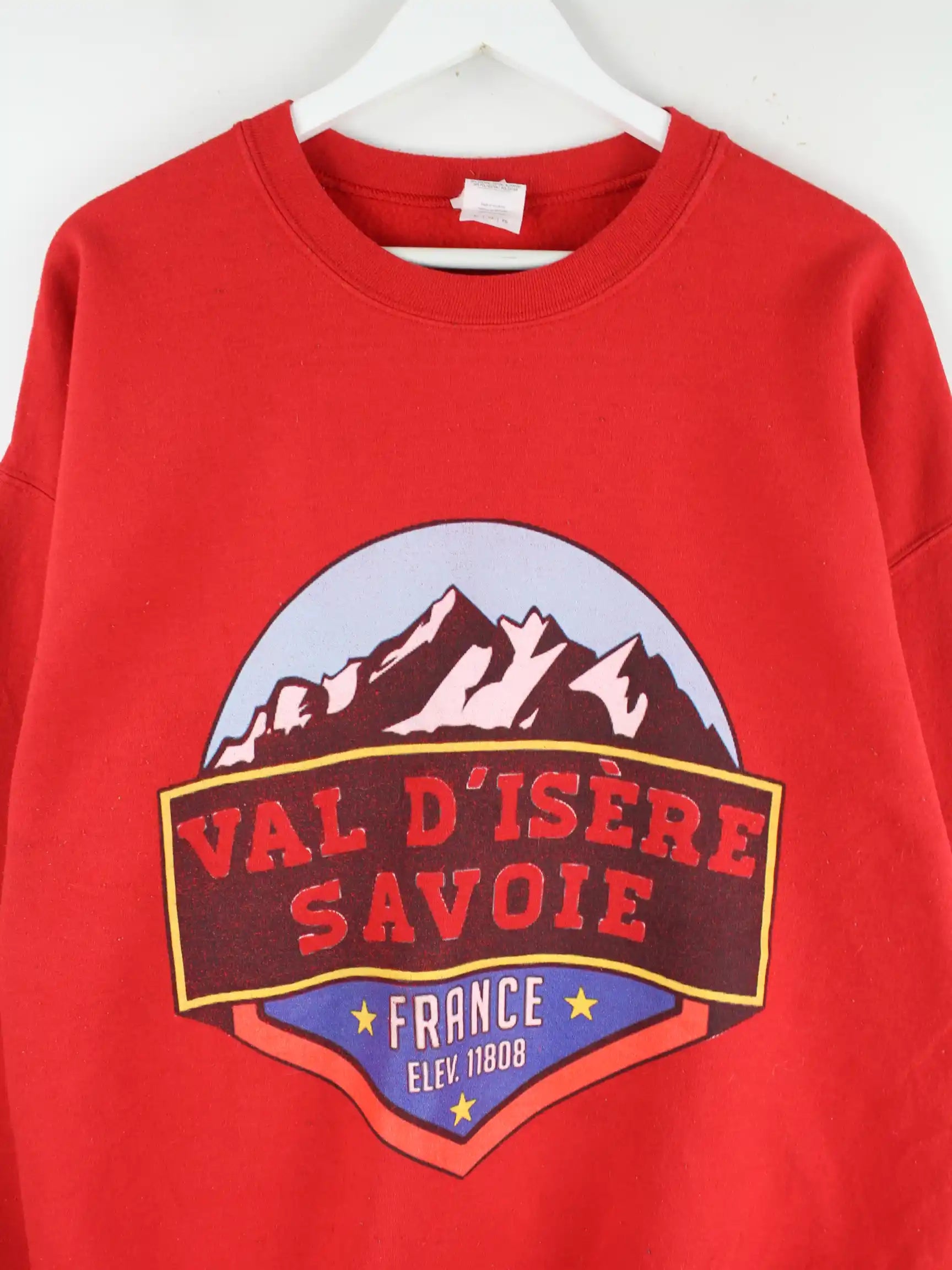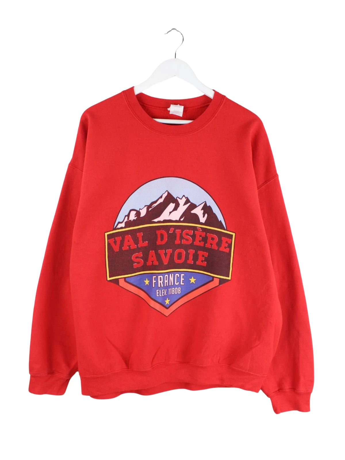 Sweater vom Label Gildan in Größe XL. Er ist aus einer Baumwollmischung produziert und in Rot auf Lager. Mit chiquem Mountain Print.