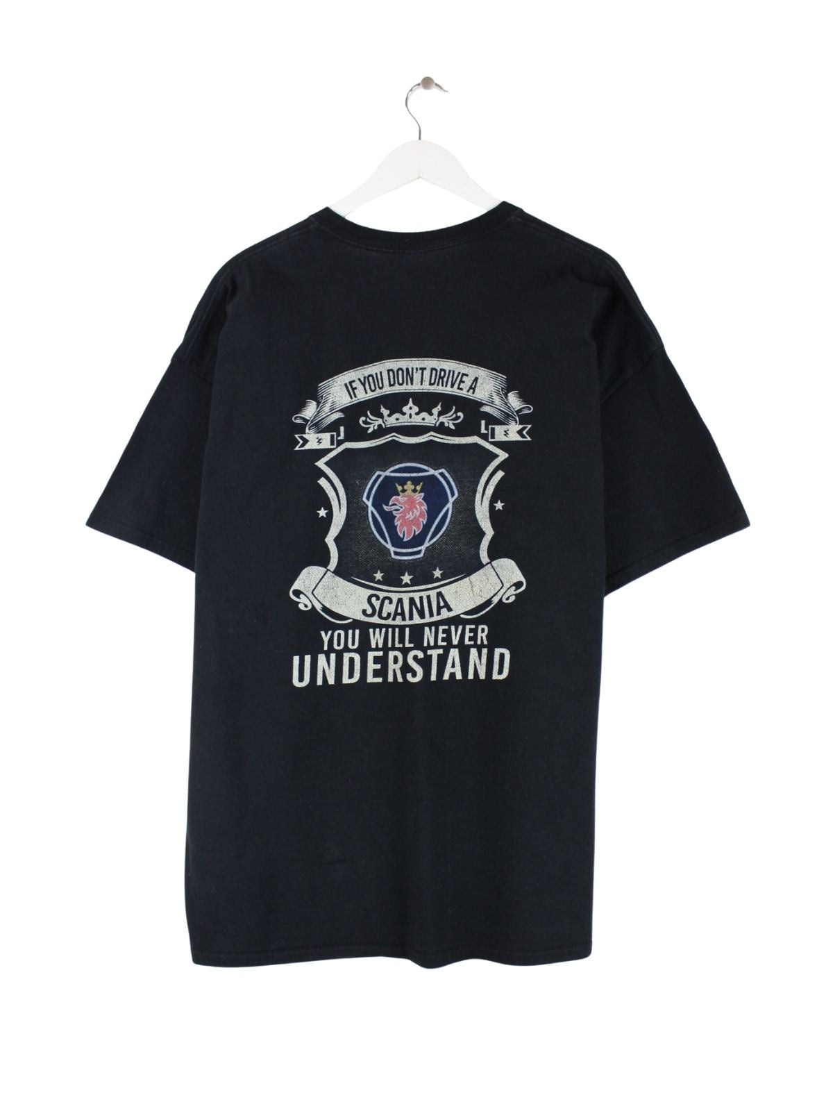 T-Shirt von Gildan in Größe XXL. Es ist aus Baumwolle gefertigt und in Schwarz bei uns zu bekommen. Mit schickem Scania Print.