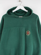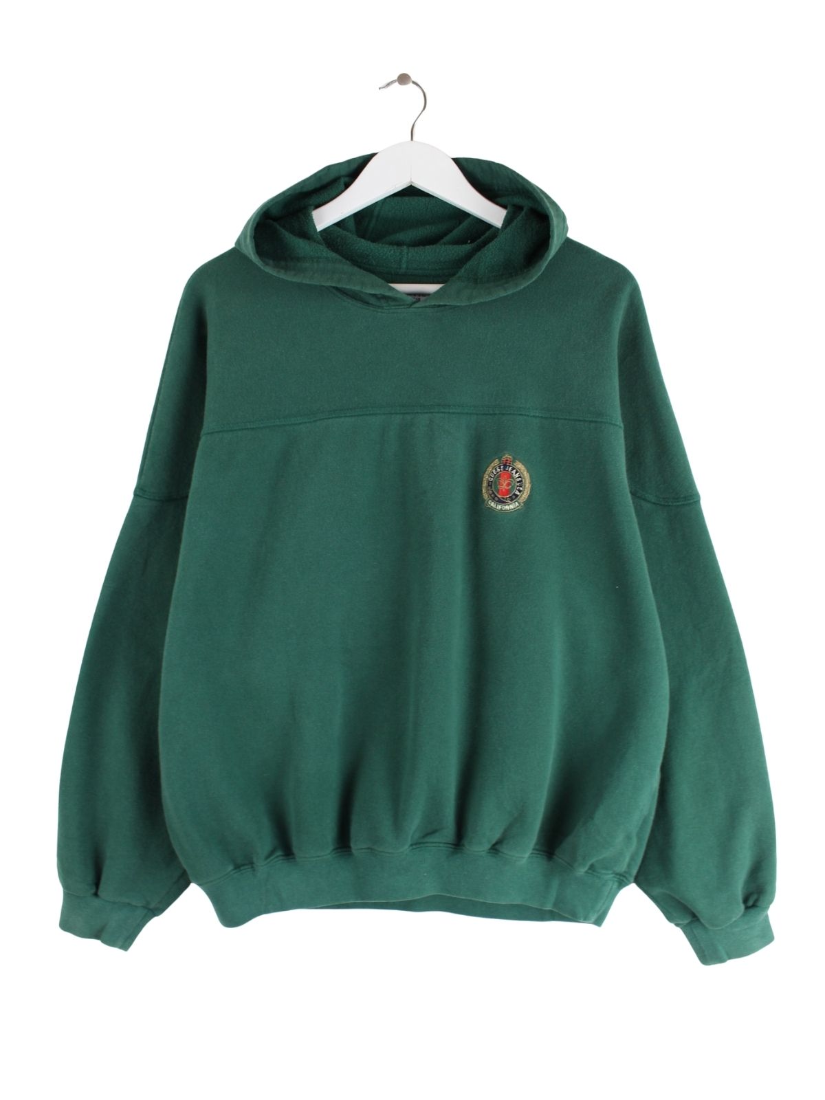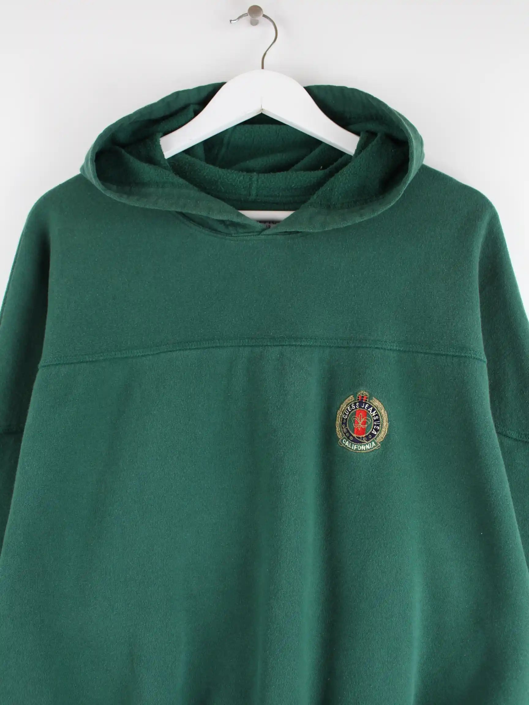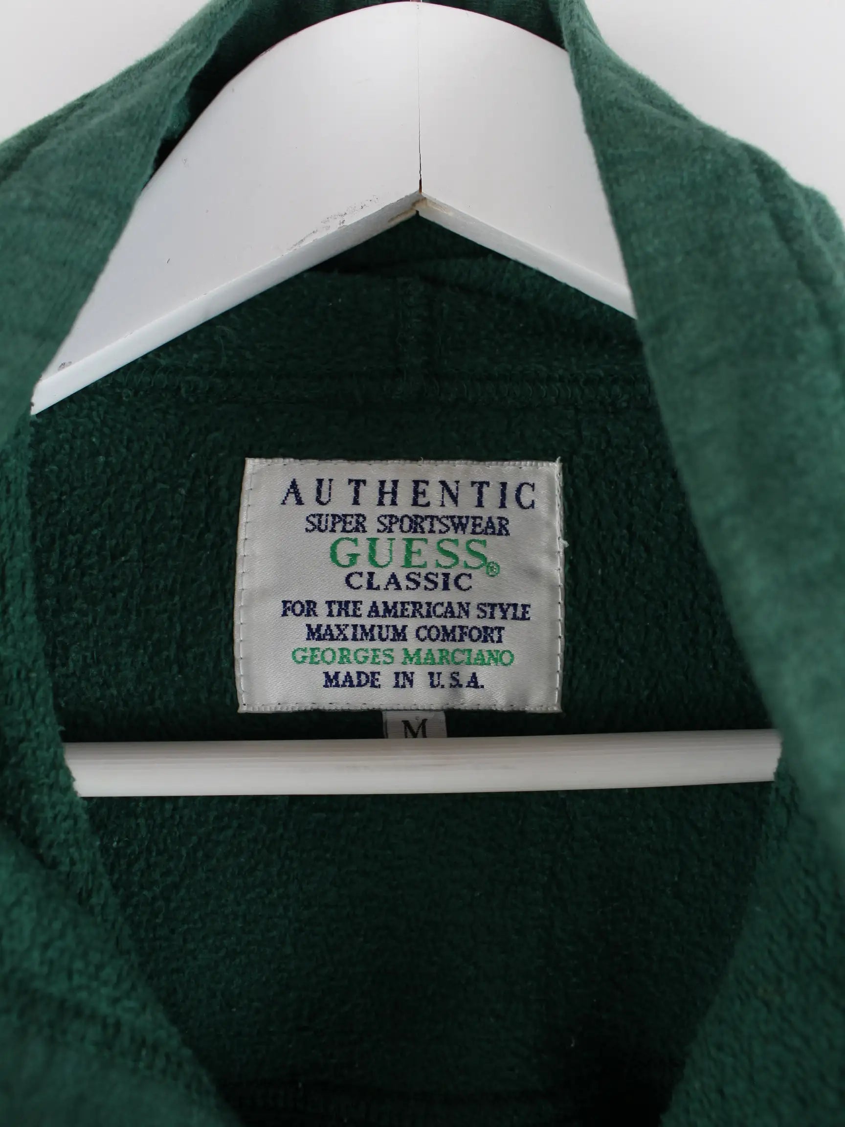 Hoodie aus dem Hause Guess in Größe M aus den 90'ern. Er ist aus einer Baumwollmischung gefertigt und in Grün zu haben.