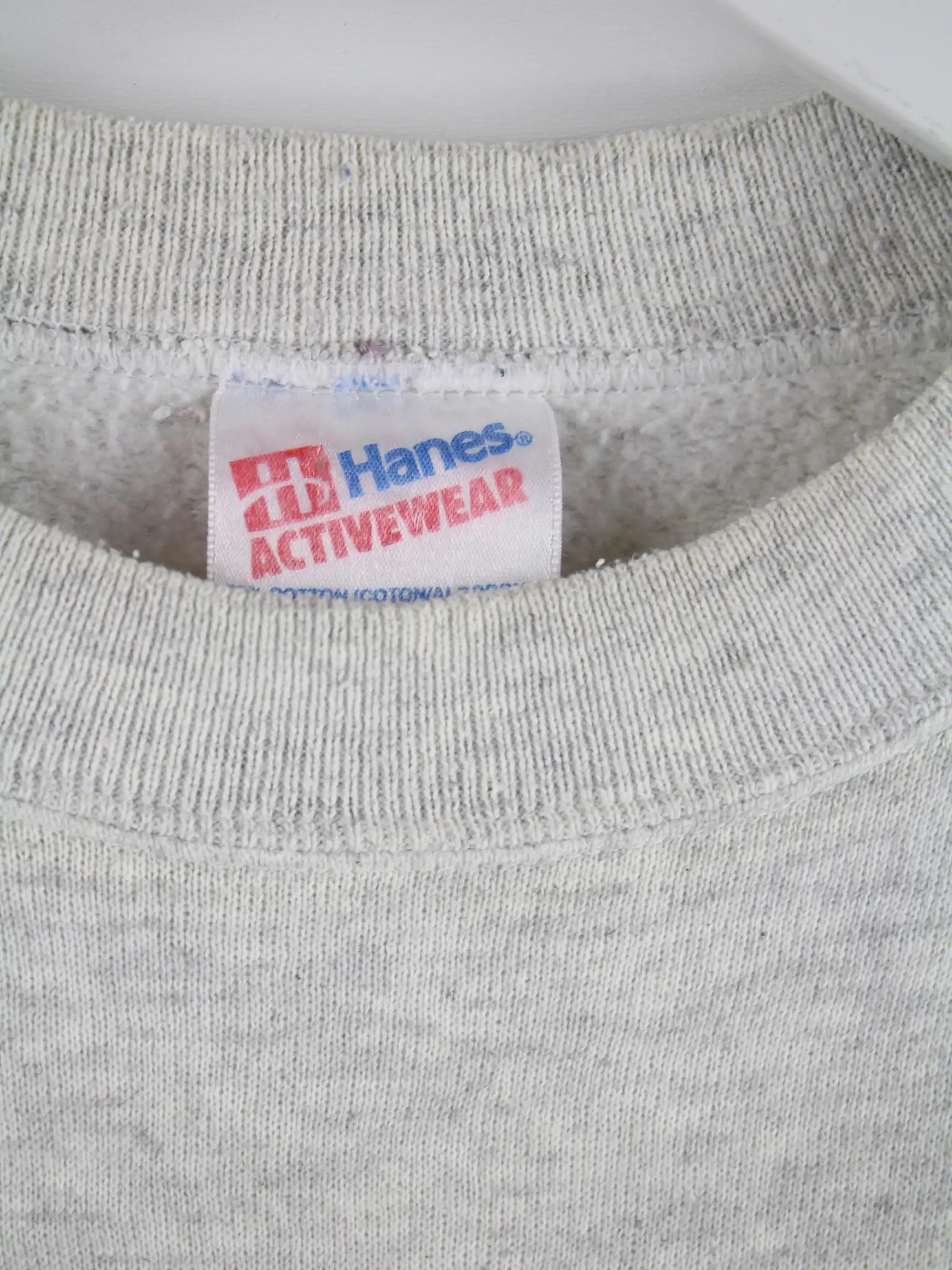 Grauer Sweater der Marke Hanes in Größe XXL. Er ist aus einer Baumwollmischung produziert und in gutem Zustand auf Lager. Mit tollem Ducks Print.