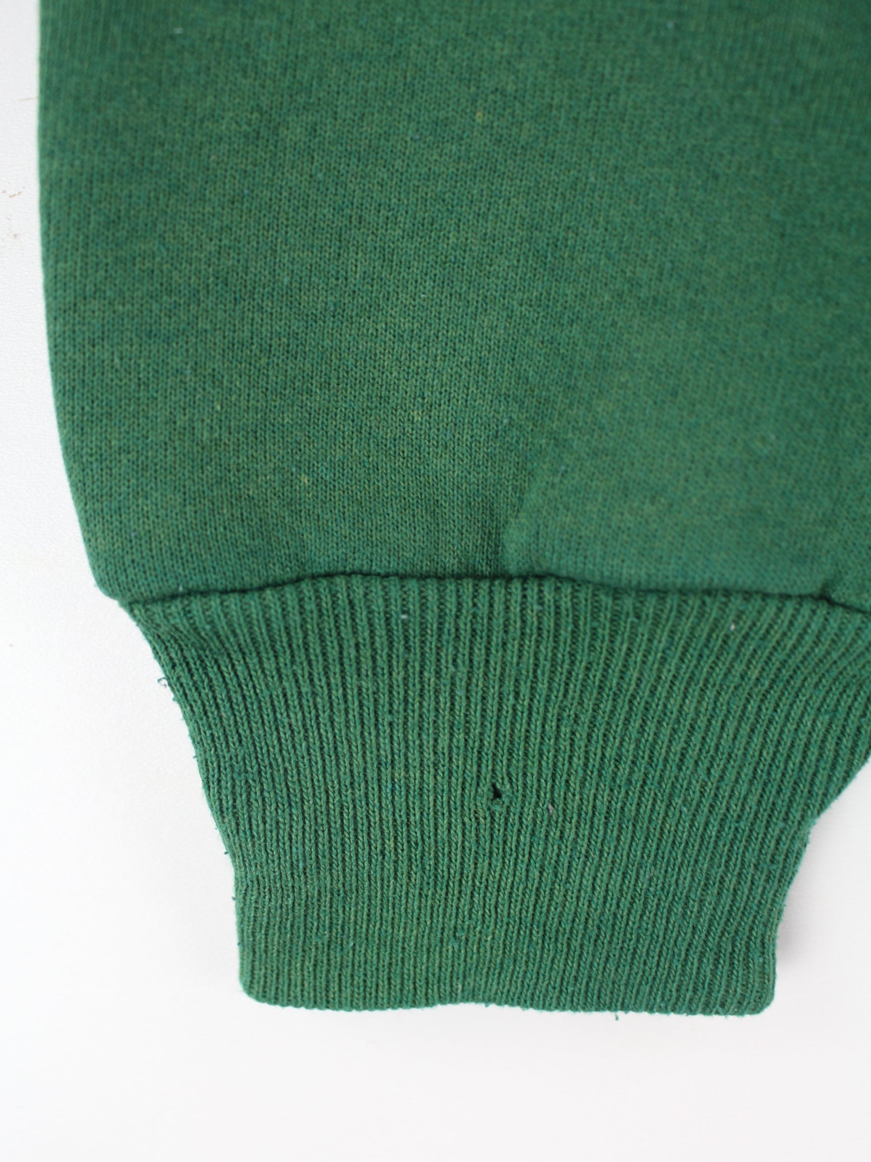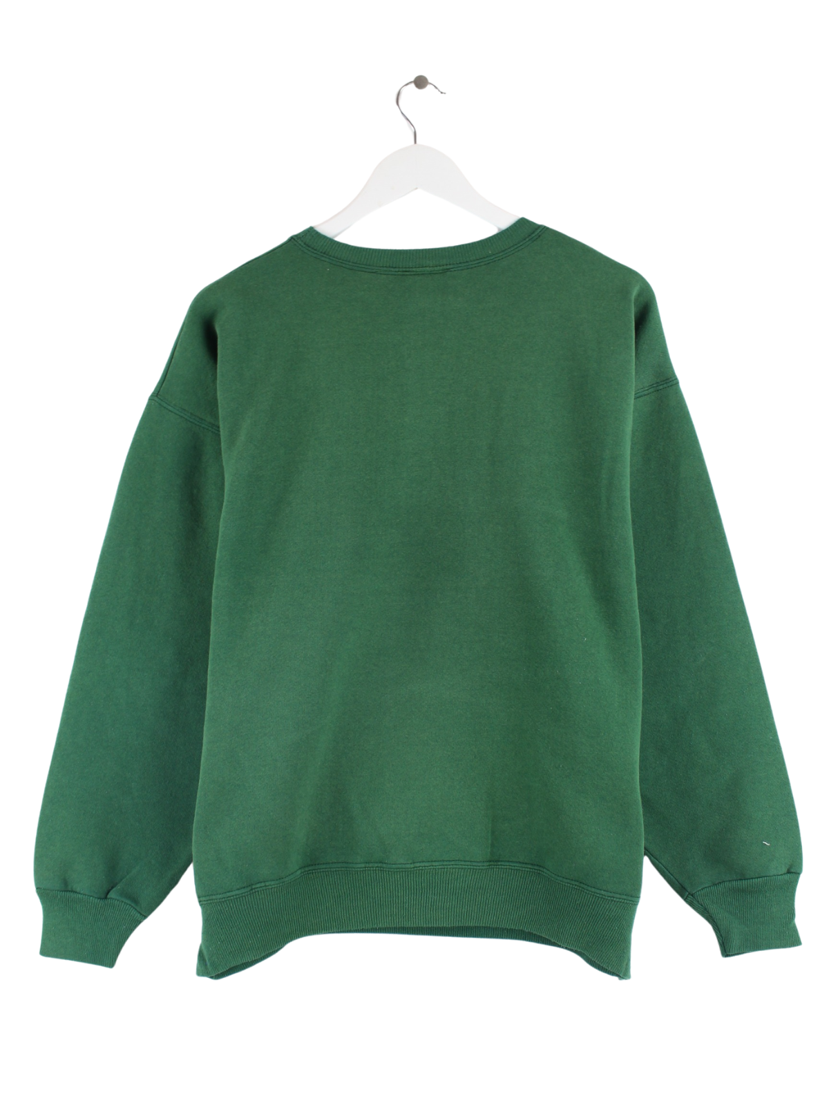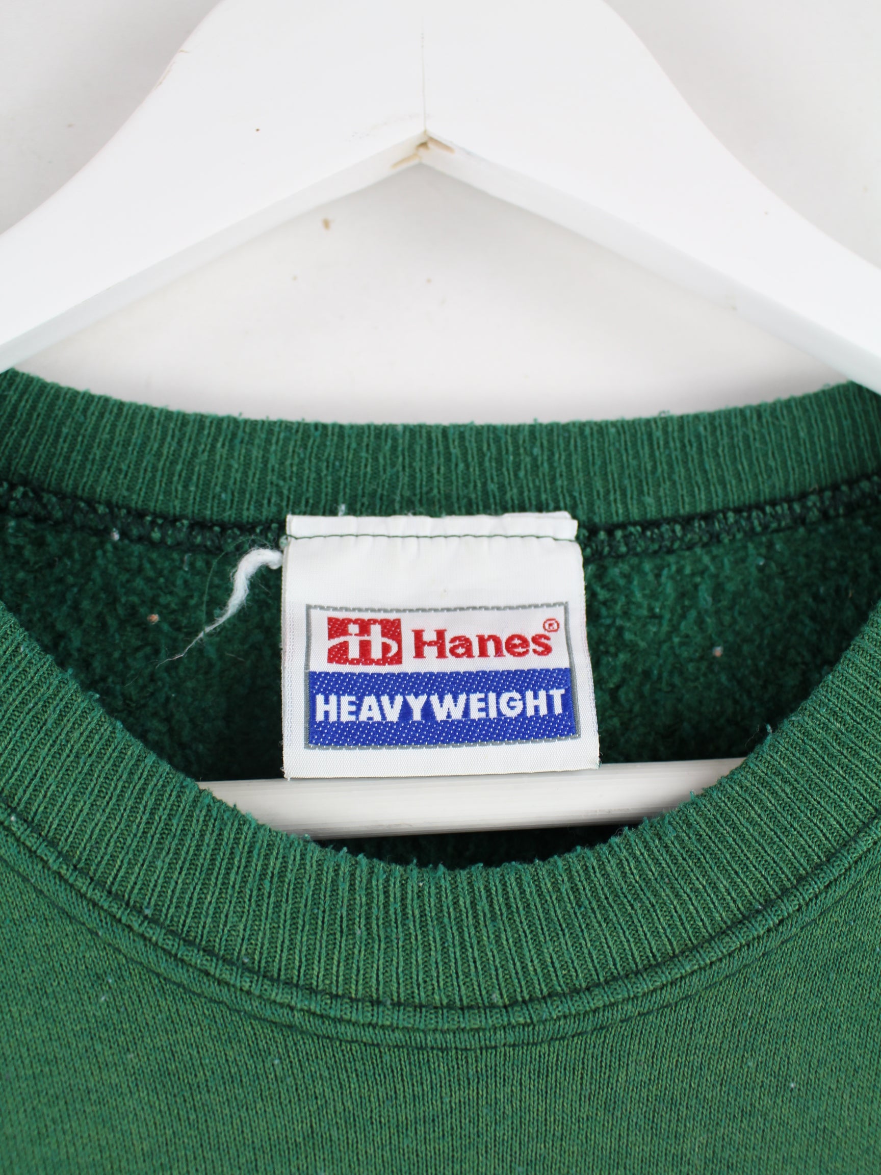 Grüner Sweater der Marke Hanes in Größe M. Er ist aus einer Baumwollmischung produziert und in gutem Zustand im Bestand. Mit chiquem Packers Print.