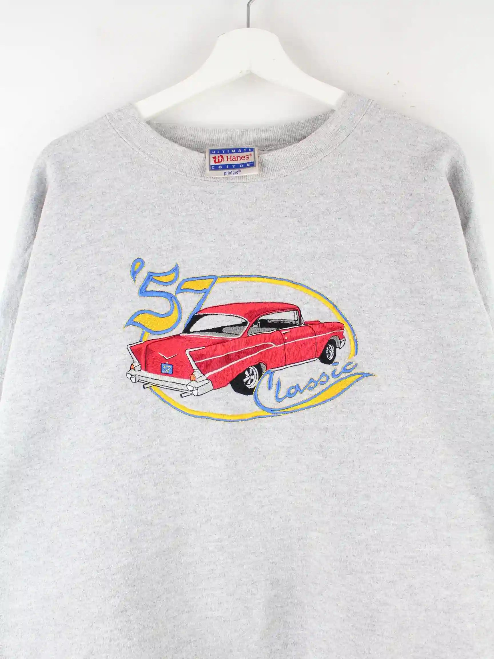 Hanes 90s Vintage Car Embroidered Sweater Grau 3XL