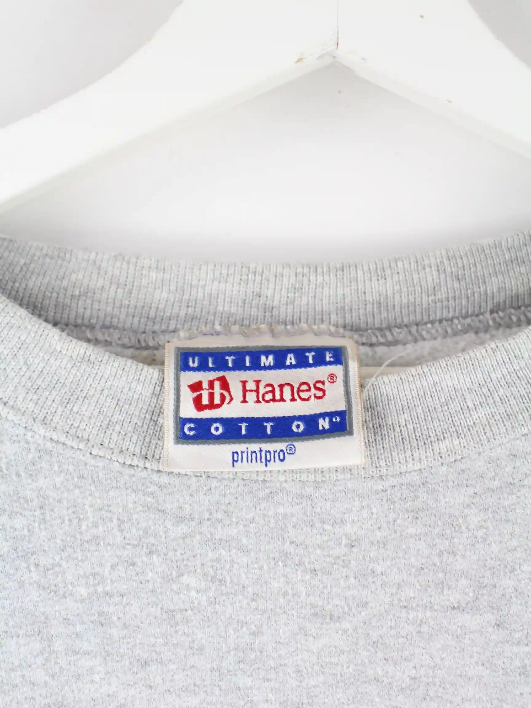 Sweater vom Brand Hanes mit gesticktem Logo in Größe 3XL aus den 90'ern. Er ist aus einer Baumwollmischung und in Grau zu haben.