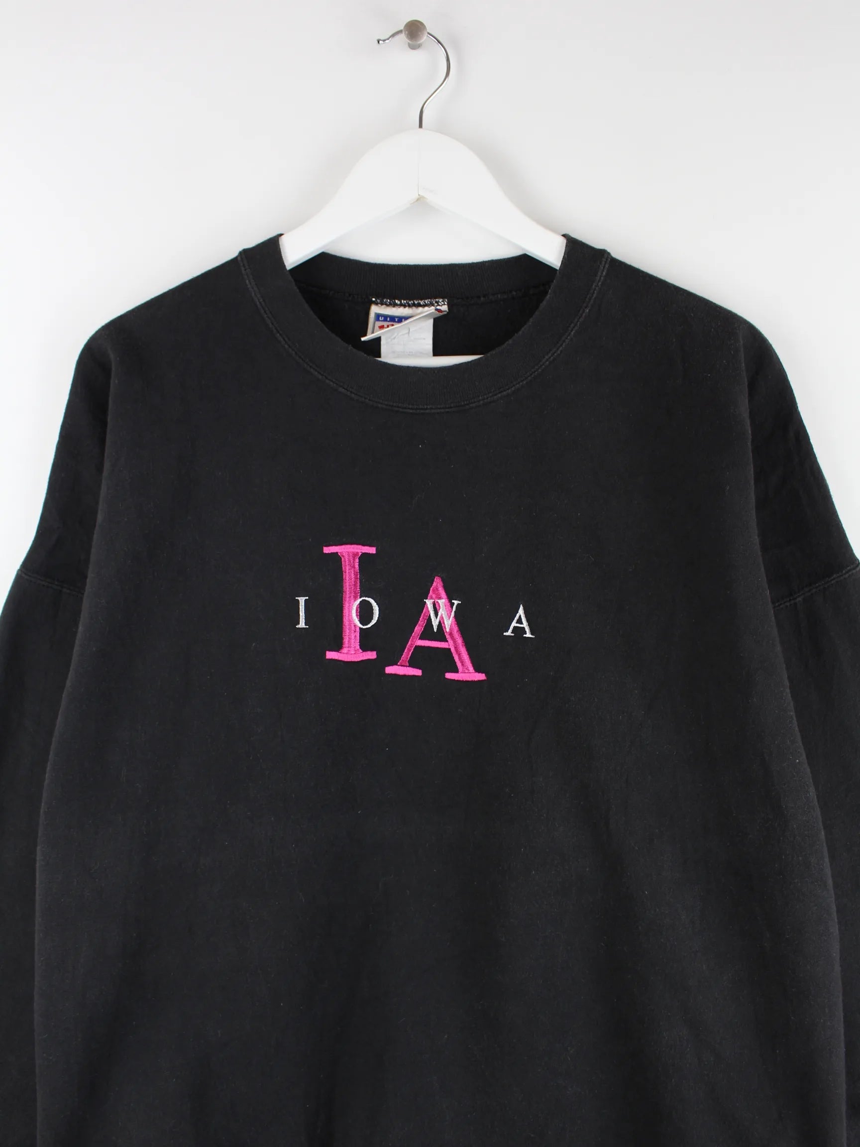 Hanes 90s Vintage Iowa Sweater Schwarz XL