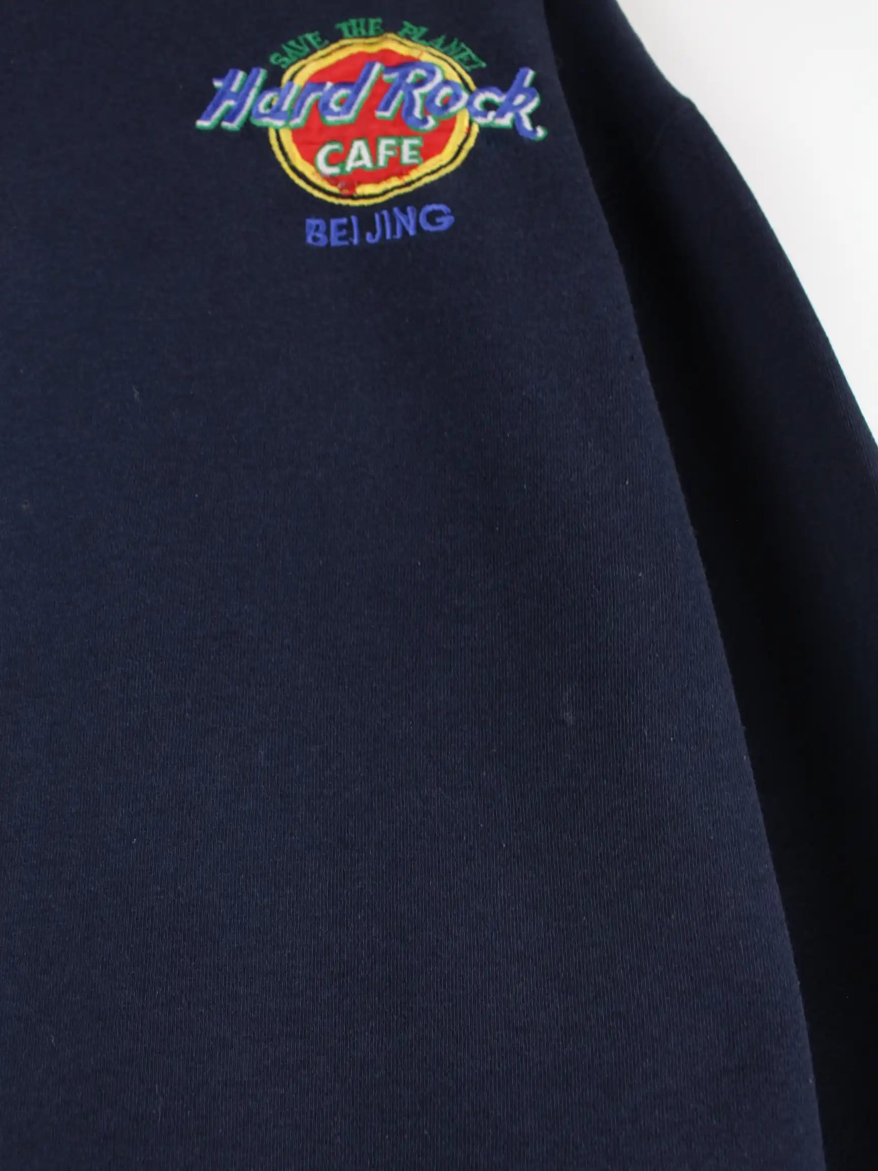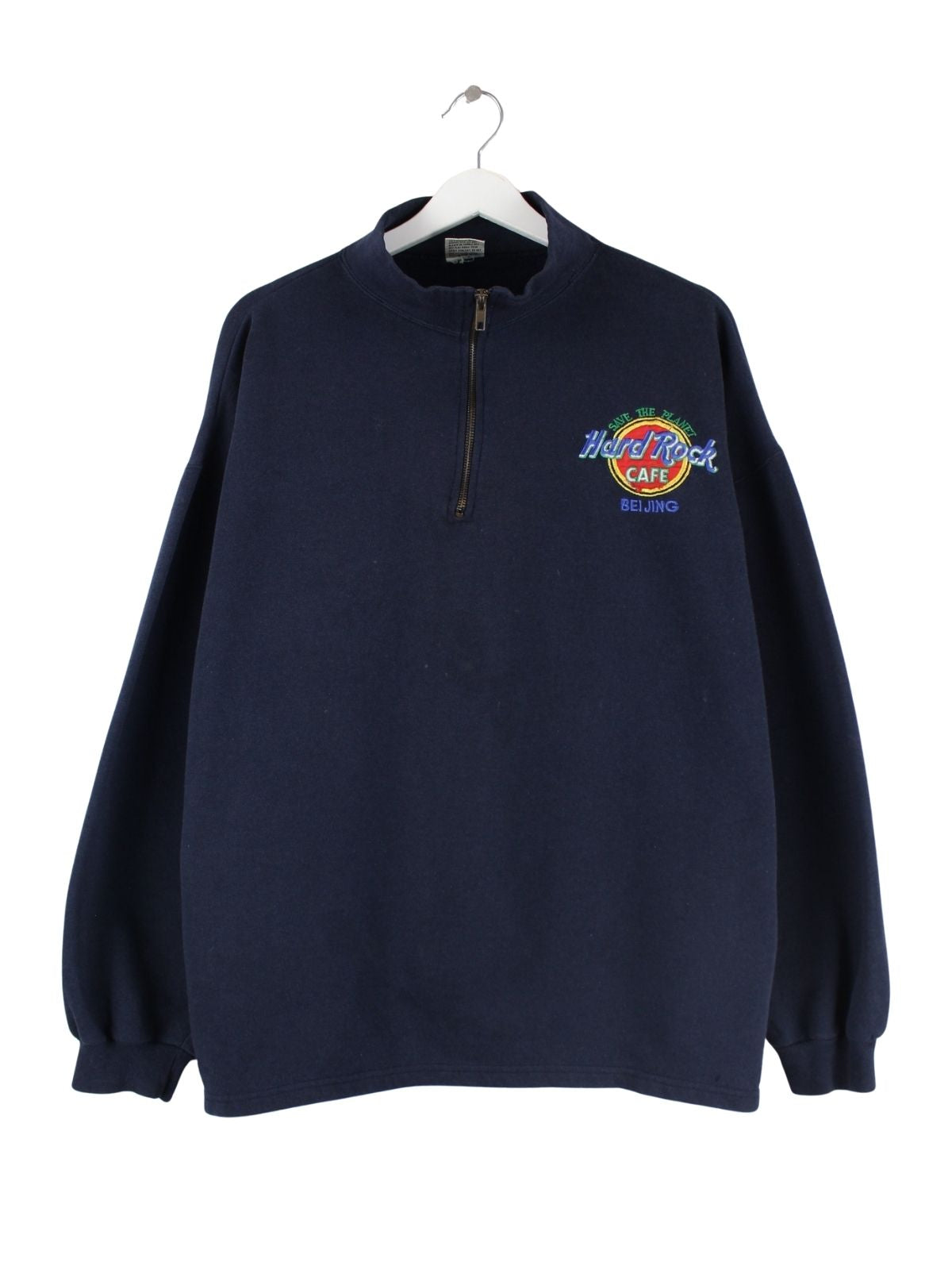 Hard Rock Cafe 90s Vintage Beijing Embroidered Half Zip Sweater Blau L