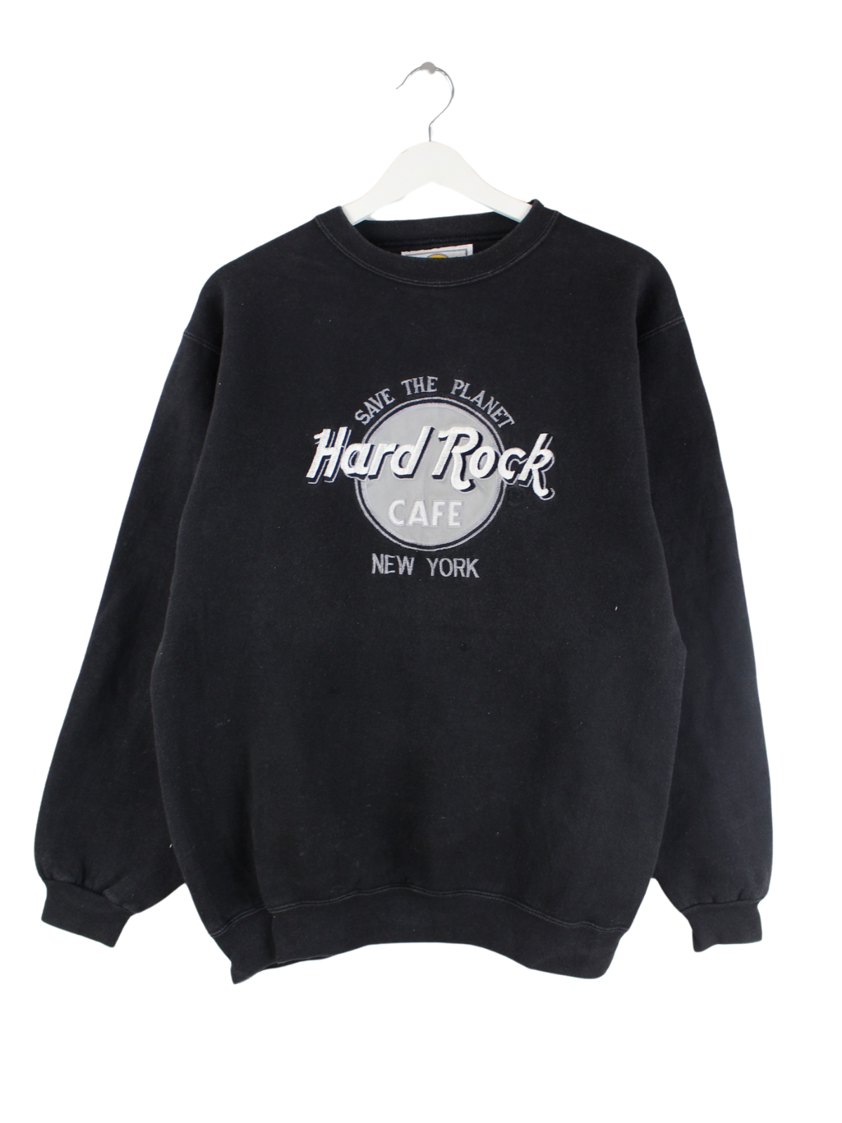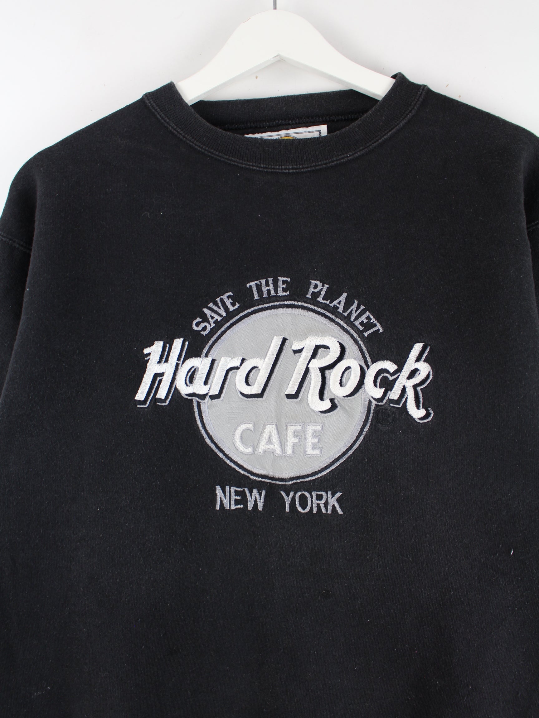 Hard Rock Cafe 90s Vintage New York Embroidered Heavy Sweater Schwarz S