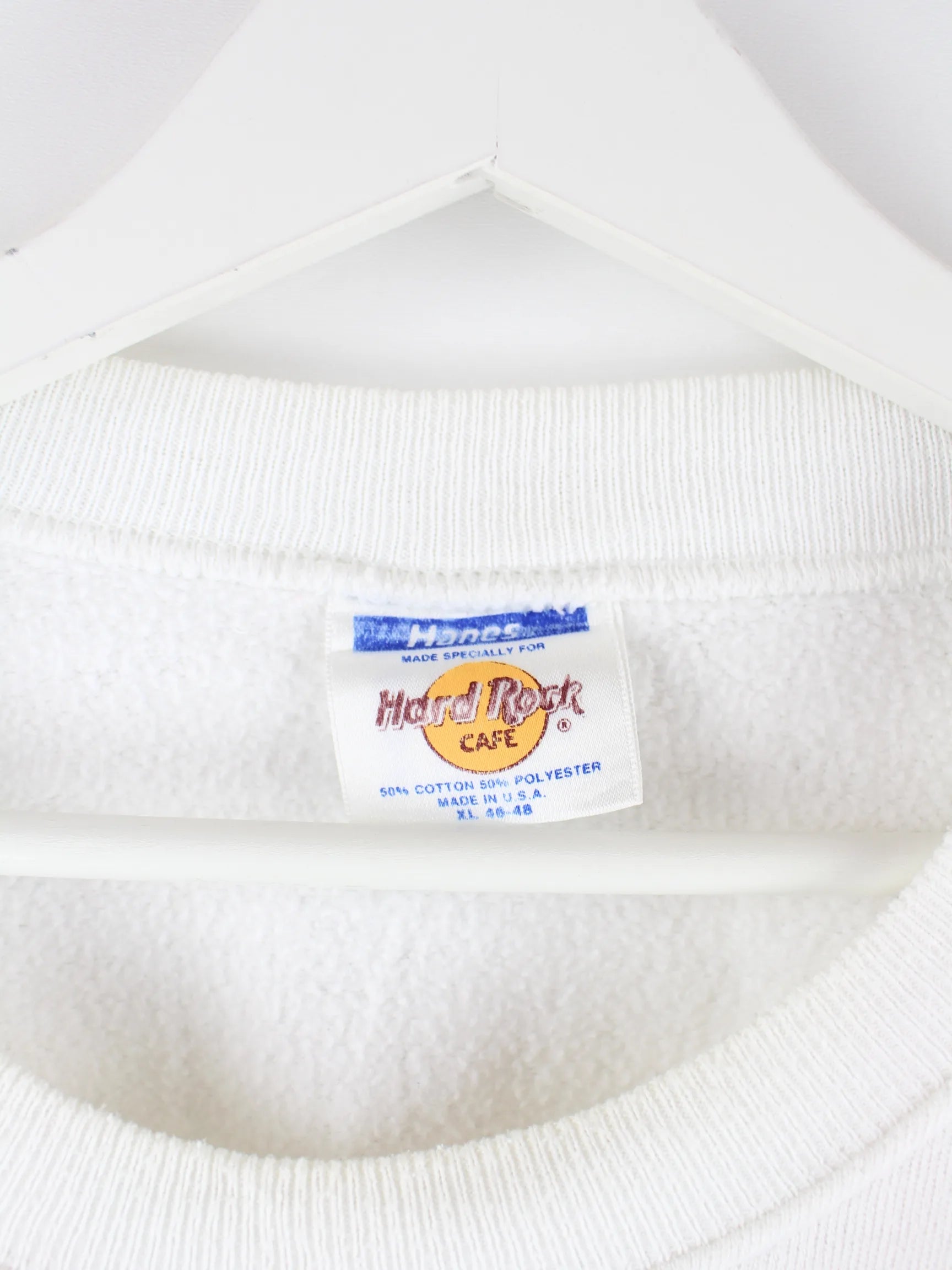 Hard Rock Cafe 90s Vintage New York Print Sweater Weiß XL
