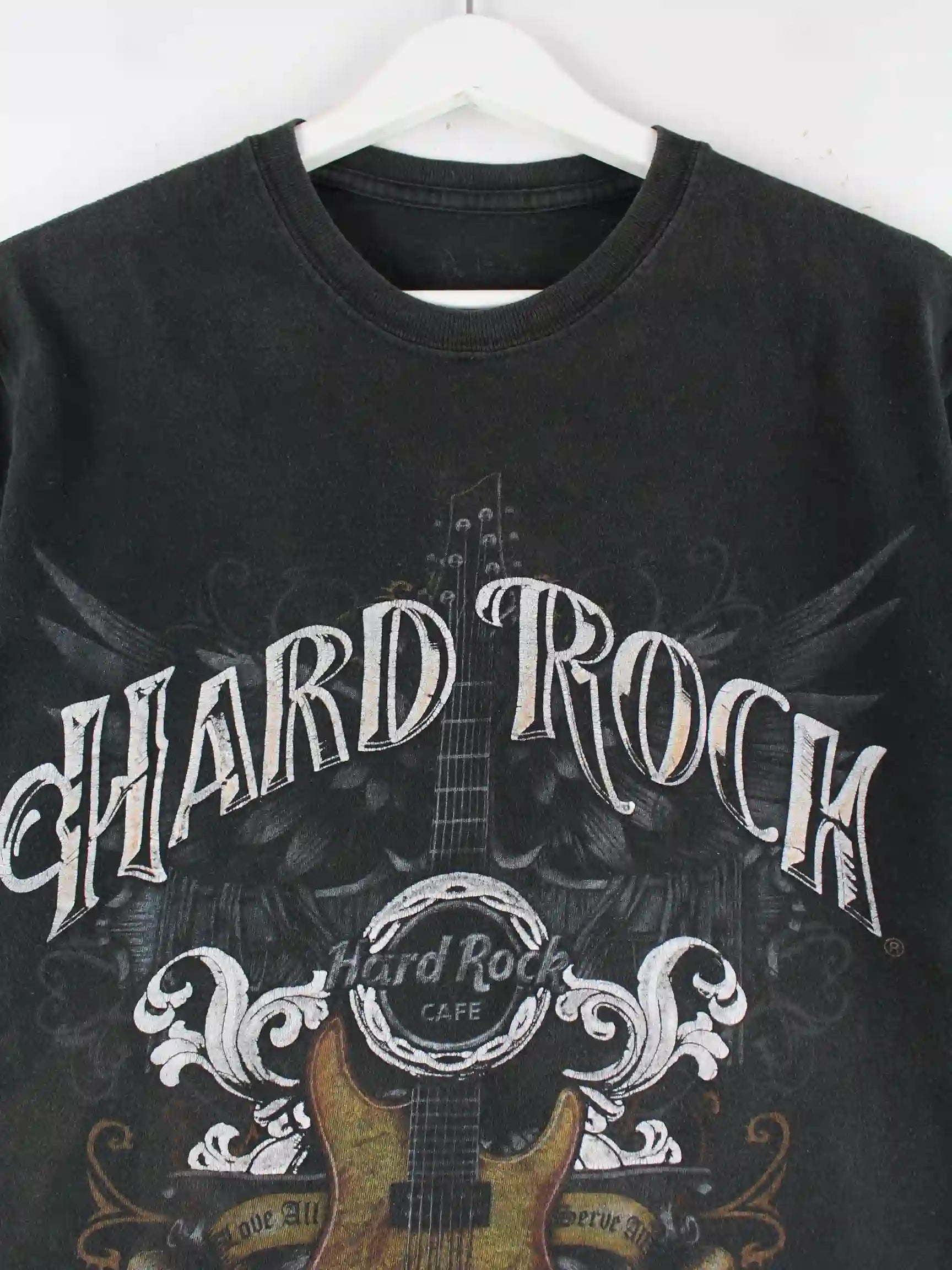 T-Shirt von Hard Rock Cafe in Größe L. Es ist aus Baumwolle hergestellt und in Schwarz im Bestand. Mit chiquem Faded Print.