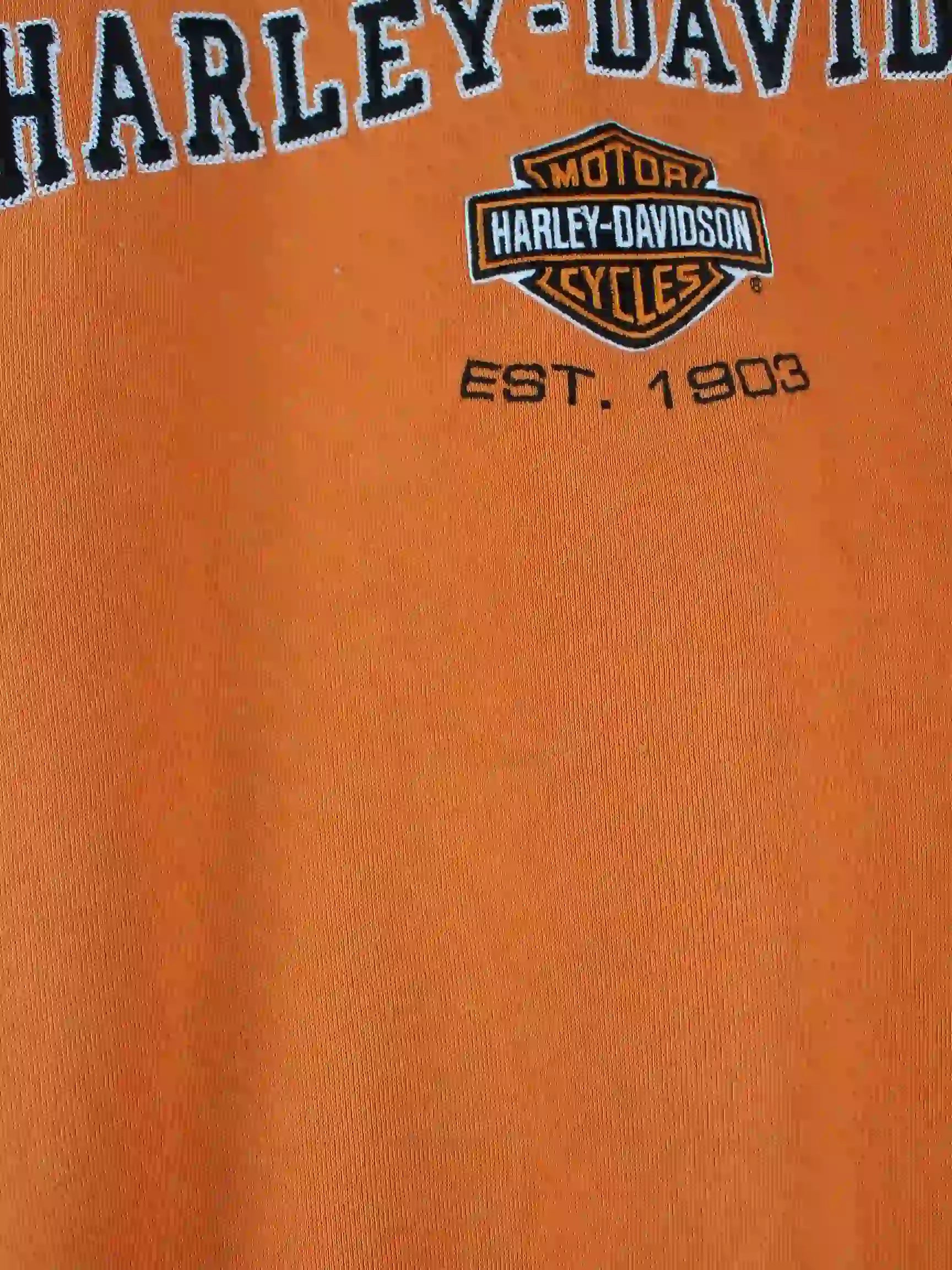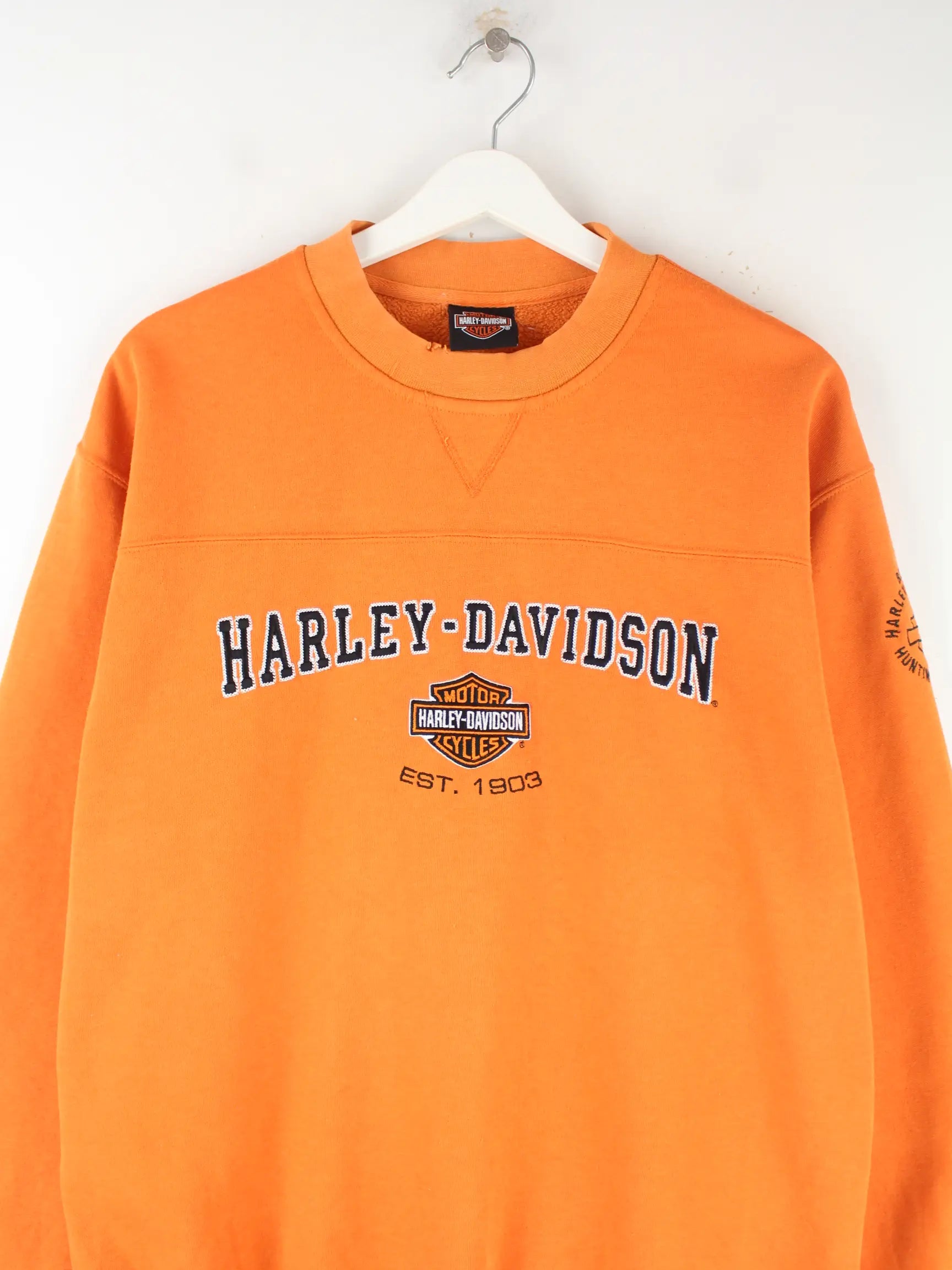 Sweater vom Label Harley Davidson mit gesticktem Logo in Größe L. Er ist aus einer Baumwollmischung produziert und in Orange im Angebot.