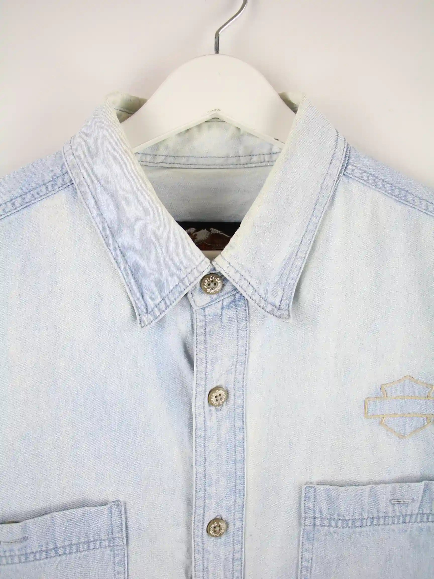 Freizeit Hemd aus dem Hause Harley Davidson in Größe L. Es ist aus Baumwolle hergestellt und in Blau zu bekommen.