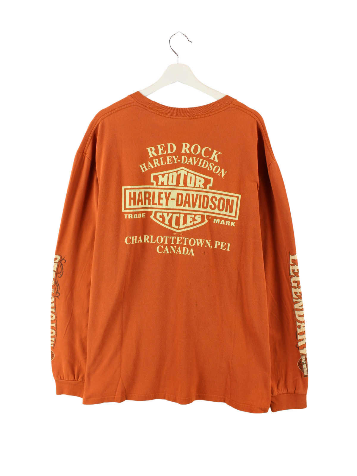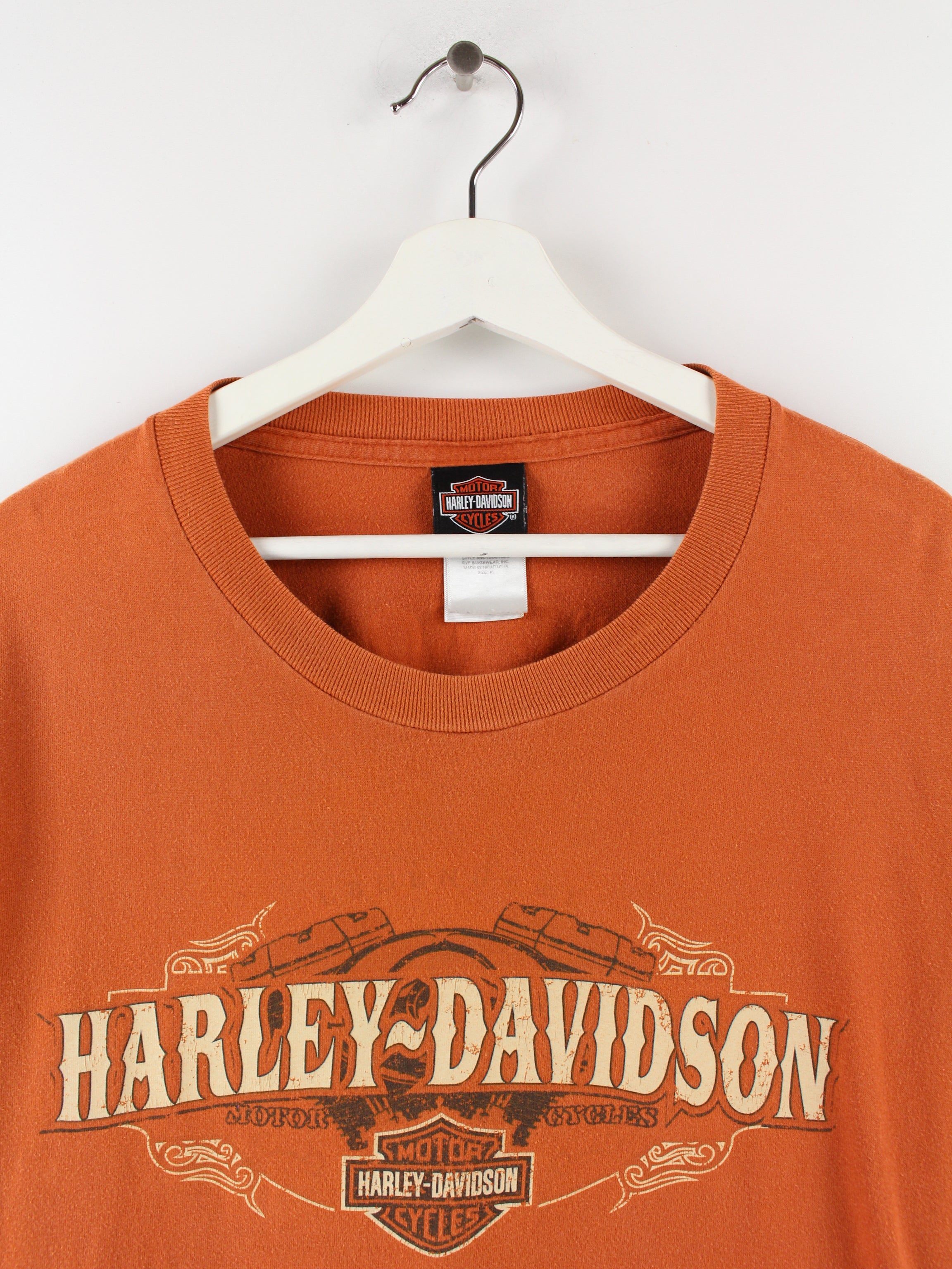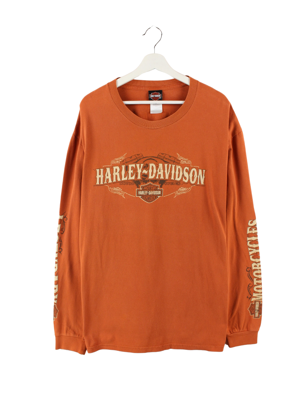 Oranges Langarmshirt der Marke Harley-Davidson mit Front- und Backprint.