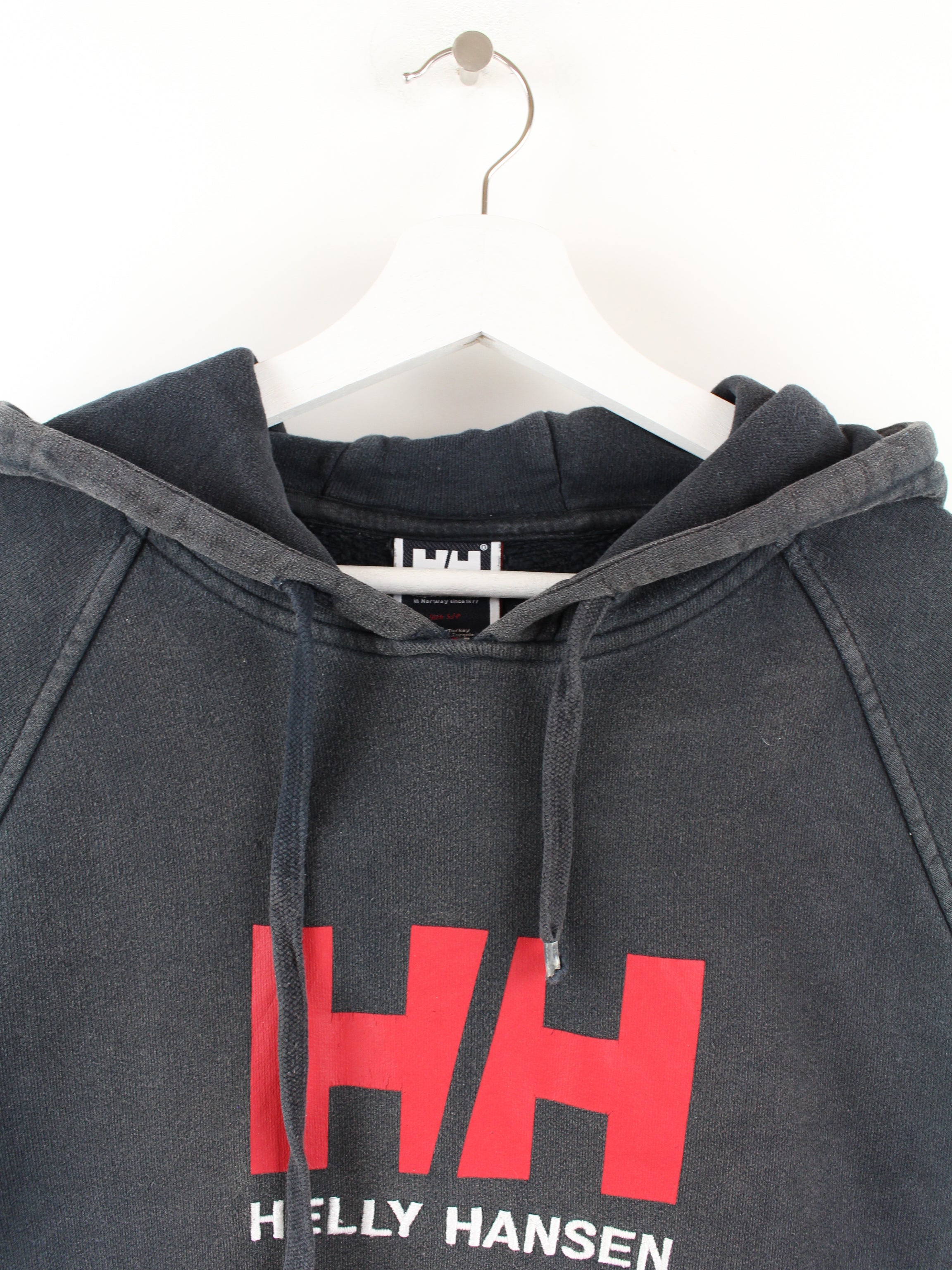 Schwarzer Hoodie der Marke Helly Hansen mit großem Logo.