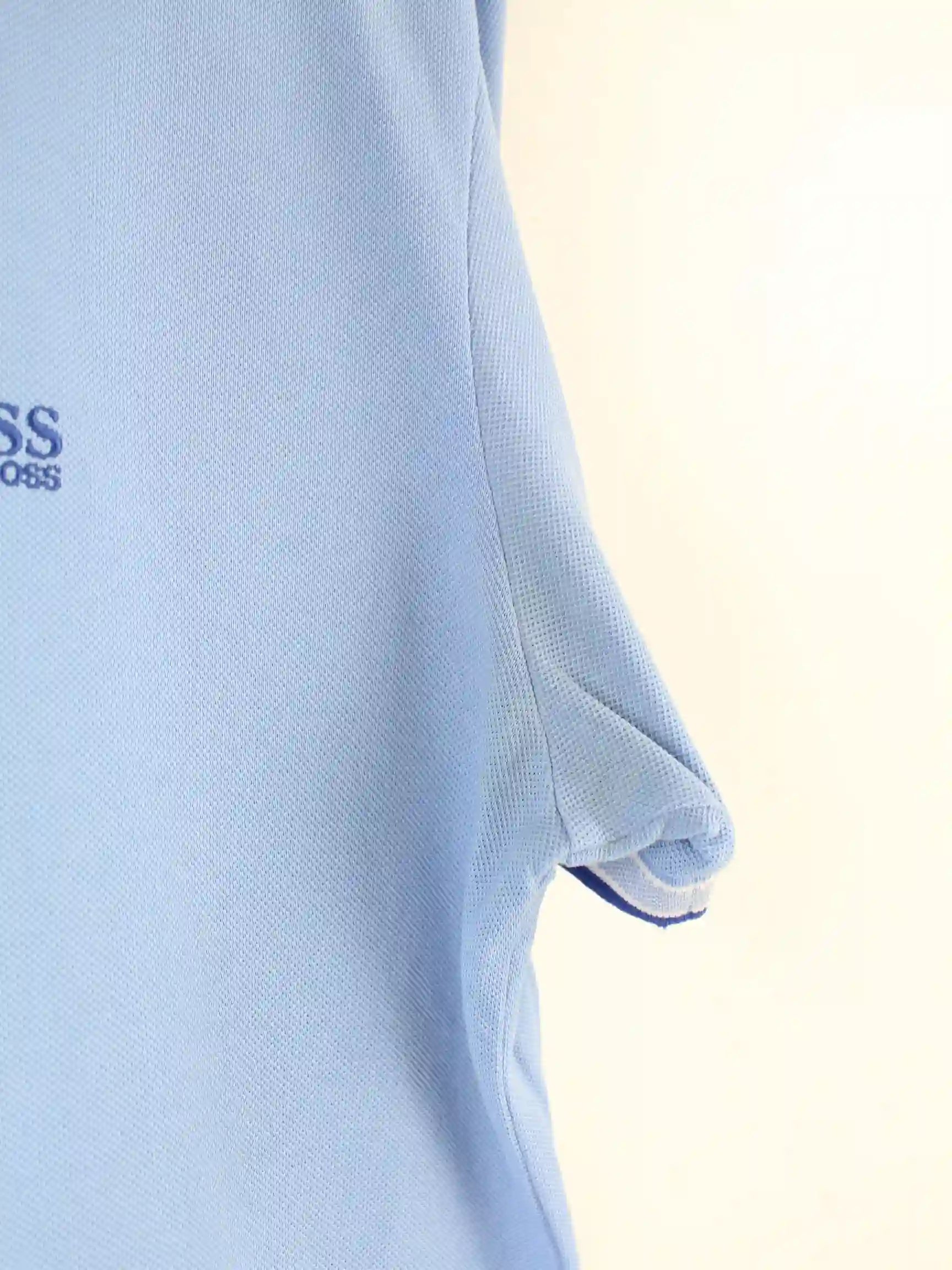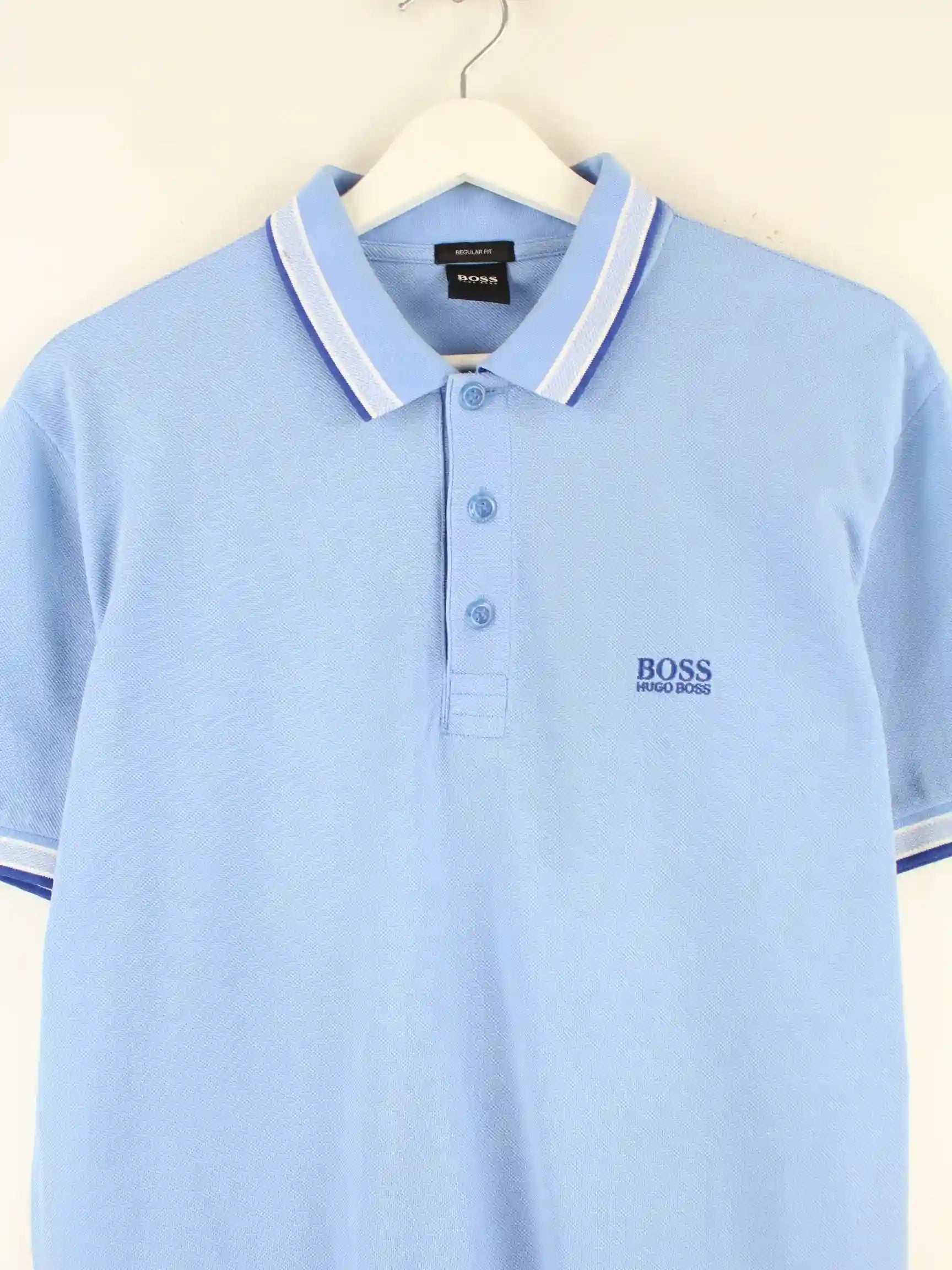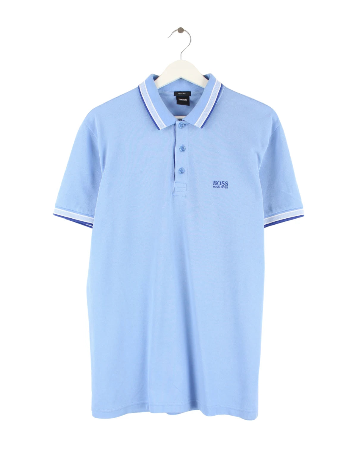 Poloshirt vom Brand Hugo Boss in Größe L. Es ist aus Baumwolle hergestellt und in Blau lieferbar.