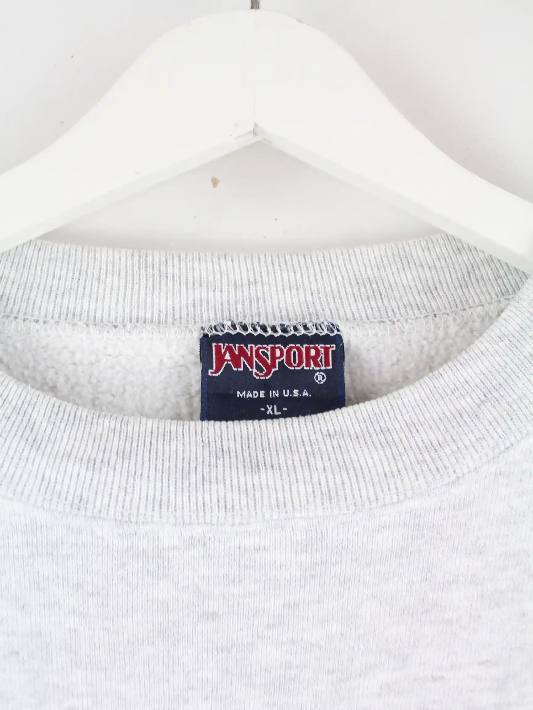 Sweater des Labels Jansport mit Stickereien in Größe XL aus den 90'ern. Er ist aus einer Baumwollmischung hergestellt und in Grau im Angebot.