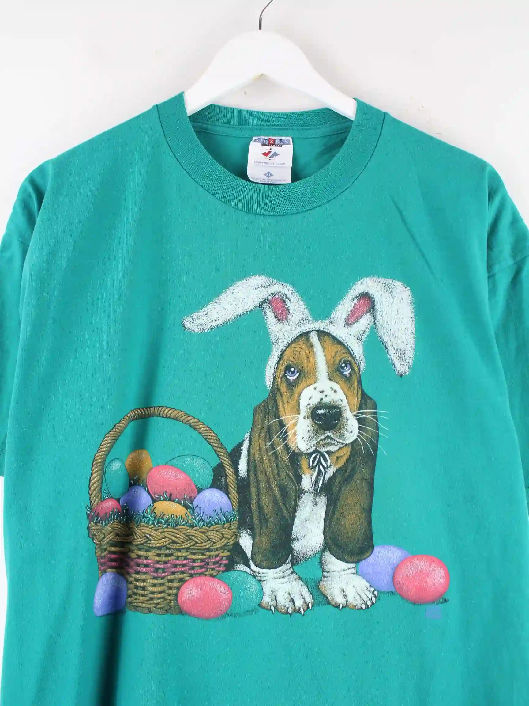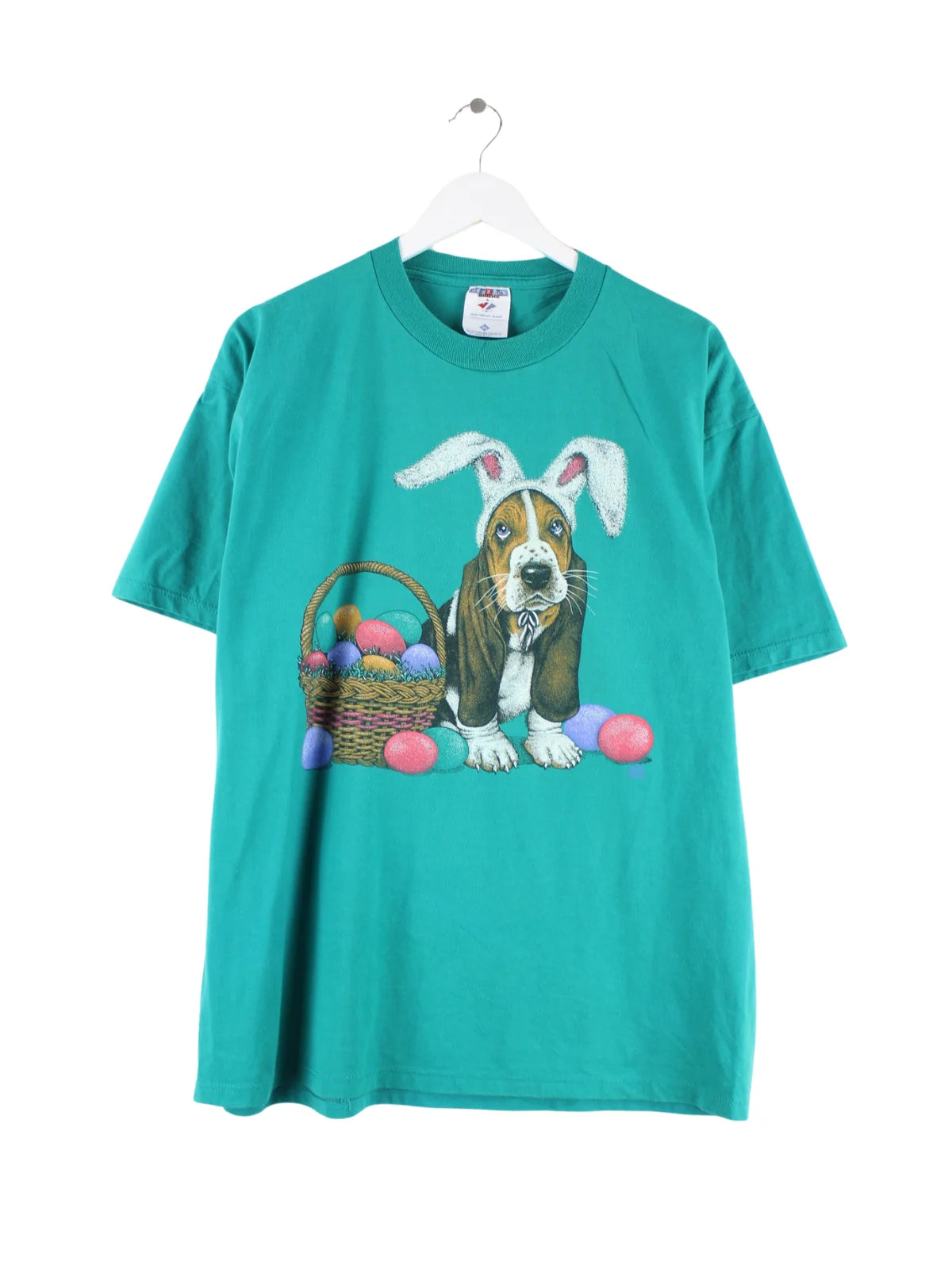 Jerzees 90s Vintage Easter Dog Print T-Shirt Grün XL