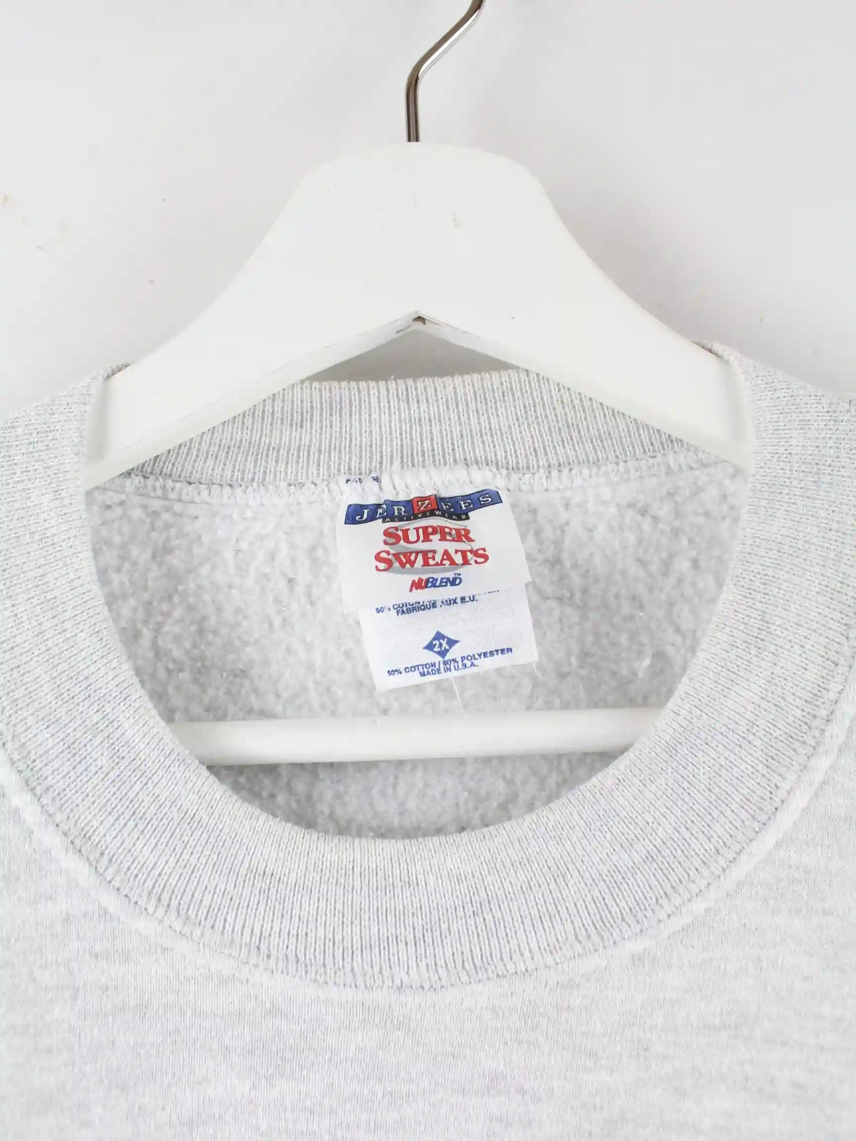 Grauer Sweater mit Stick von Jerzees in Größe XXL. Er ist aus einer Baumwollmischung produziert und in sehr gutem Zustand in Stock.