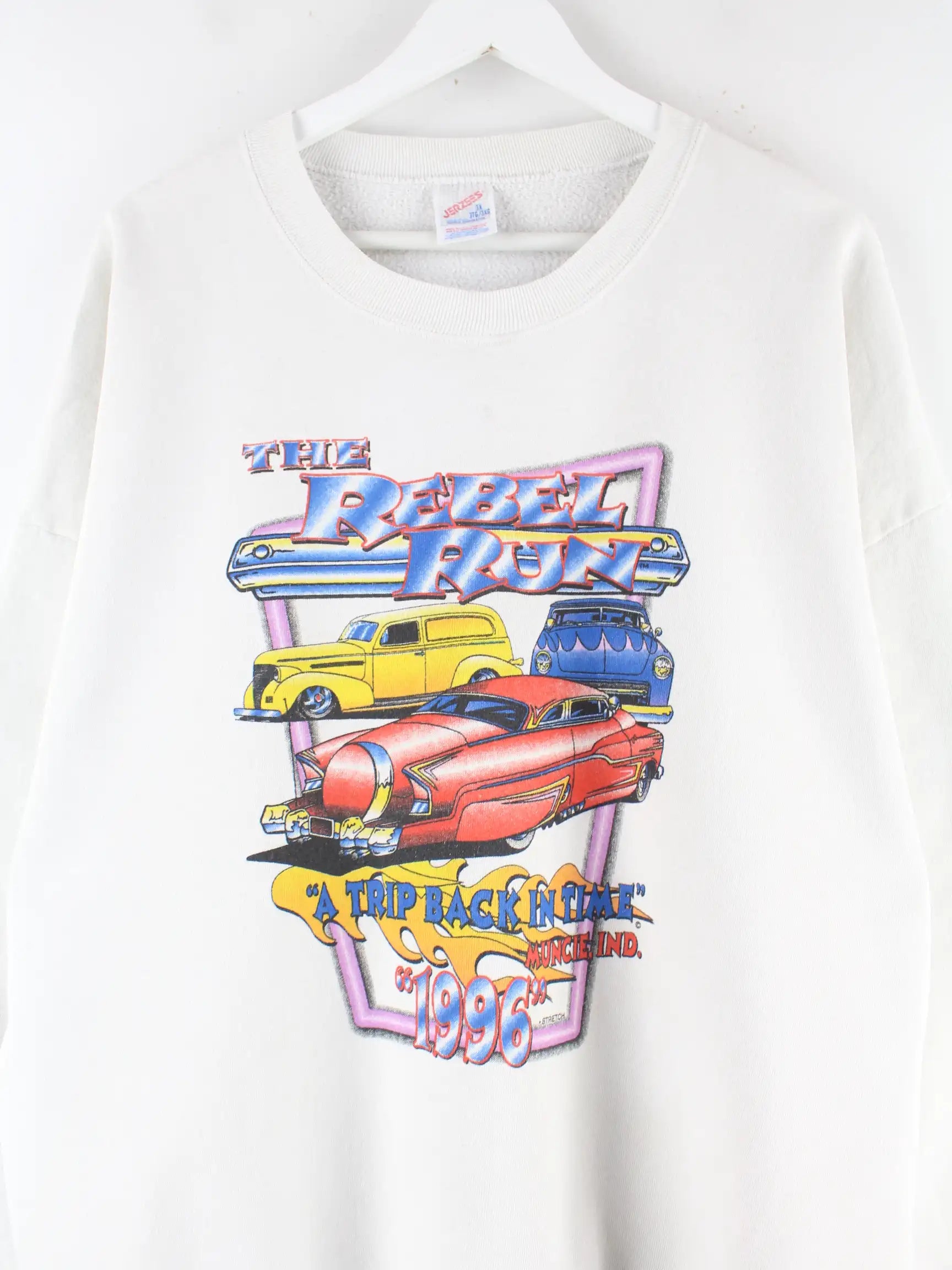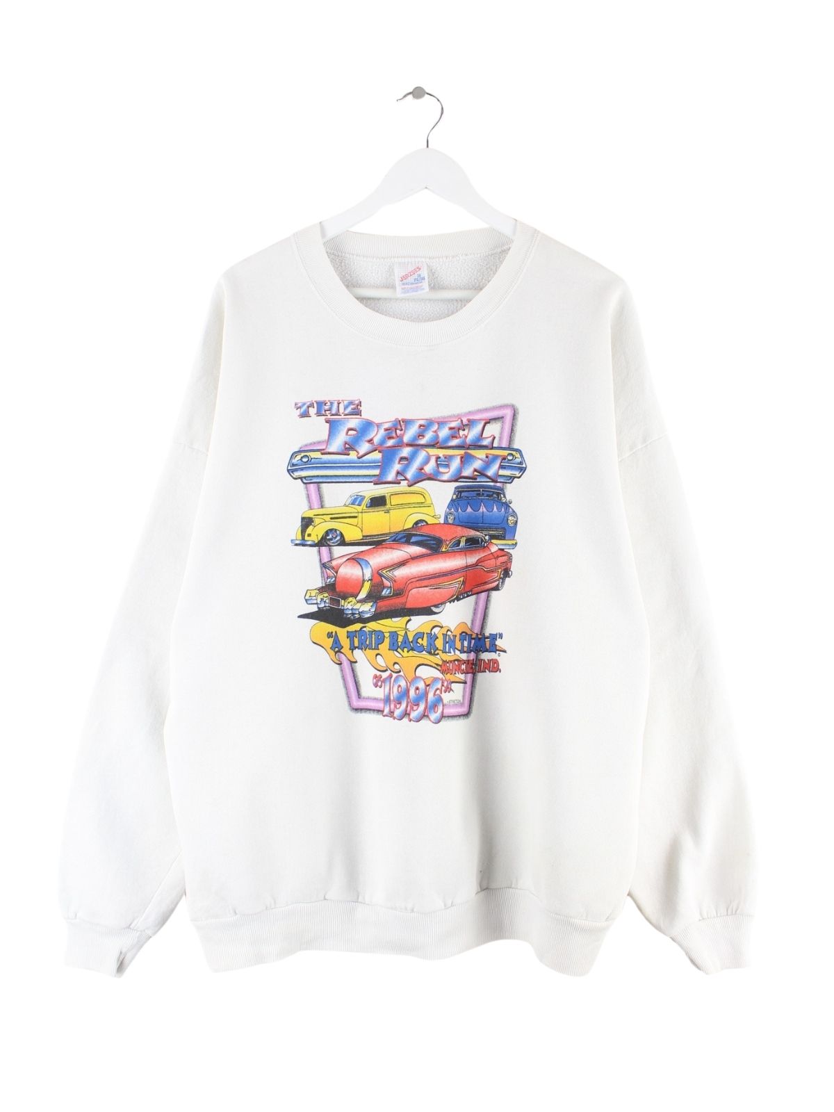 Jerzees 1996 Vintage Rebel Run Racing Print Sweater Weiß 3XL