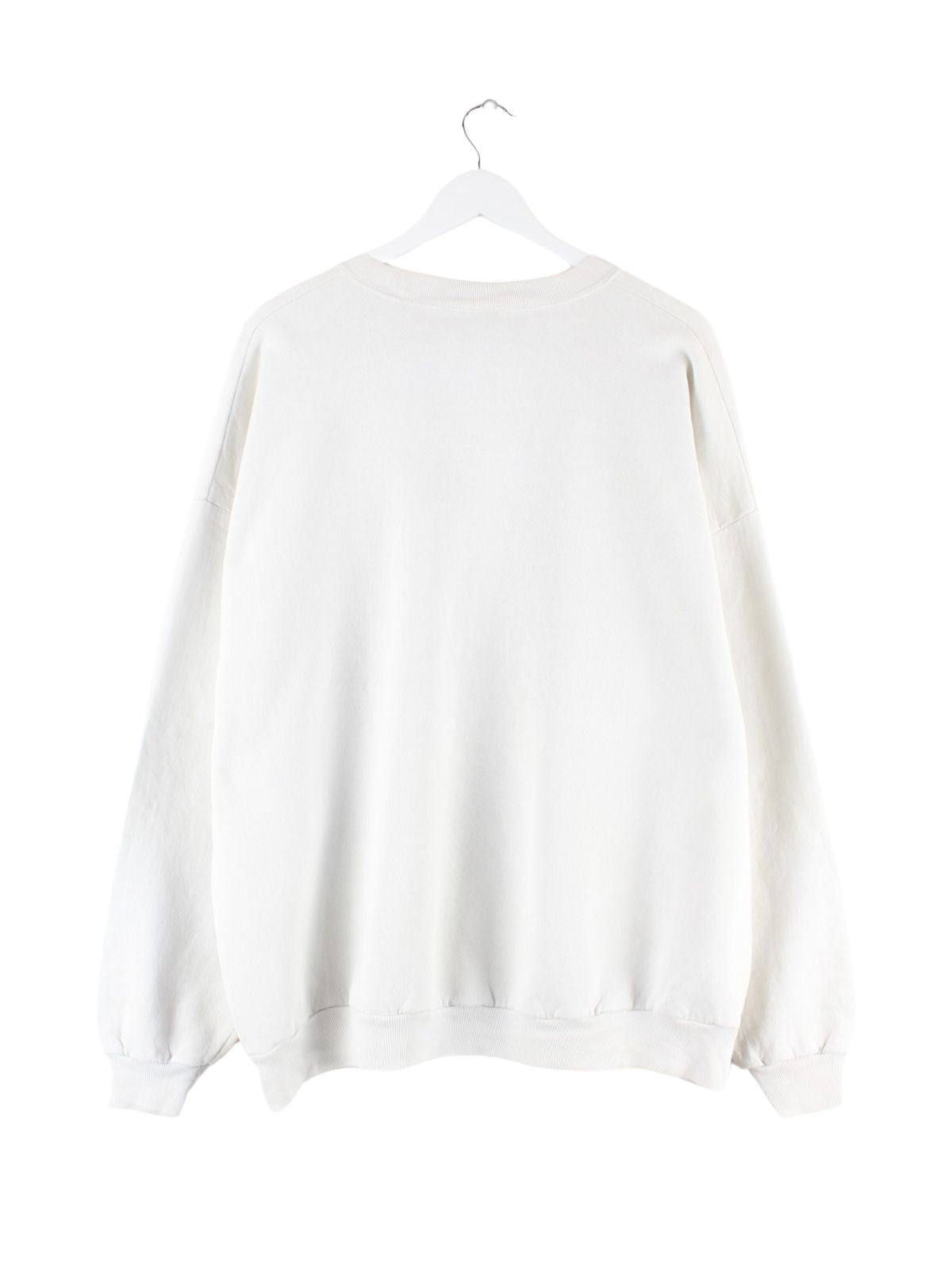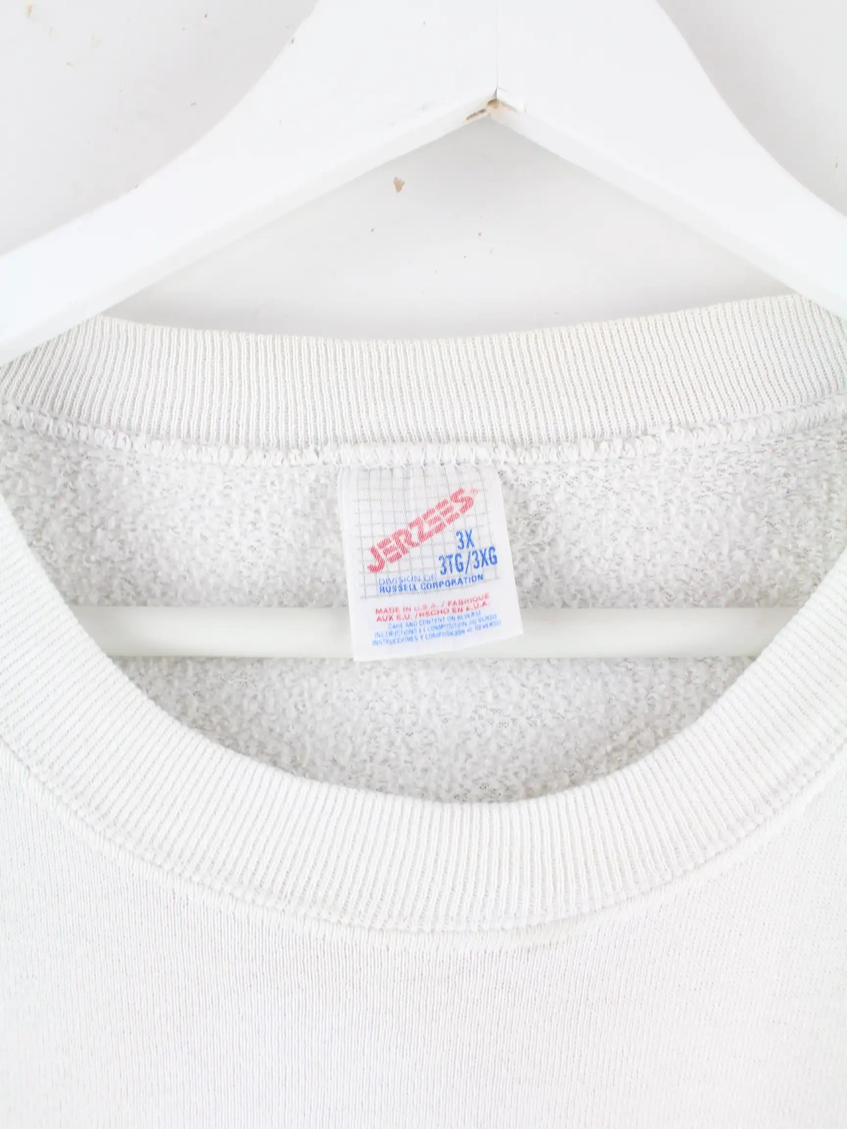 Weißer Sweater der Marke Jerzees in Größe 3XL. Er ist aus einer Baumwollmischung angefertigt und in gutem Zustand in Stock. Mit schickem Racing Print.