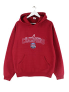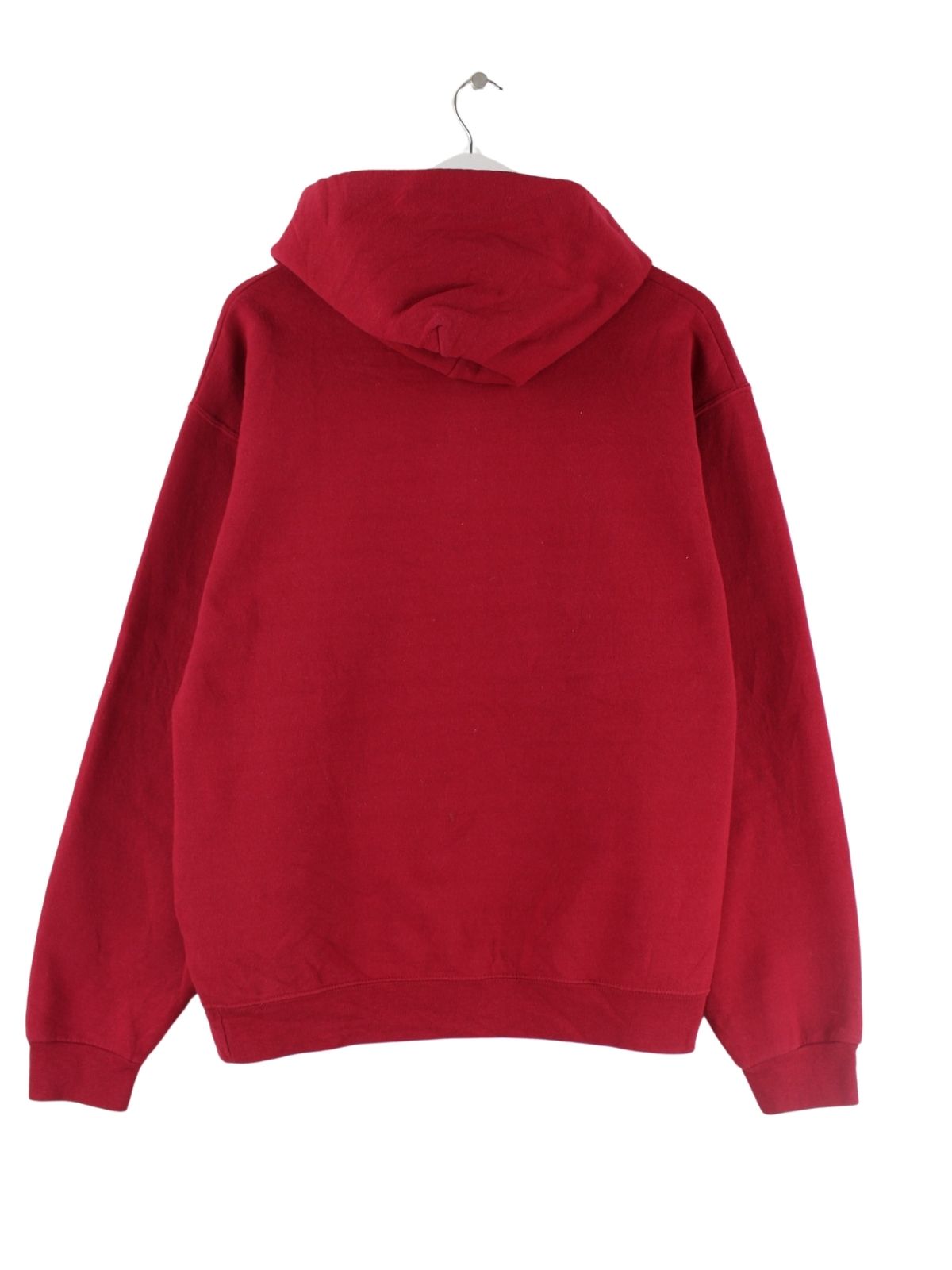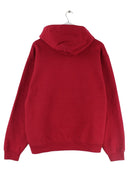 Hoodie aus dem Hause Jerzees mit Stickereien in Größe L. Er ist aus einer Baumwollmischung produziert und in Rot auf Lager.