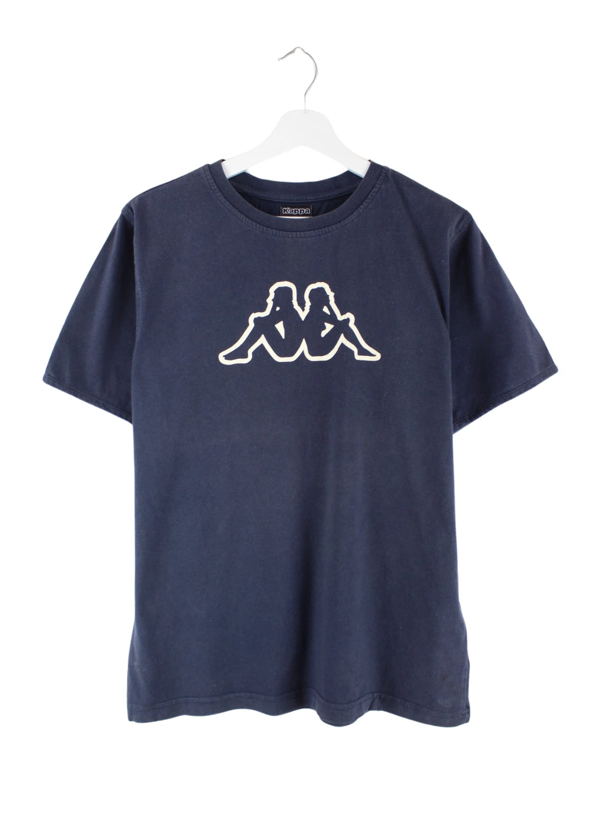 Blaues T-Shirt von Kappa in Größe M. Es ist aus einer Baumwollmischung gefertigt und in gutem Zustand zu haben. Mit seltenem 00s Print.