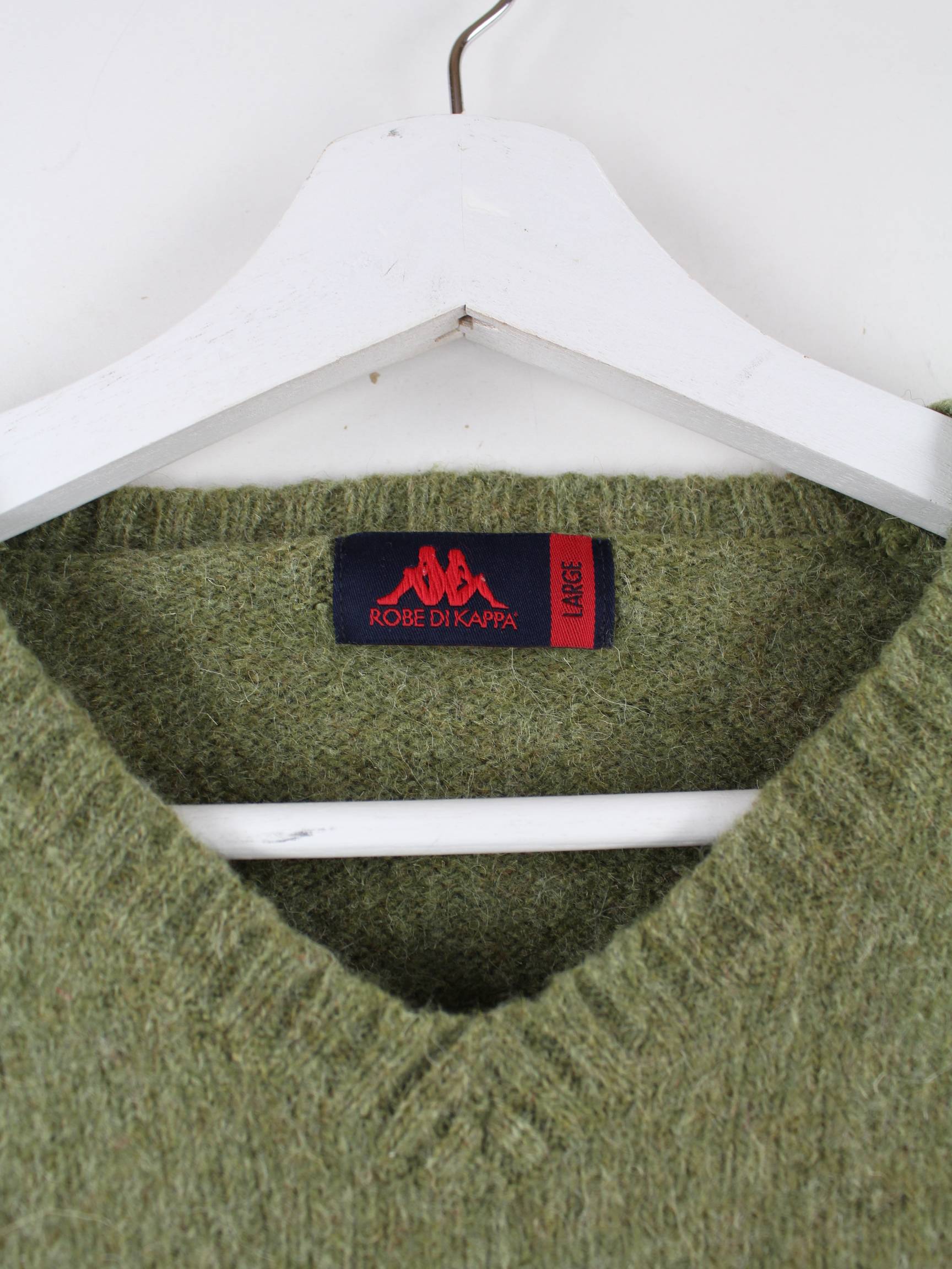 Grüner Pullover der Brand Kappa aus den 90'ern in Größe S. Er ist aus Baumwolle und in sehr gutem Zustand auf Lager.