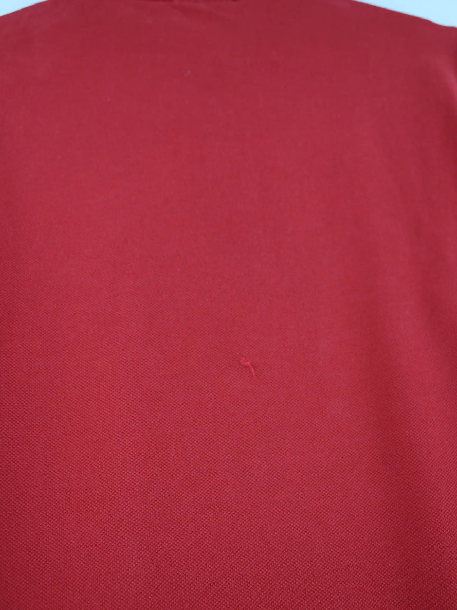 Rotes Poloshirt von Lacoste in Größe S. Es ist aus Baumwolle angefertigt. Den Zustand würden wir als 'In Ordnung' bezeichnen (vergl. Bilder).