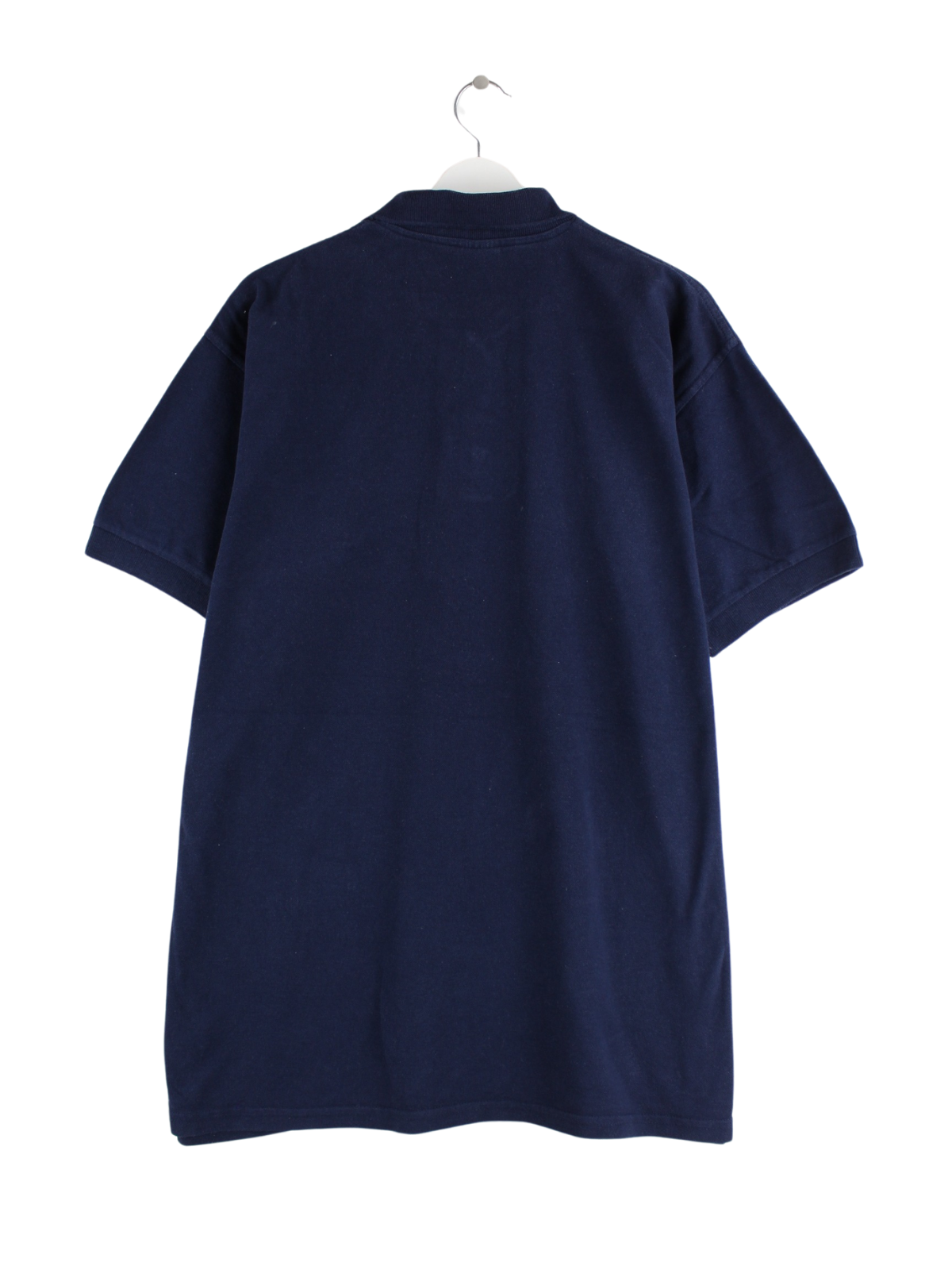 Blaues Poloshirt vom Label Lacoste aus den 90'ern in Größe XL. Es ist aus Baumwolle hergestellt und in gutem Zustand im Angebot.