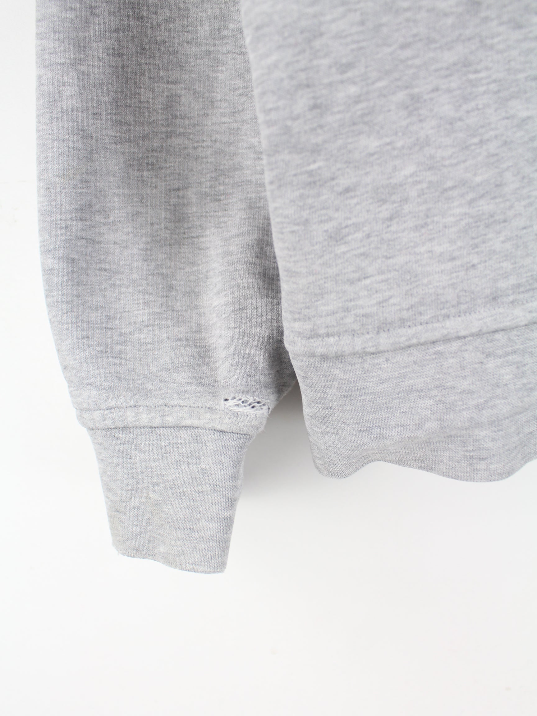Grauer Hoodie mit langem Reißverschluß vom Label Lacoste in Größe S. Er ist aus einer Baumwollmischung gemacht und in gutem Zustand bei uns zu bekommen.