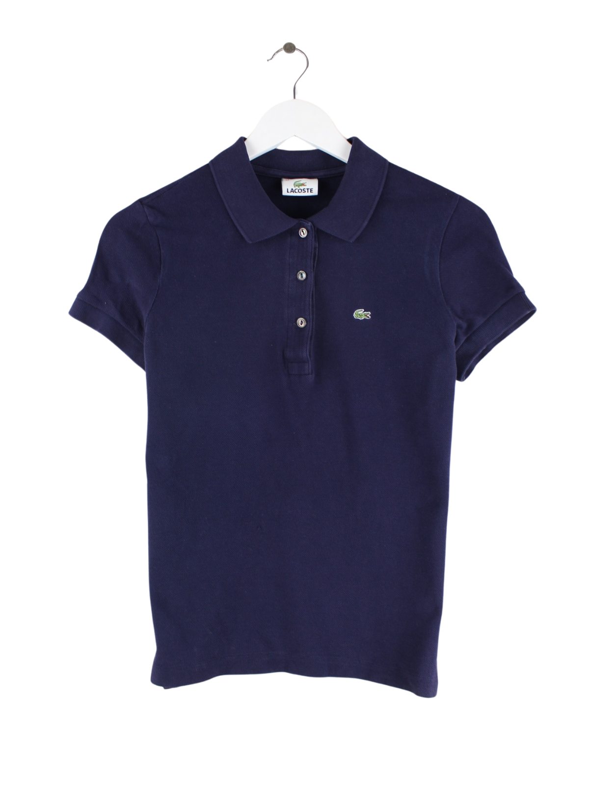 Blaues Poloshirt des Labels Lacoste in Größe XS. Es ist aus Baumwolle gemacht und in gutem Zustand zu bekommen.