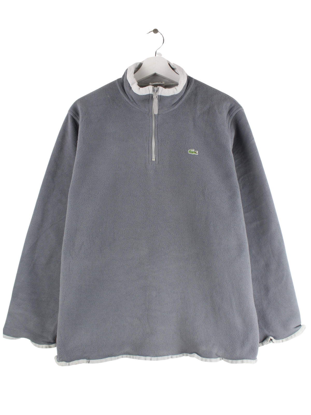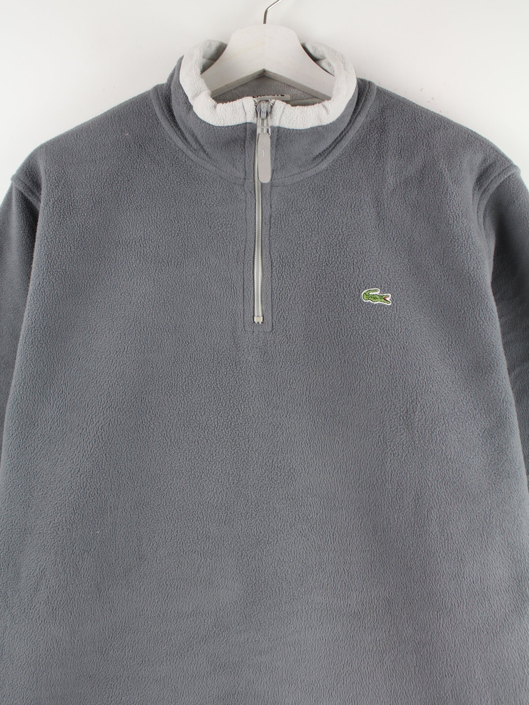 Sweater der Marke Lacoste mit half Zip in Größe M. Er ist aus kuscheligem Fleece hergestellt und in Grau in Stock.