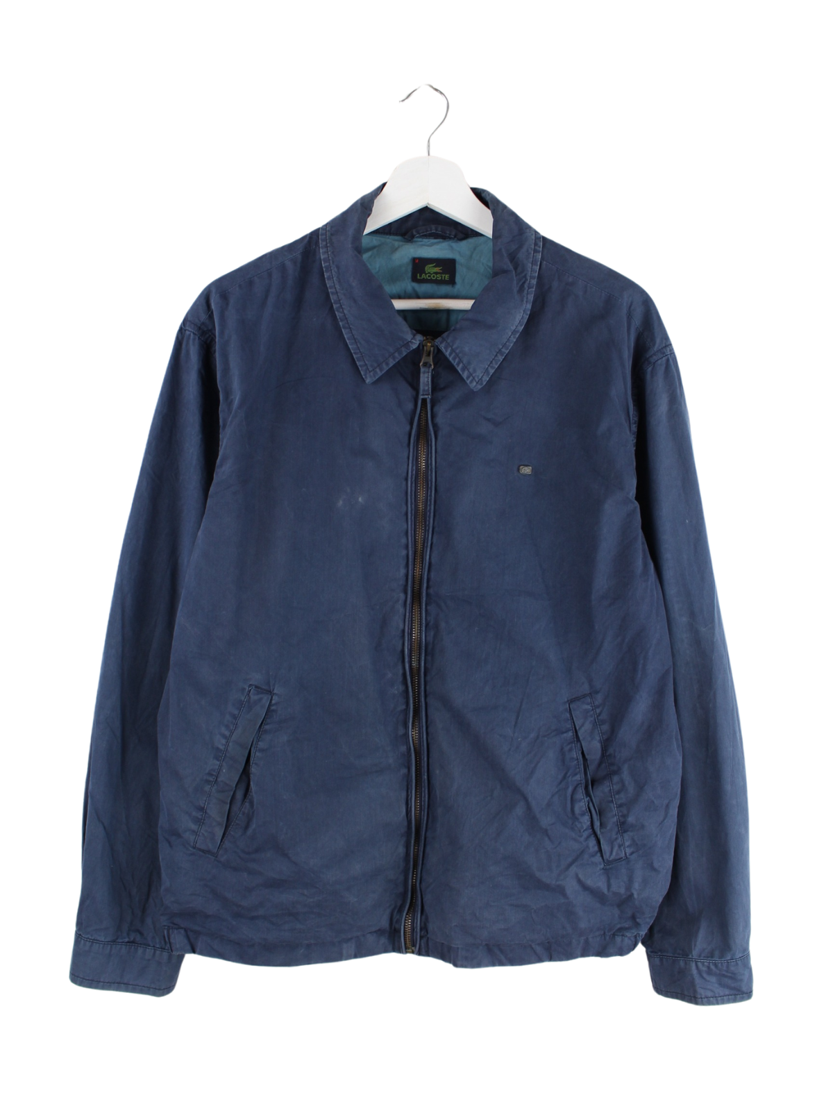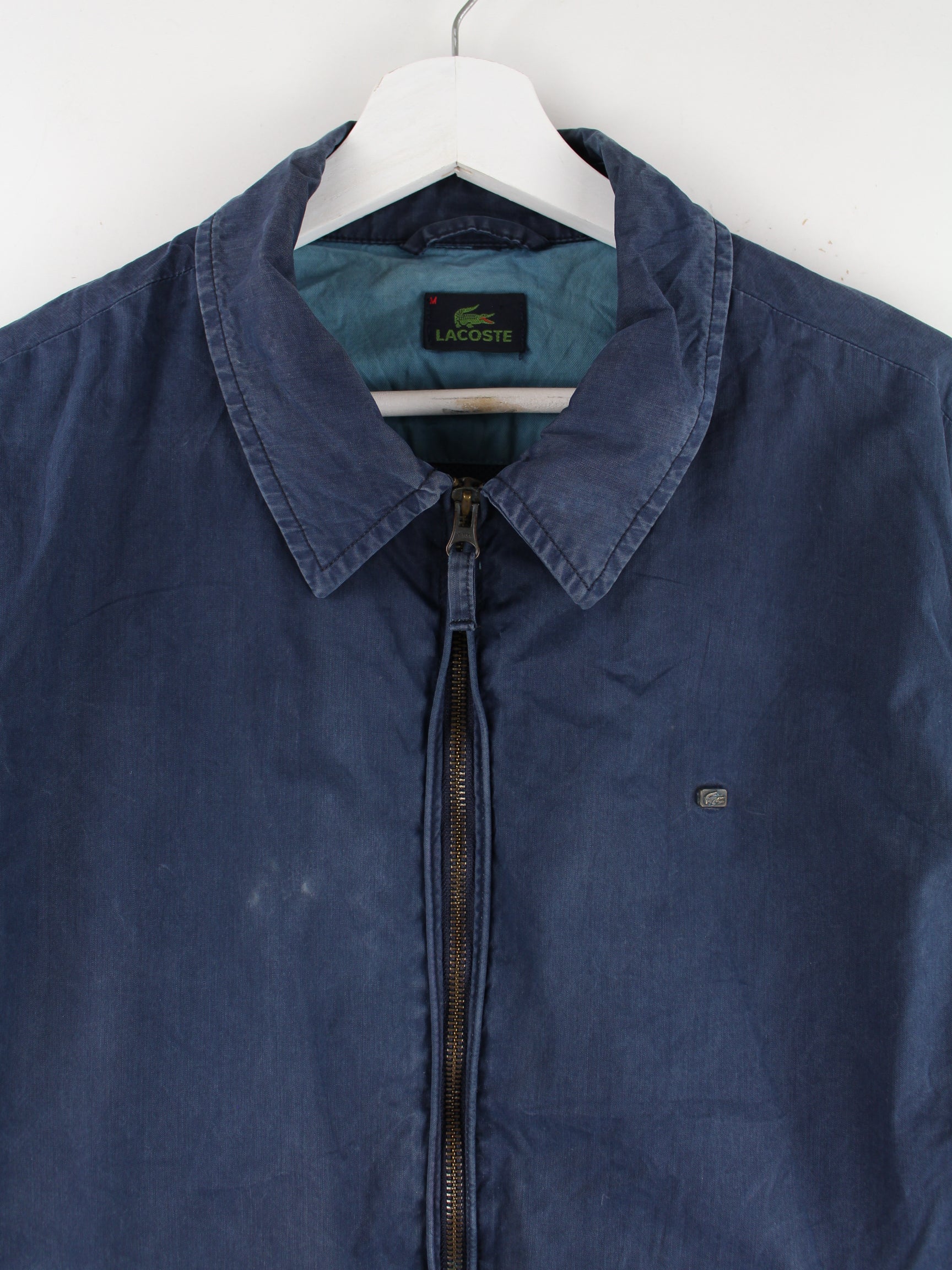 Leichte Jacke der Marke Lacoste in Größe M. Sie ist aus einer Baumwollmischung gefertigt und in Blau im Bestand.