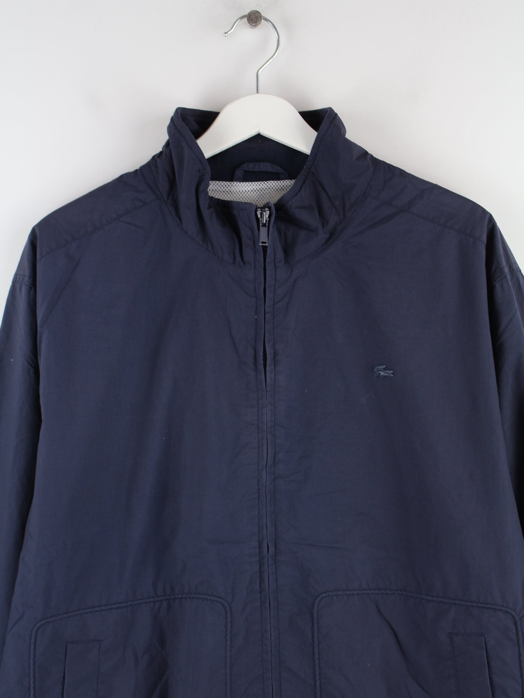 Leichte Jacke der Marke Lacoste in Größe XL. Sie ist aus Synthetik gefertigt und in Blau vorrätig.