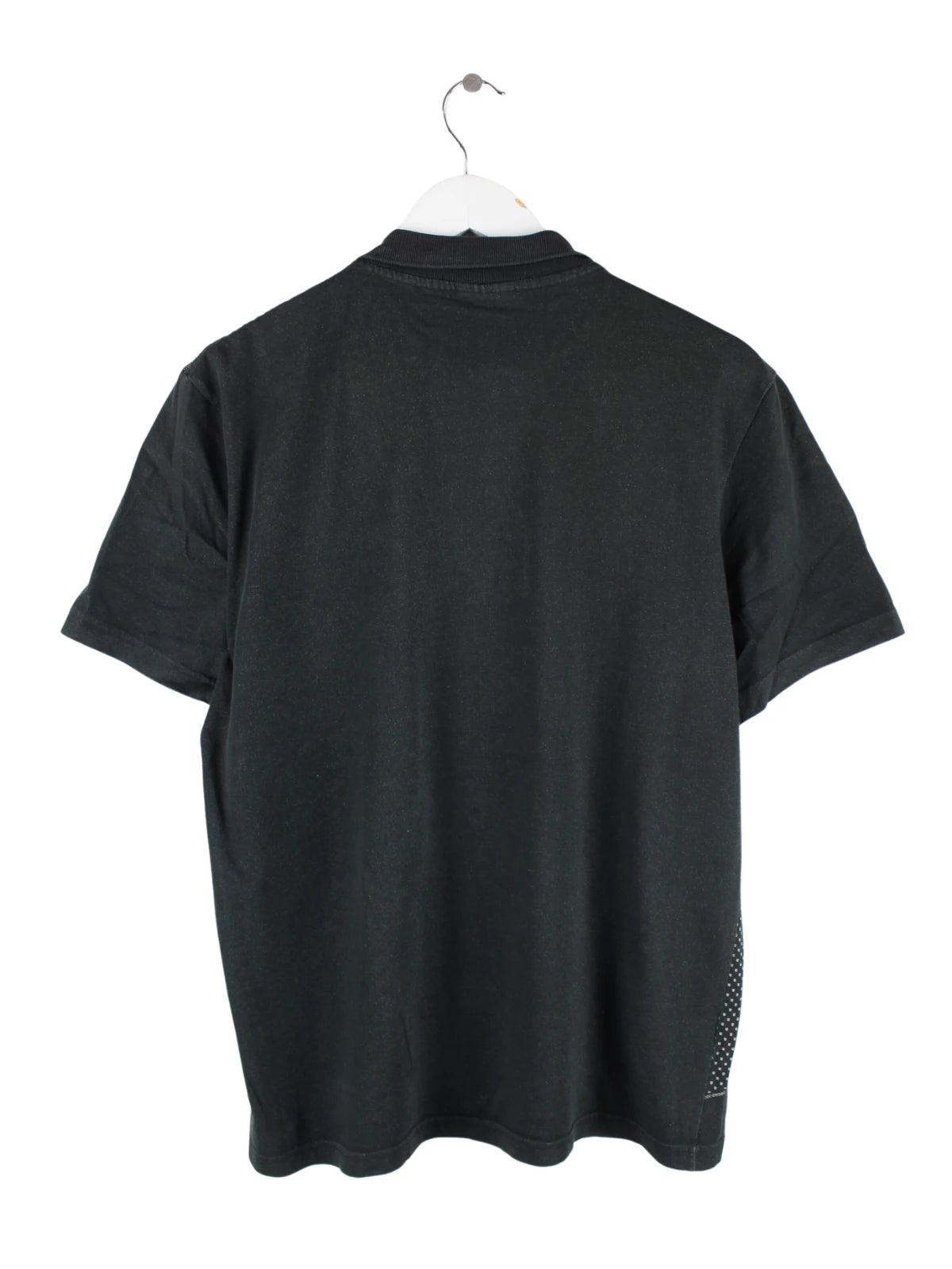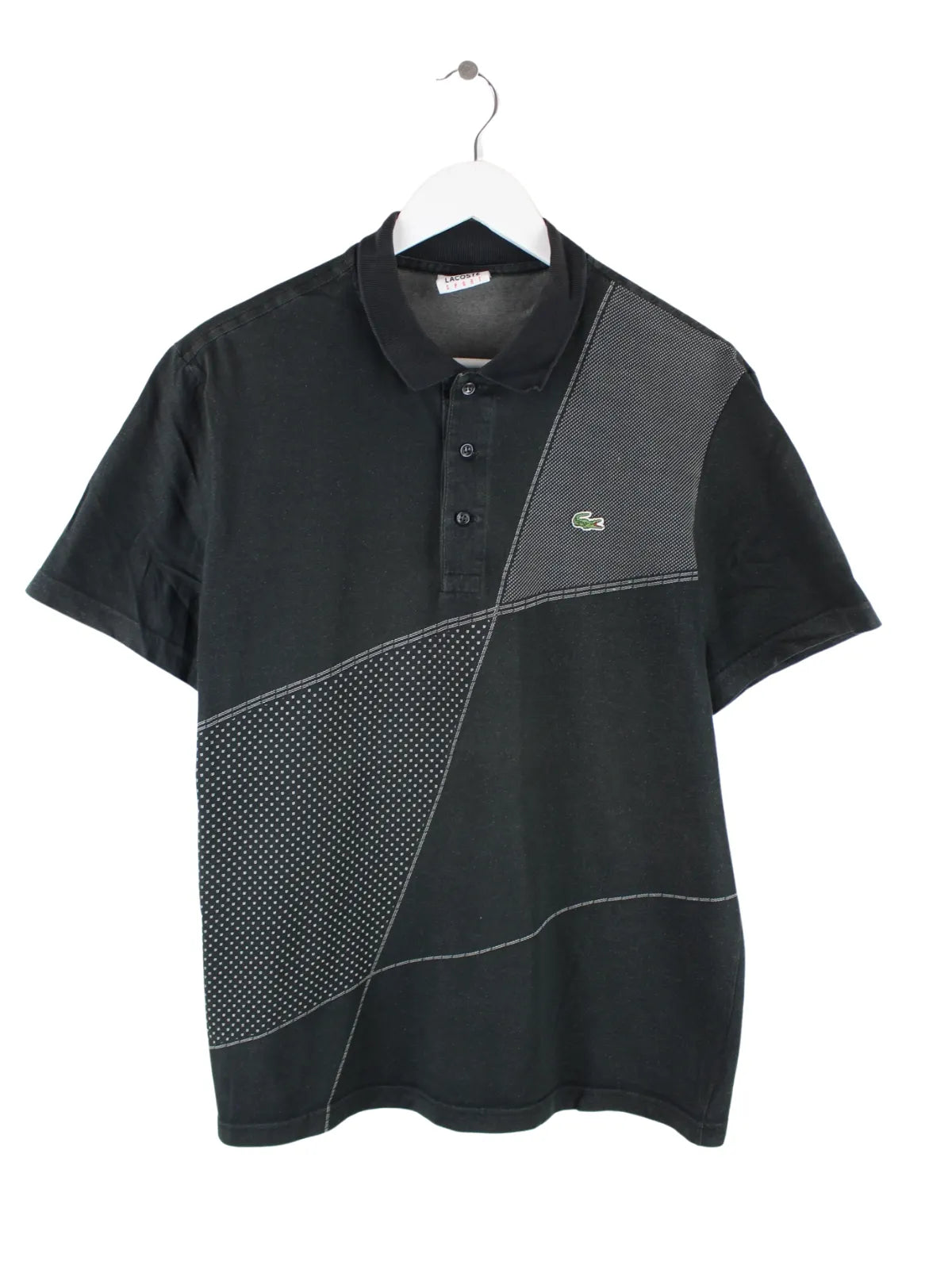 Schwarzes Poloshirt von Lacoste in Größe M. Es ist aus Baumwolle hergestellt und in sehr gutem Zustand auf Lager. Mit schönem Pattern Print.