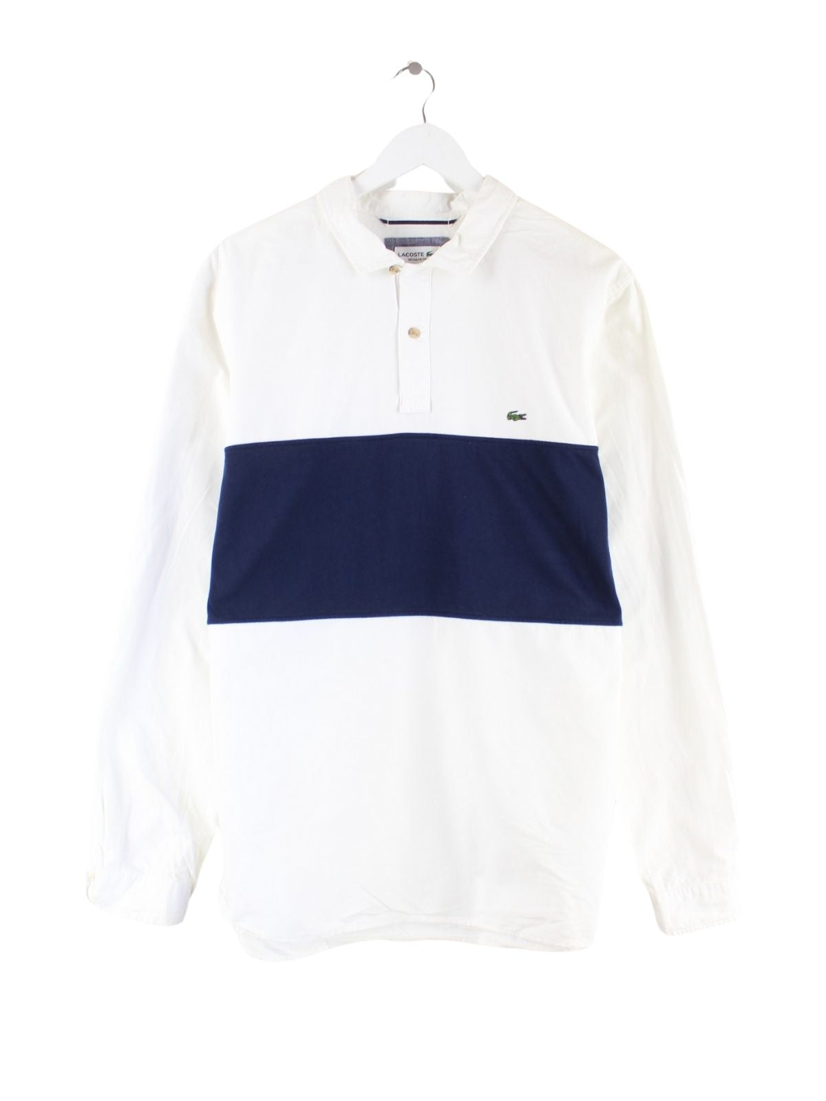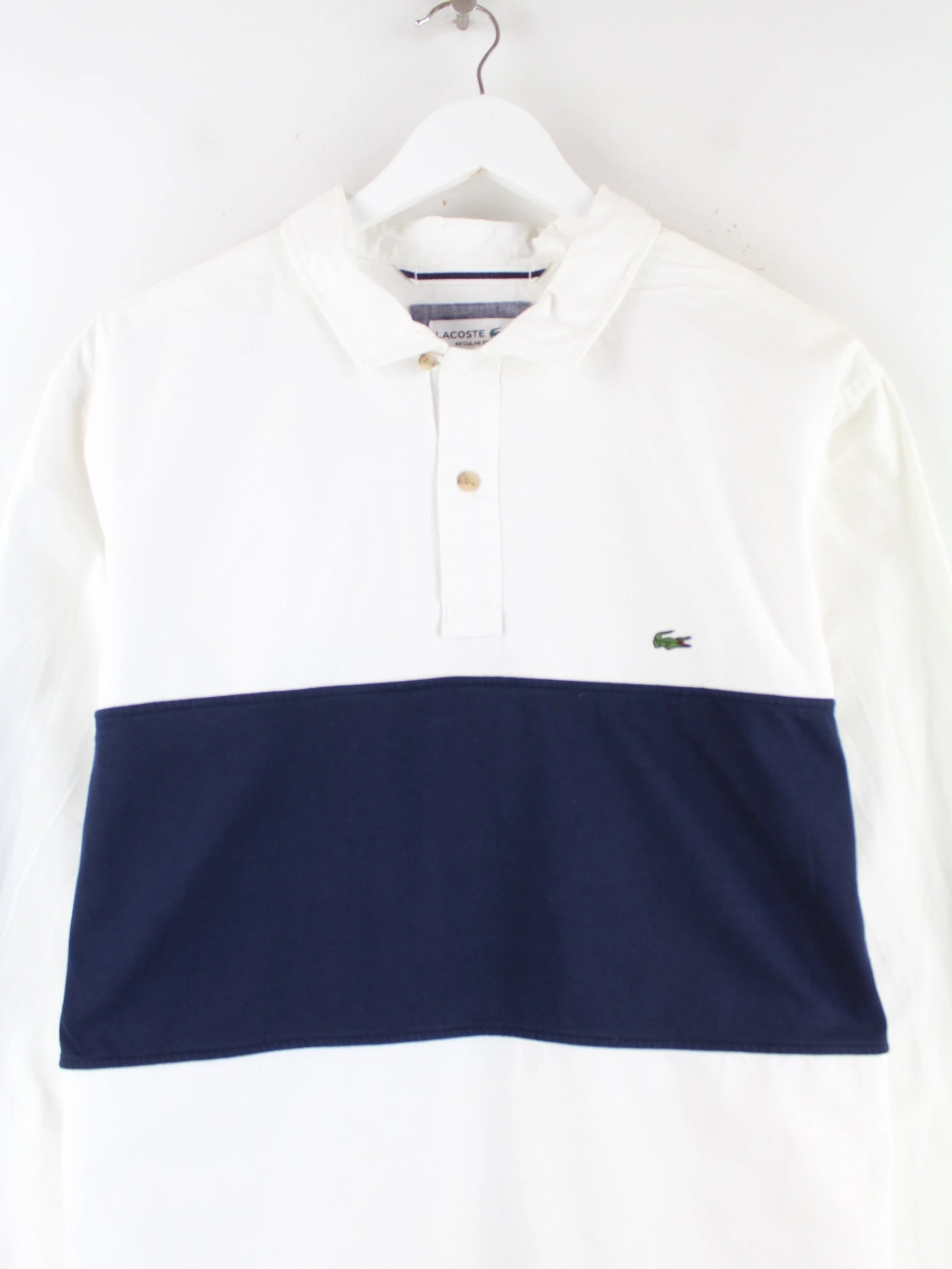 Weißes Poloshirt von Lacoste in Größe L. Es ist aus Baumwolle gefertigt und in sehr gutem Zustand lieferbar.