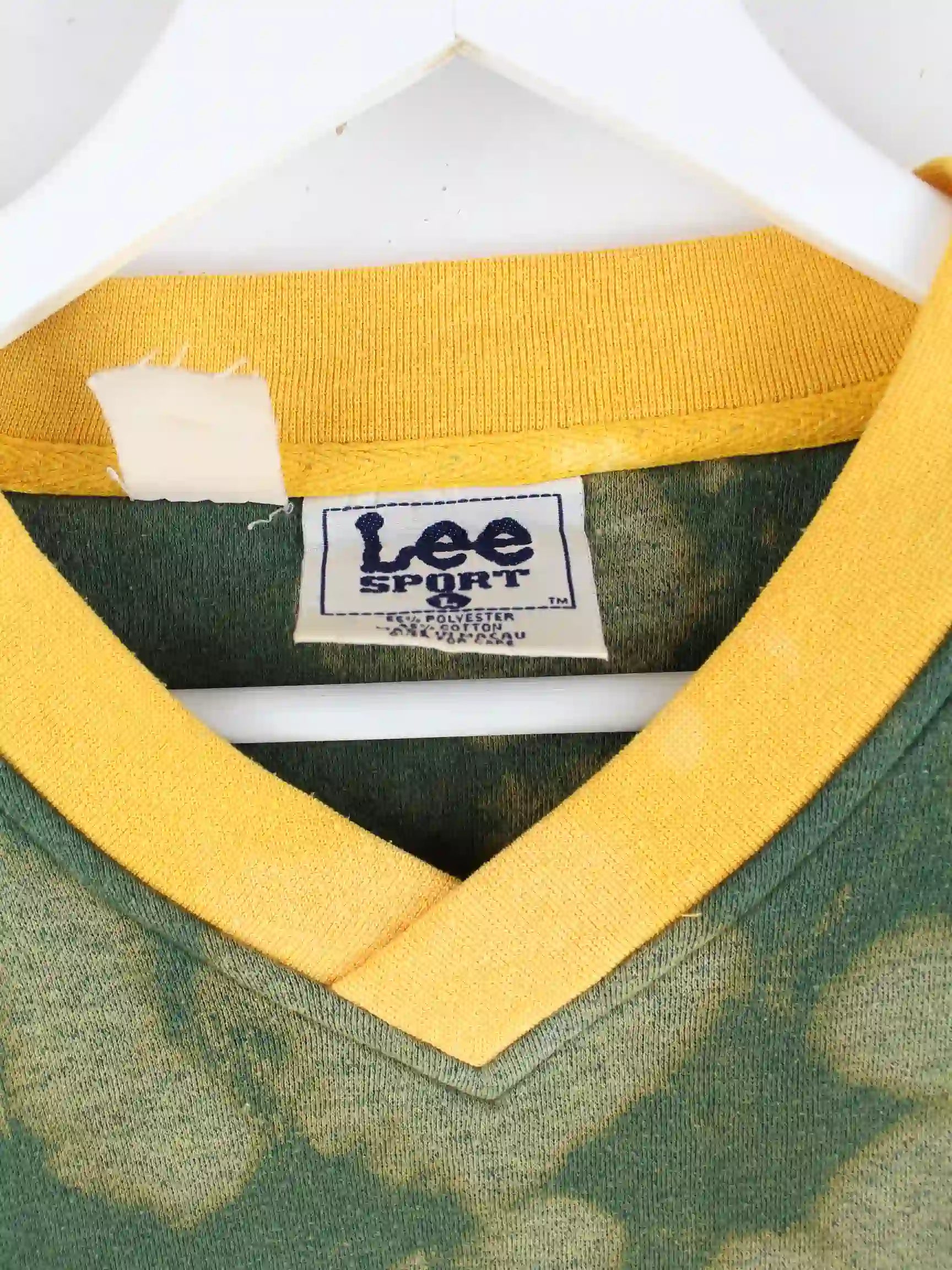 Sweater der Marke Lee in Größe L aus den 90'ern. Er ist aus einer Baumwollmischung gemacht und in Grün in Stock.