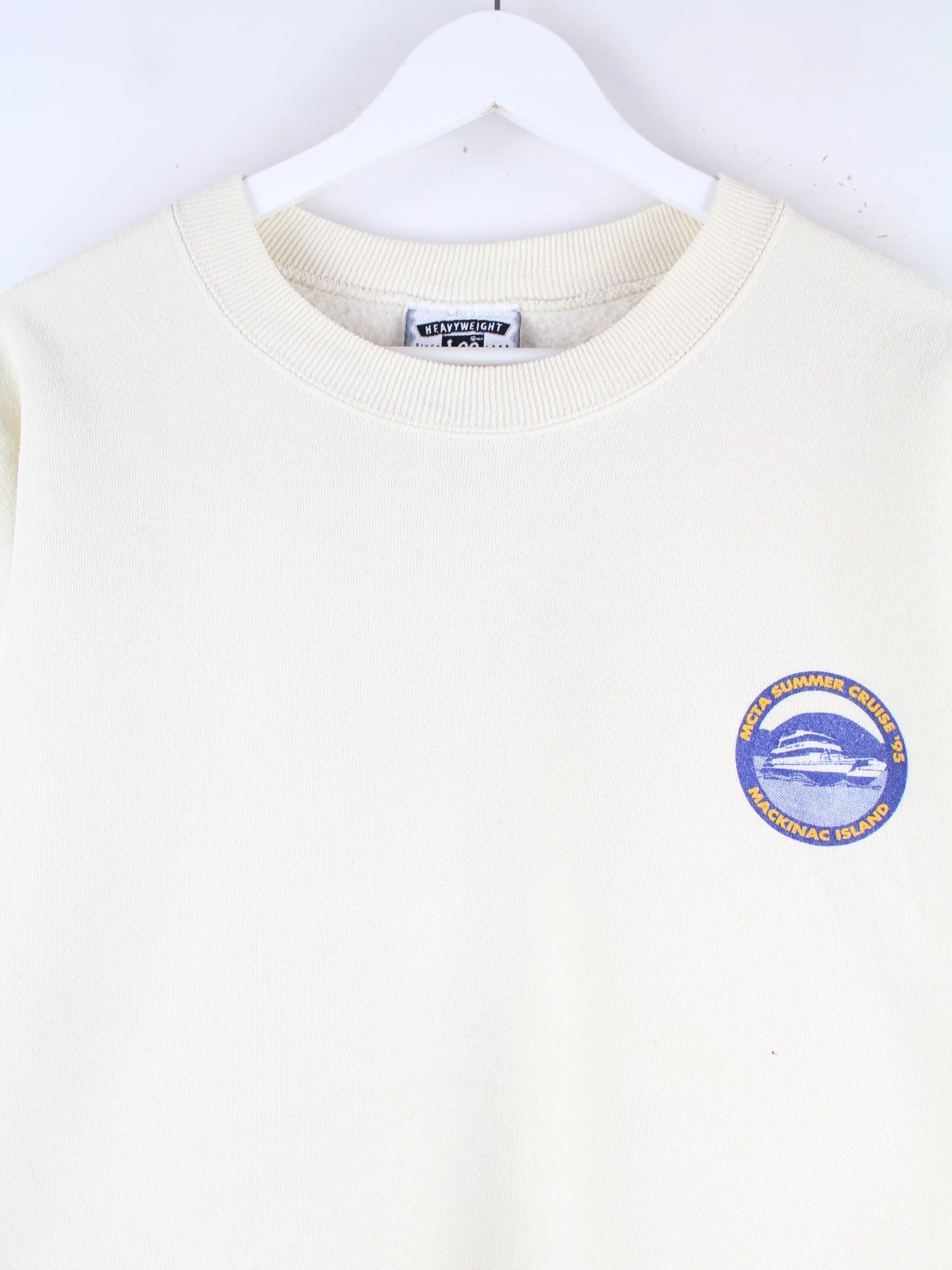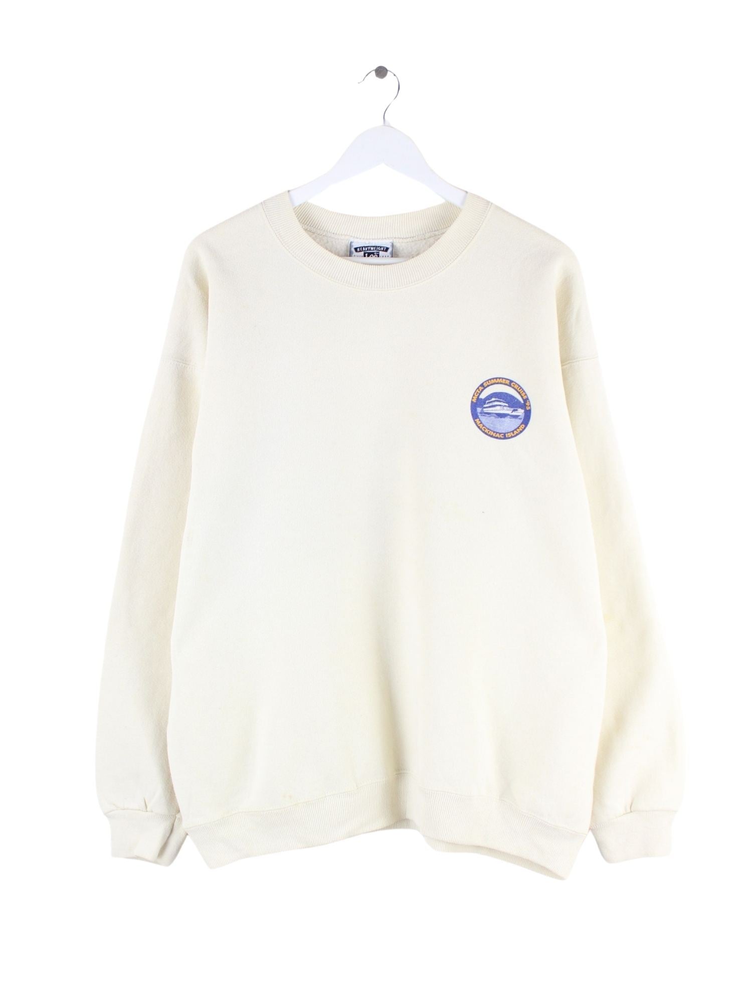 Beigefarbener Sweater der Brand Lee aus den 90'ern in Größe XL. Er ist aus einer Baumwollmischung gemacht und in gutem Zustand bei uns vorrätig. Mit schickem Cruise Print.