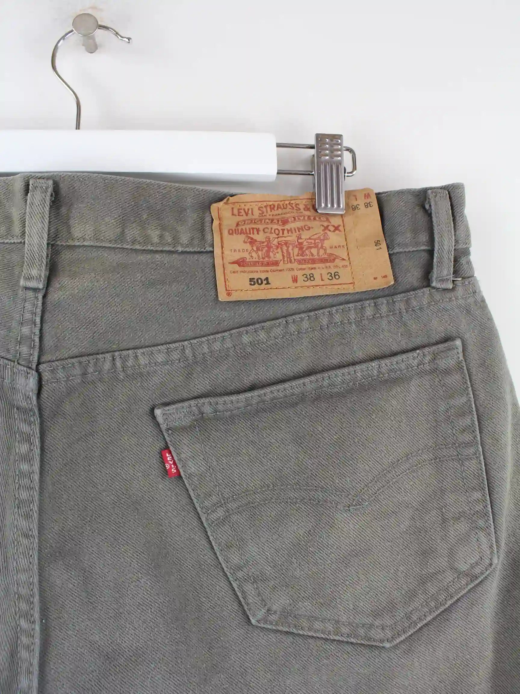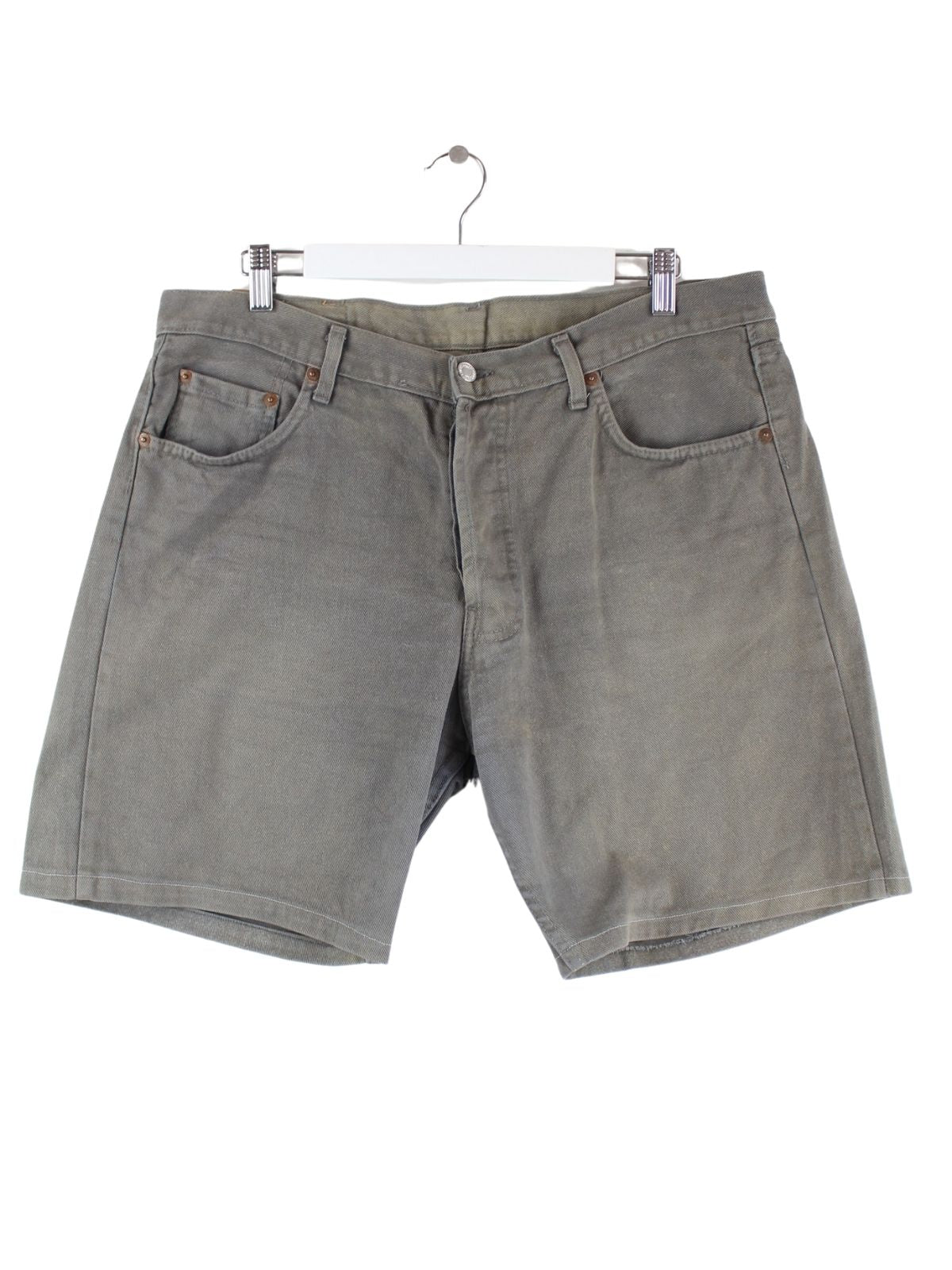 Graue Shorts von Levi's in Größe W38. Sie sind aus Baumwolle angefertigt. Den Zustand würden wir als 'In Ordnung' bezeichnen (vergl. Bilder).