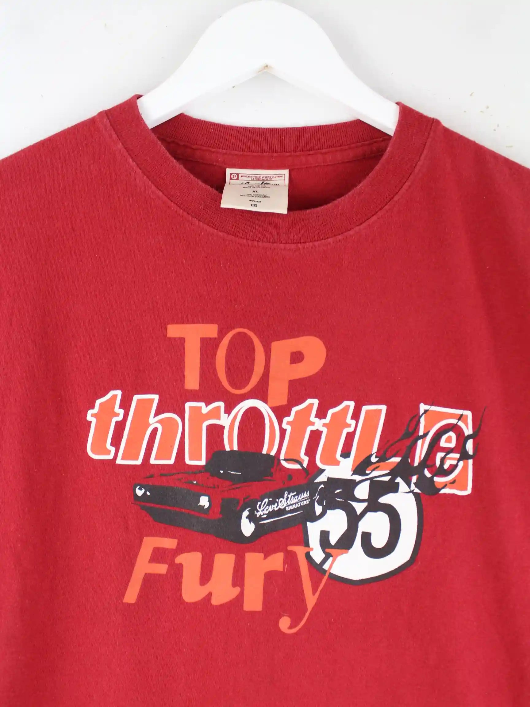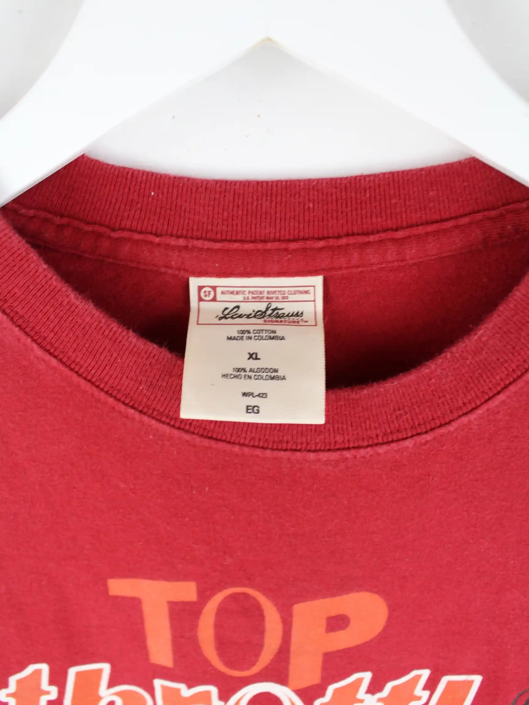 T-Shirt des Labels Levi's in Größe XL. Es ist aus Baumwolle produziert und in Rot bei uns zu bekommen. Mit chiquem Signature Print.