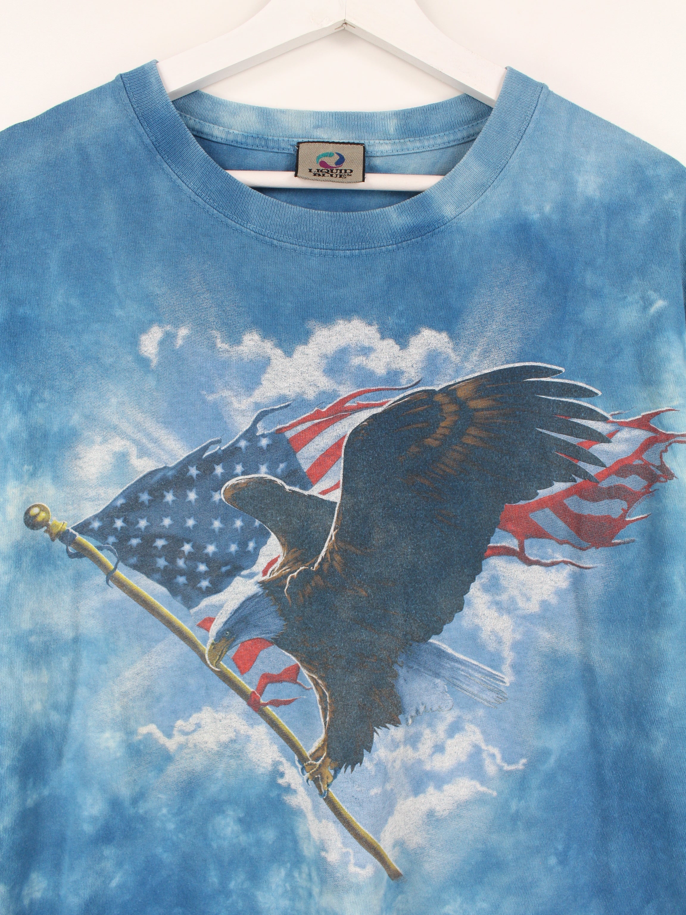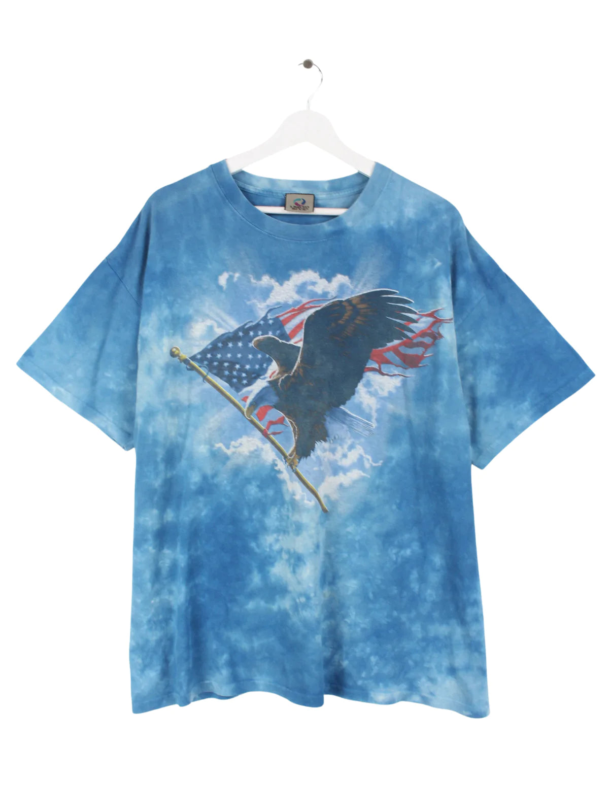 Liquid Blue Tye Dye T-Shirt mit großem Adler Print.