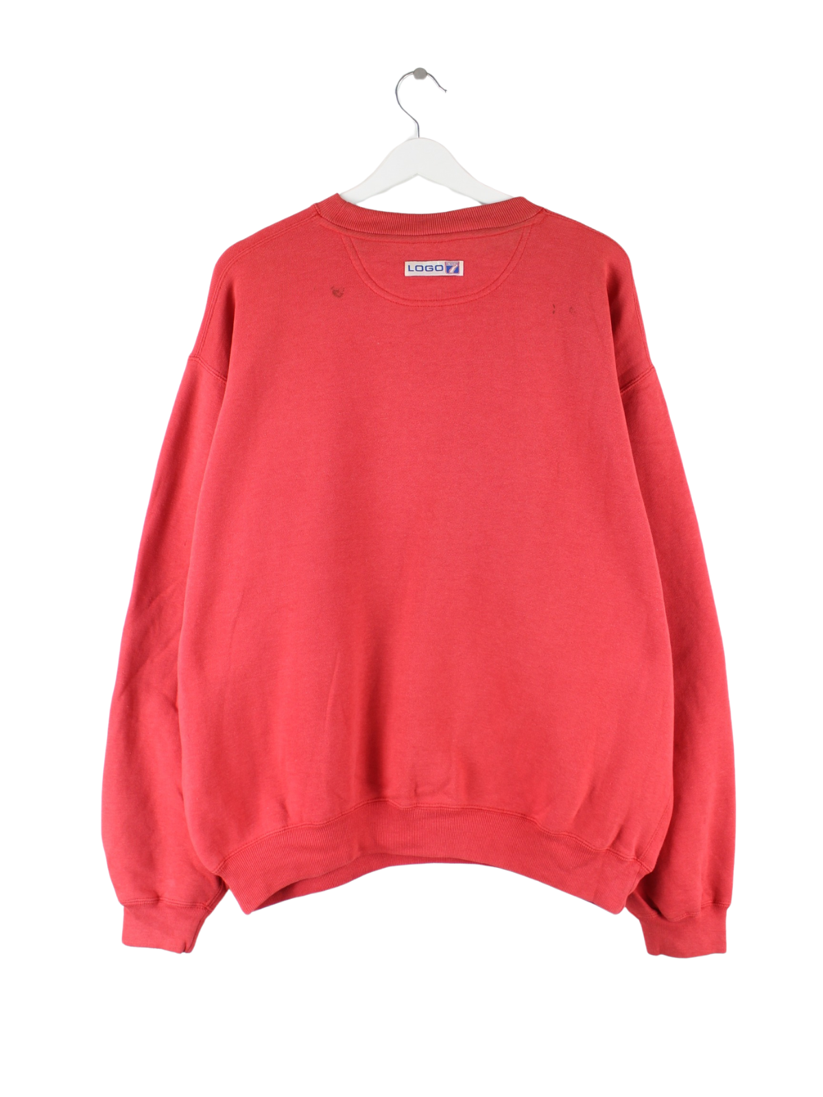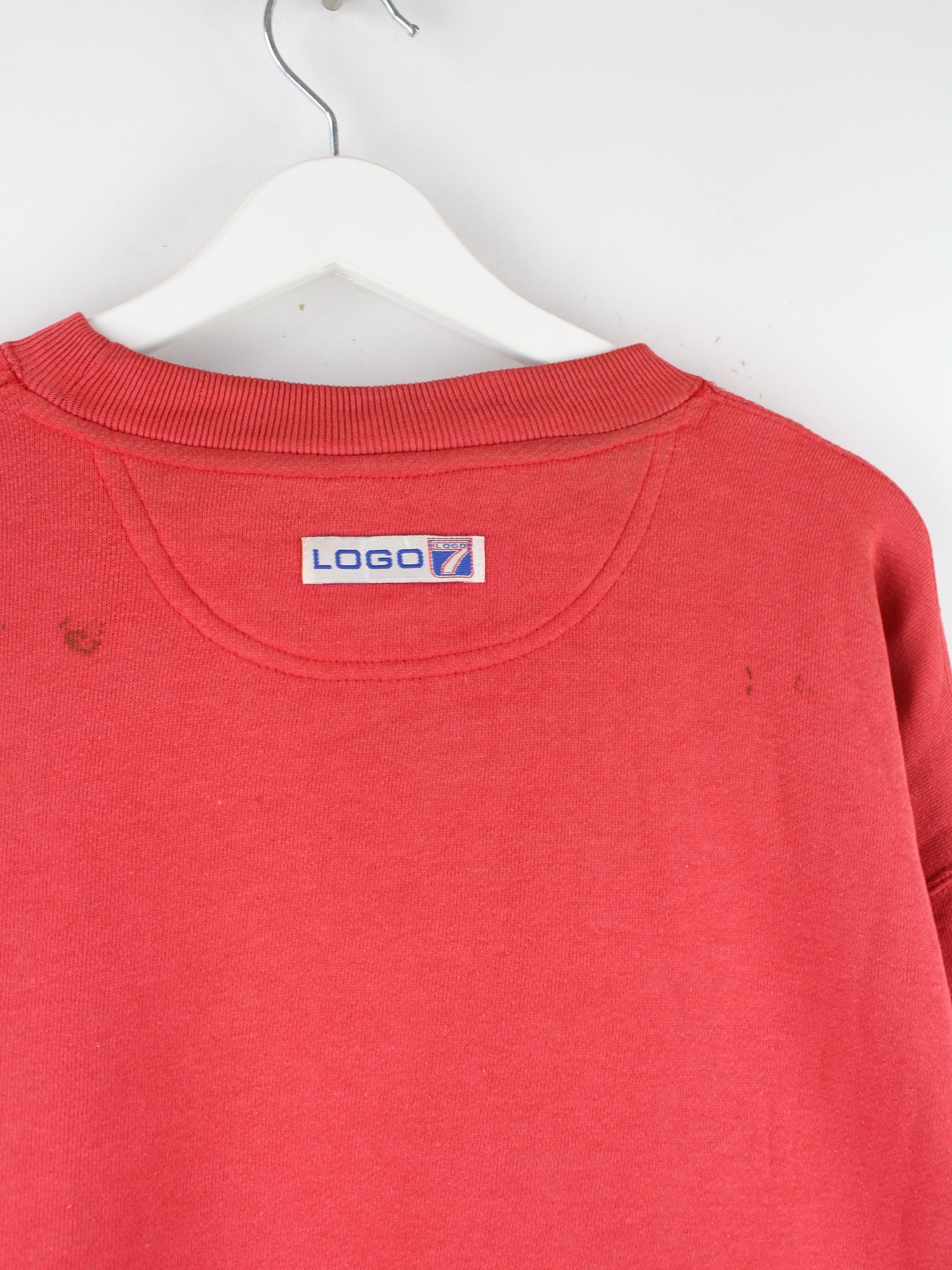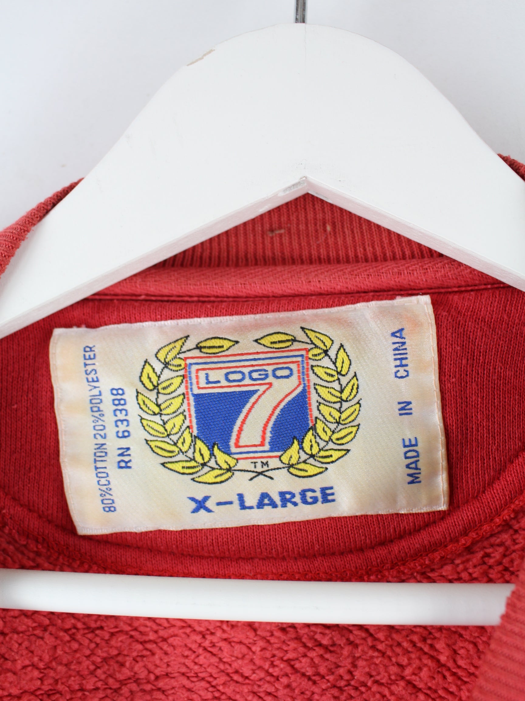 Sweater vom Brand Logo 7 mit gesticktem Logo in Größe XL aus den 80'ern. Er ist aus einer Baumwollmischung gemacht und in Rot im Bestand.